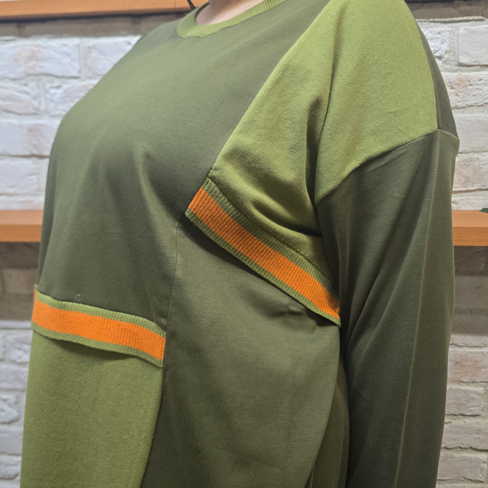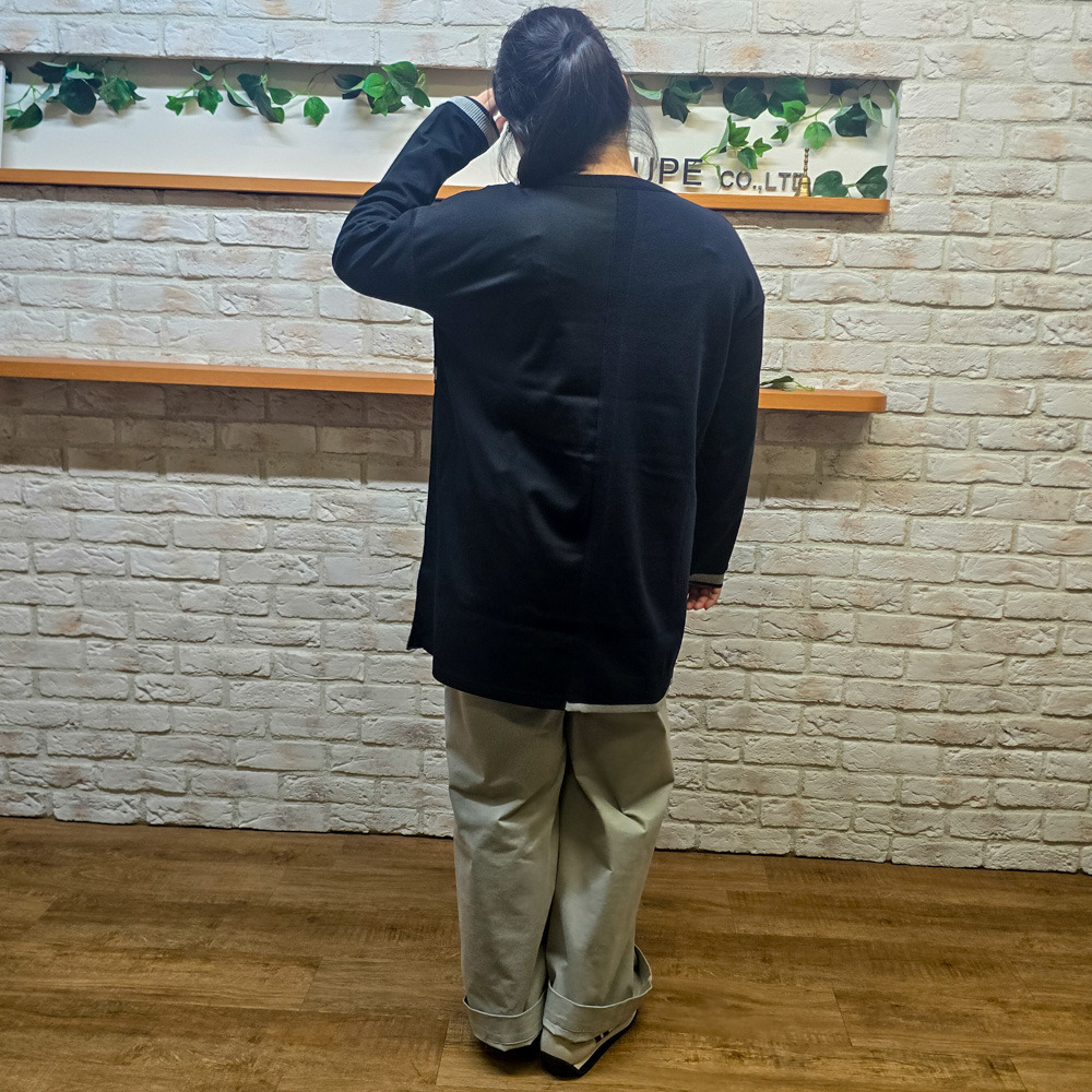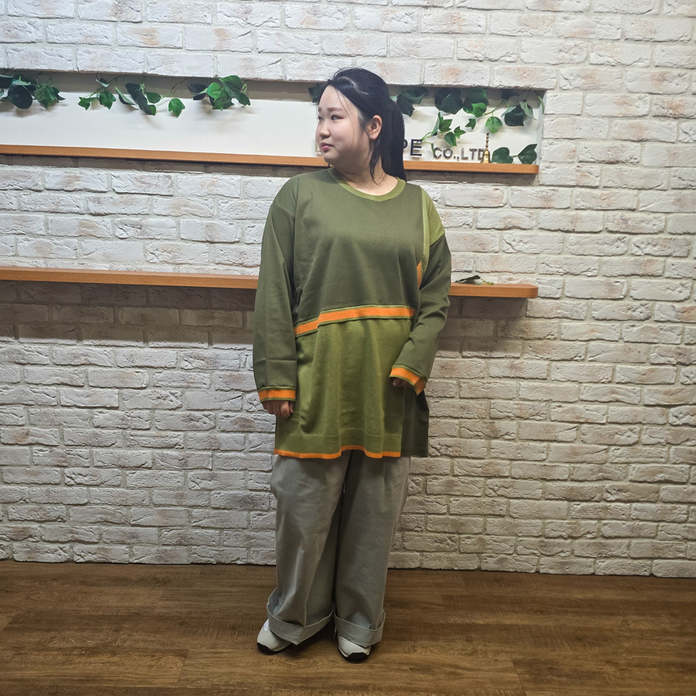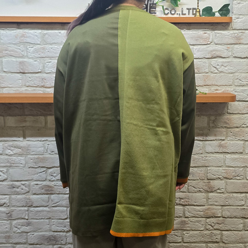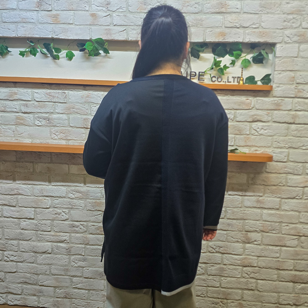 [型番:7254802]秋の始まりにピッタリなニットのチュニックを作りました。ニット地とジャージ生地をパッチワークした特別なテクニックを使って仕上げた遊び心のあるデザインです。カジュアル過ぎない、大人の女性でも上品見えする配色にこだわりました。ニットの編地で入れたラインの配色がシンプルモダンなデザインポイントです。合わせるボトムスはストレートやスリムのデニムやテーパードパンツ、またトレンド色の強いバレルカットのデニムでも合わせやすい丈感になっているので、コーディネイトが楽しめるチュニックです。ほど良い厚み感のある綿のニット×ジャージーなので寒い冬はインナーにタートルをレイアードしてコートインに、役立つ1枚です。