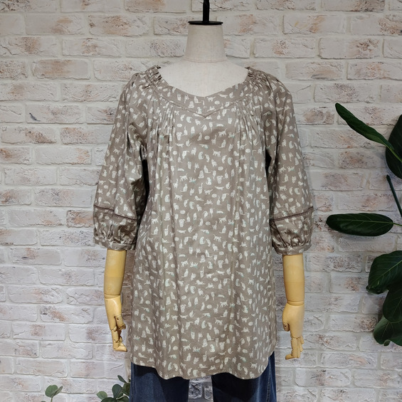 [型番:7253715] **「様々な猫の仕草を楽しむ、可愛いチュニック」** 可愛らしい猫柄が散りばめられたチュニックです。 様々な仕草をする猫たちが、見る人に癒しを与えるデザインとなっており、猫好きの方にはたまらない一枚です。 袖にはレースが施されており、女性らしさを引き立てるポイントとなっています。 身頃のピンタックは、シンプルながらもおしゃれを感じさせるディテールです。 ■ デイリーユースに最適なアイテムです! この猫柄チュニックは、カジュアルスタイルからお出かけスタイルまで幅広く活躍します。 デニムやスカートと合わせるだけで、愛らしさとお洒落さが同時に楽しめるアイテムです。 ゆったりとした着心地ながら、可愛らしさを引き立てるデザインに仕上がっています。 肌触りも良く、日常のコーディネートに猫好きのエッセンスをプラスしてみませんか? *洗濯の際は、レース部分に注意して優しく扱うことをお勧めします。