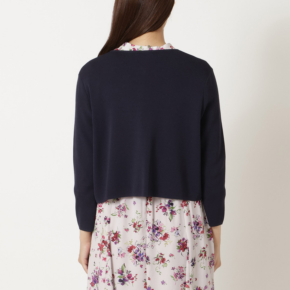 ウエスト位置を高く見せてくれる短めのボレロ丈が、ふんわりと女性らしいシルエットを叶えます。