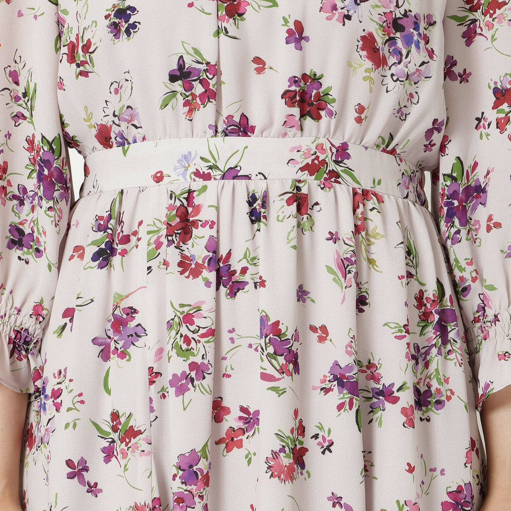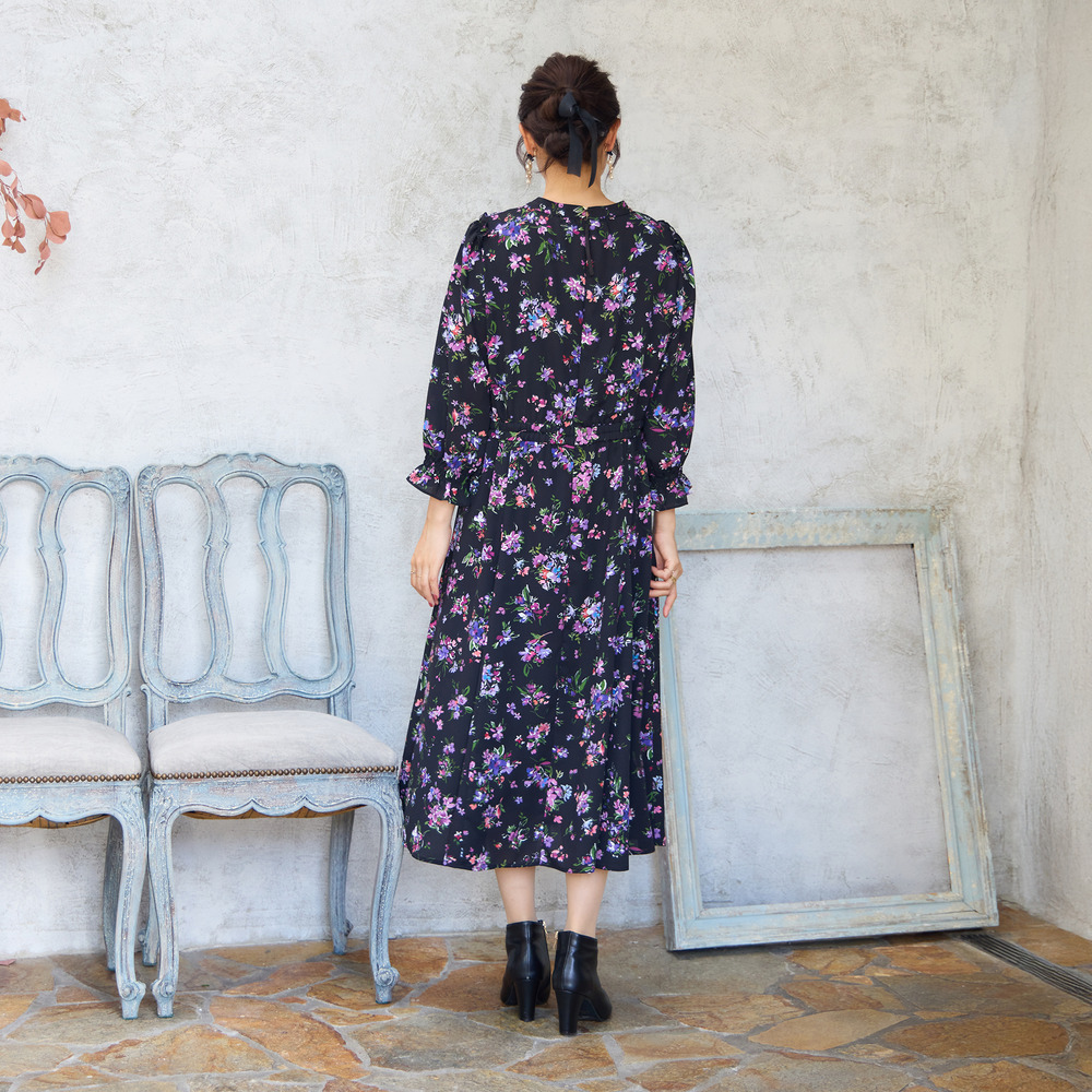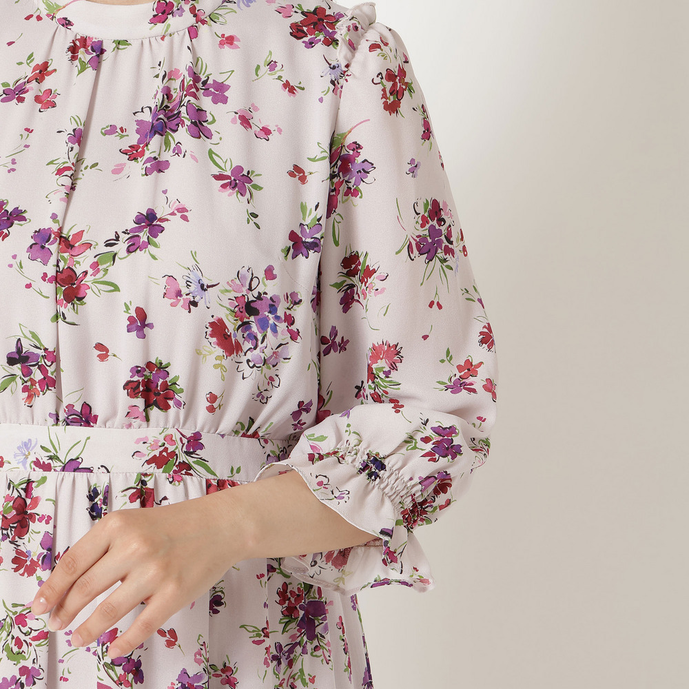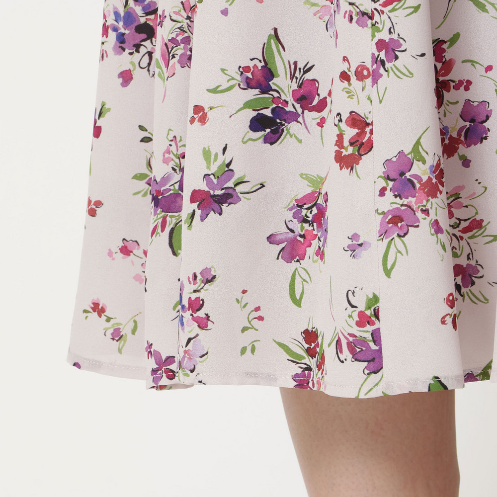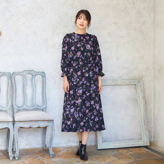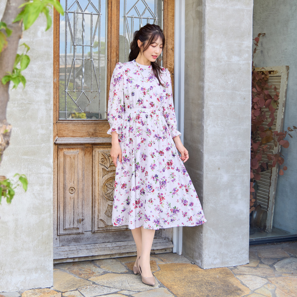 高めのウエスト切替でスタイルアップを叶えつつ、ふんわり広がるスカートラインが上品な一枚です。