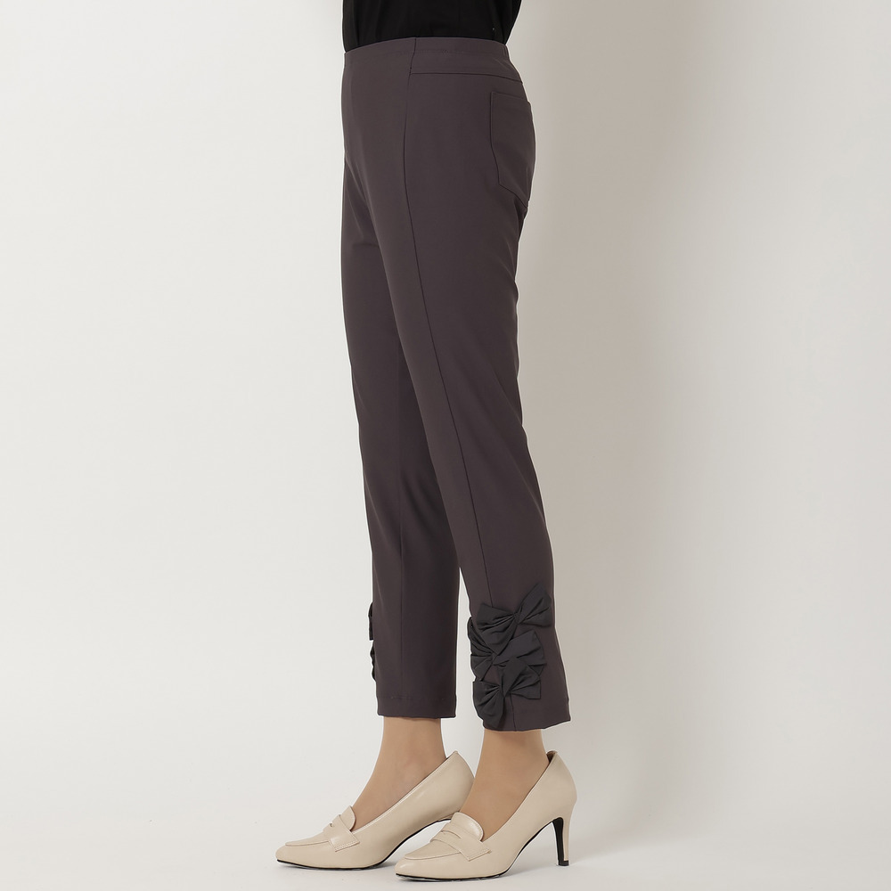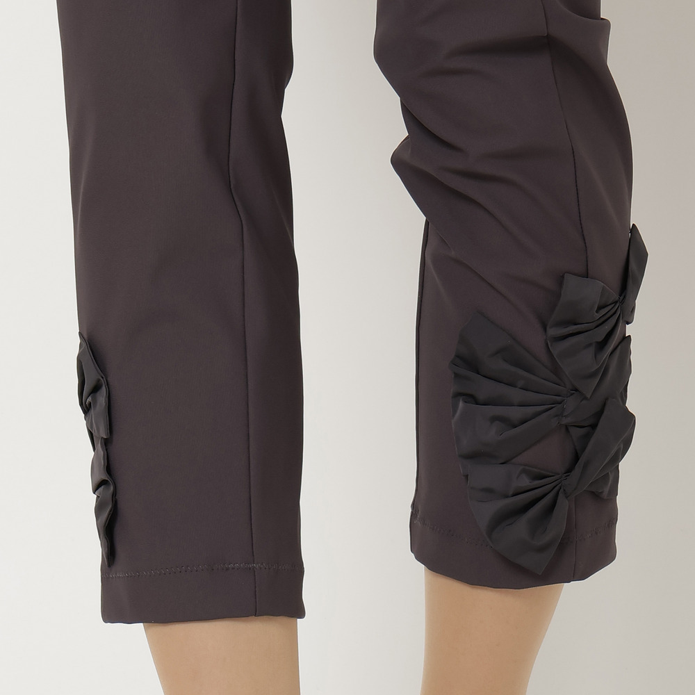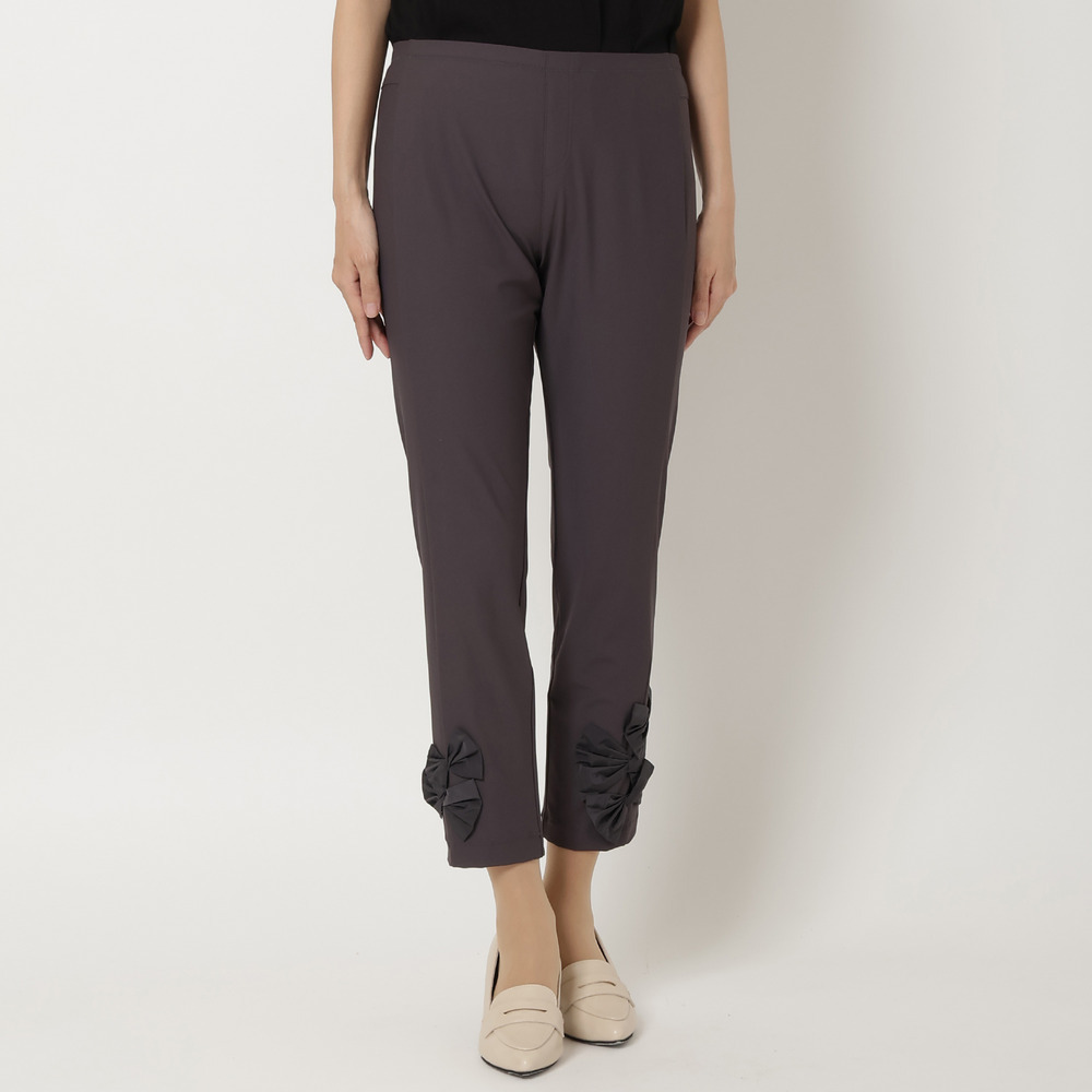 裾のリボンをアシンメトリーにつけ、上品におとな可愛く仕上げた人気のレギンスパンツ。