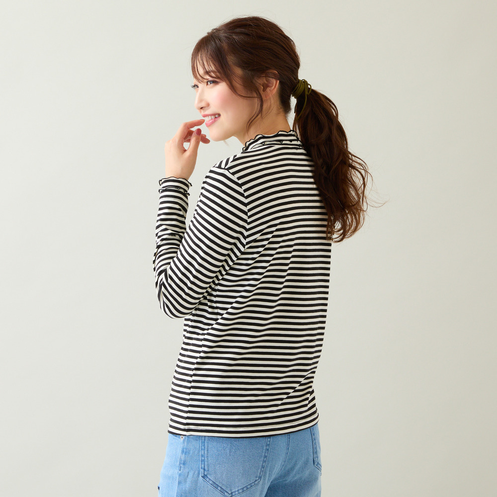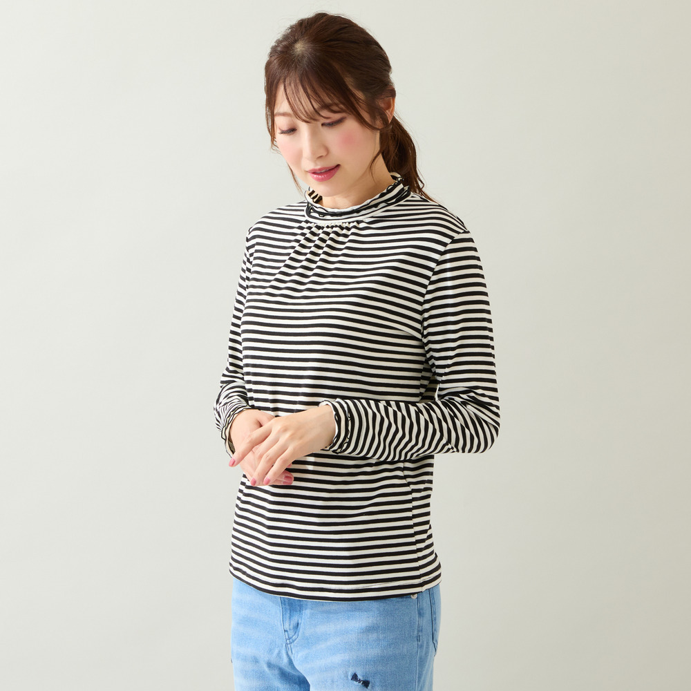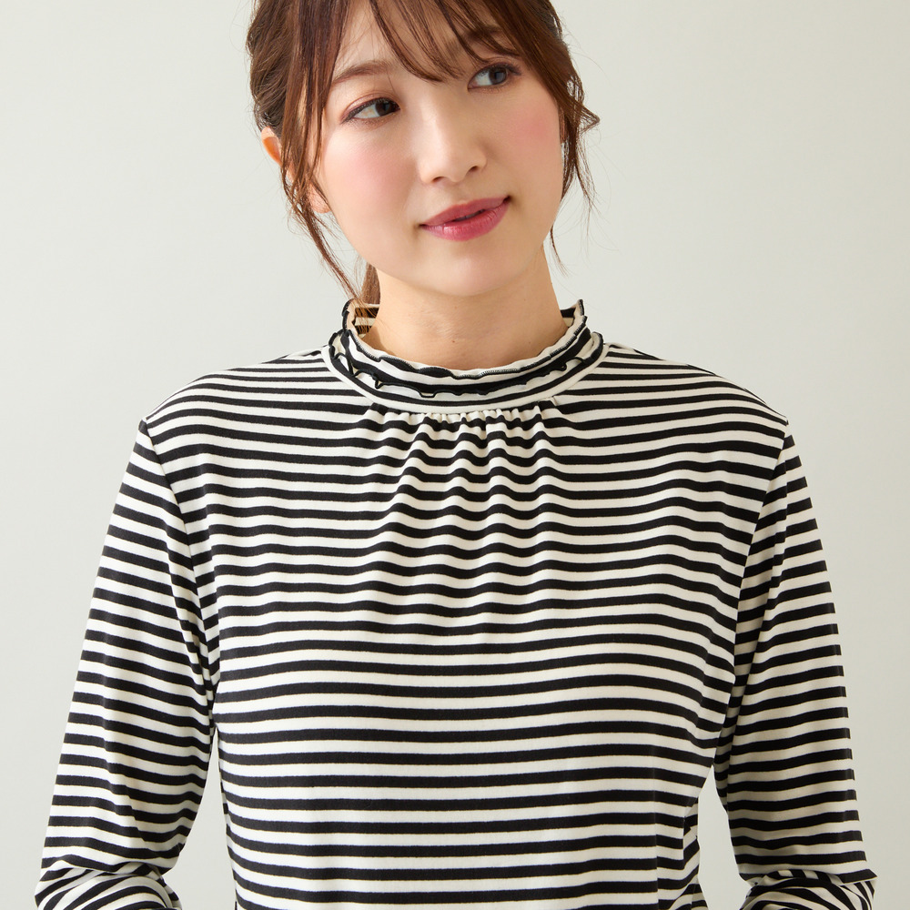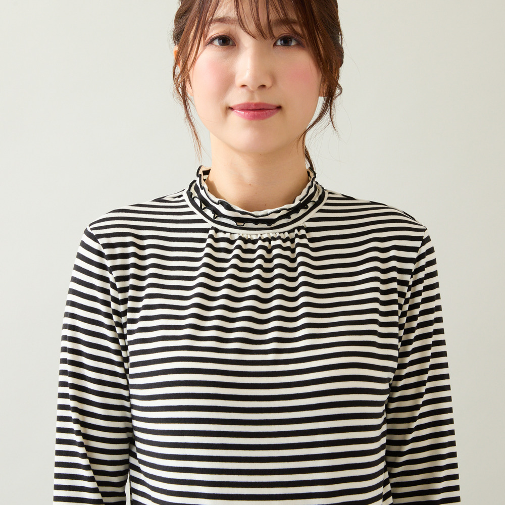 毛玉になりにくいのが特徴のあったか素材を使用したタートルネックカットソー。