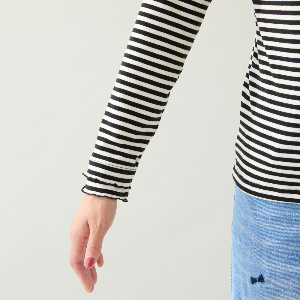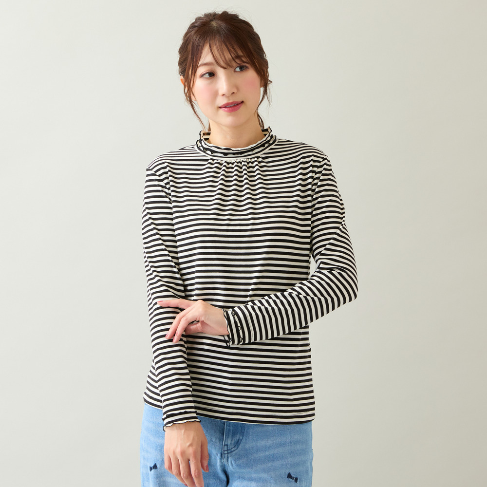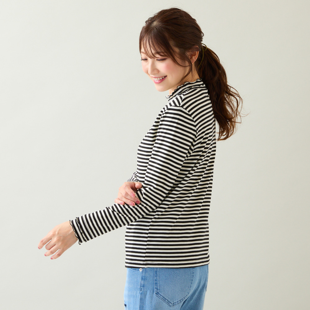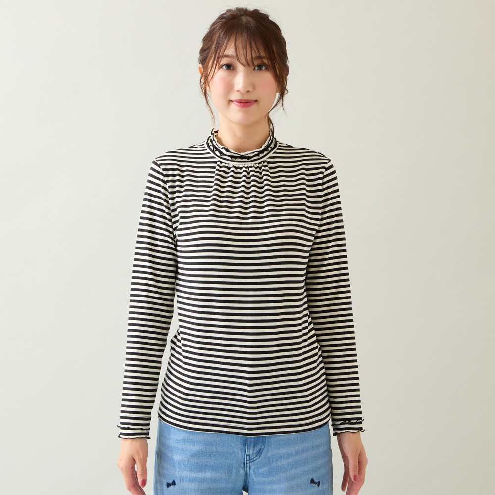 毛玉になりにくいのが特徴のあったか素材を使用したタートルネックカットソー。