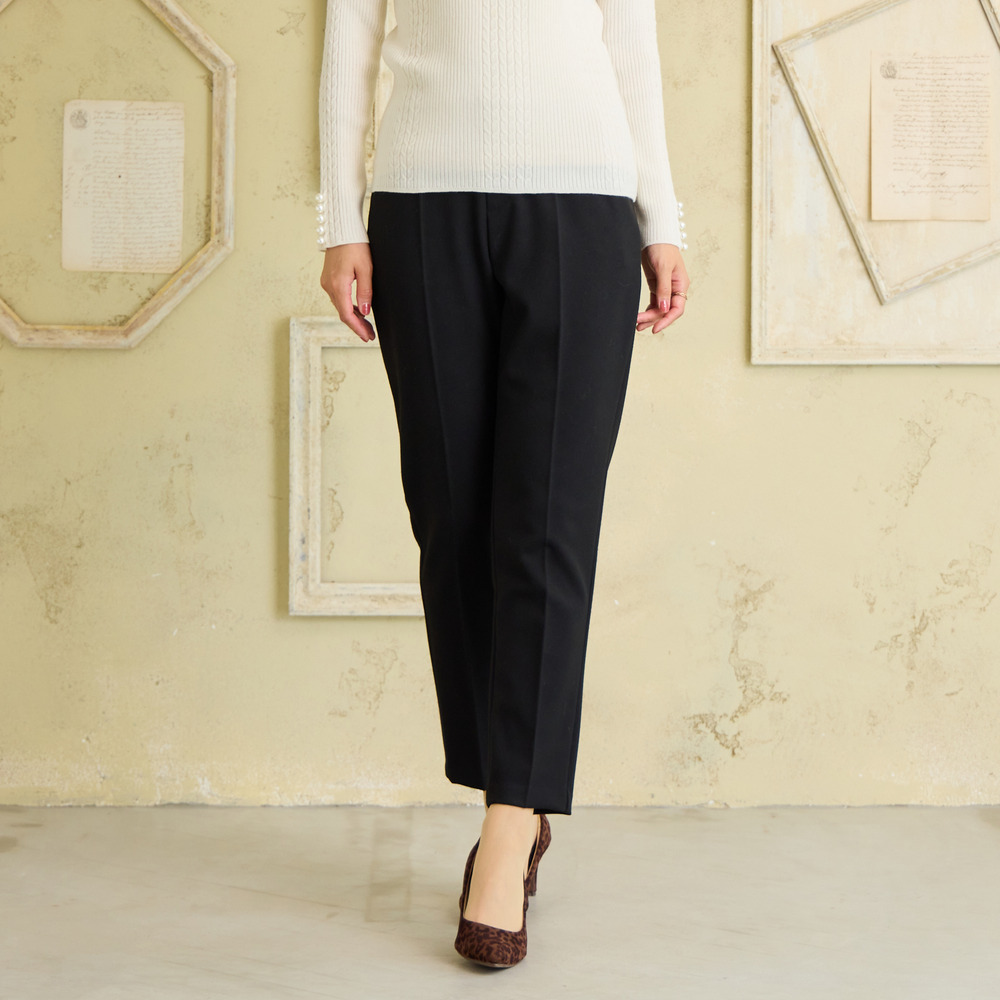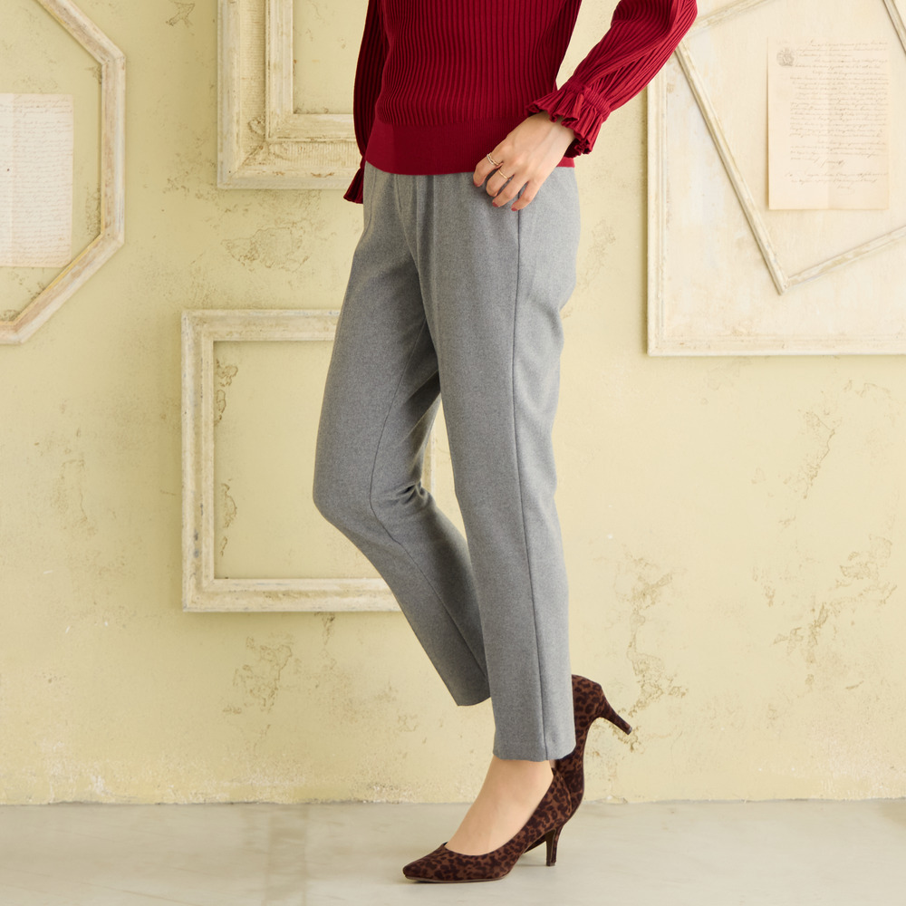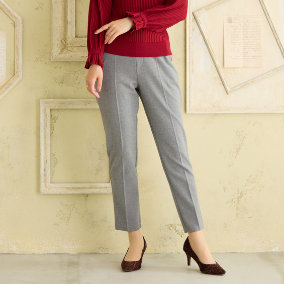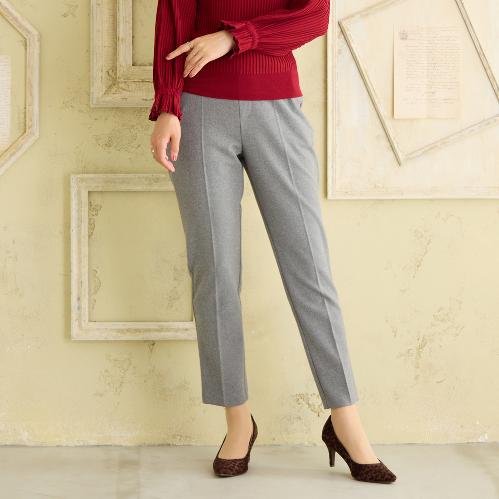 ・センタープレスが足を細く、長く見せてくれるテーパードシルエットのパンツ