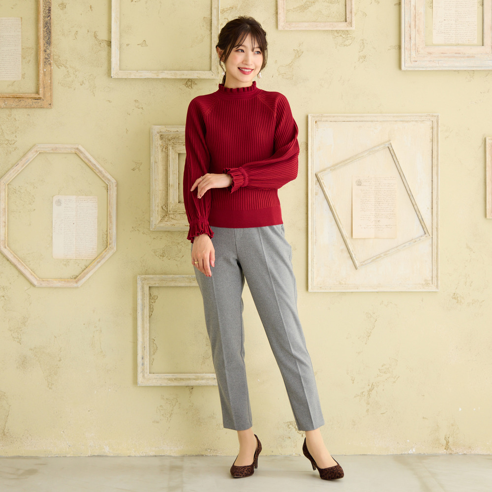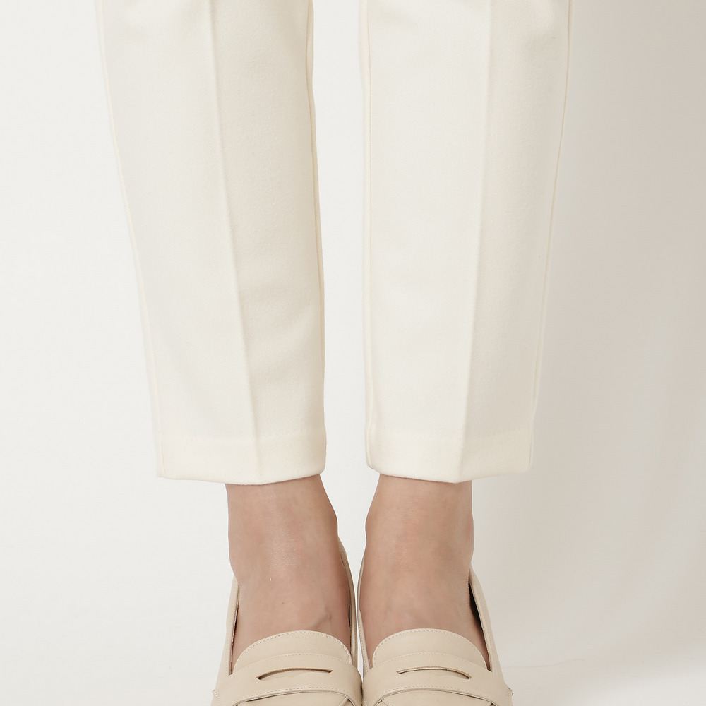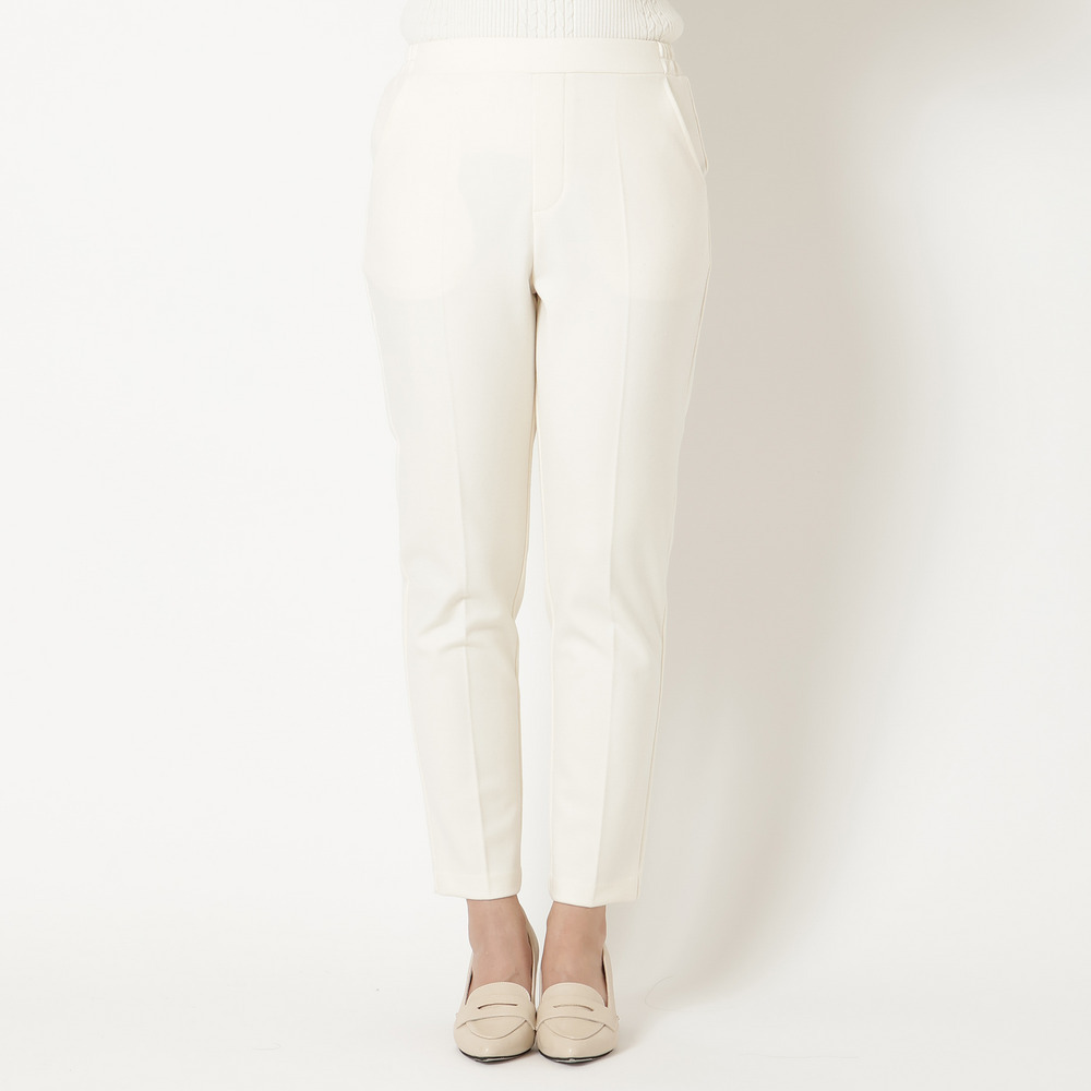 ・センタープレスが足を細く、長く見せてくれるテーパードシルエットのパンツ