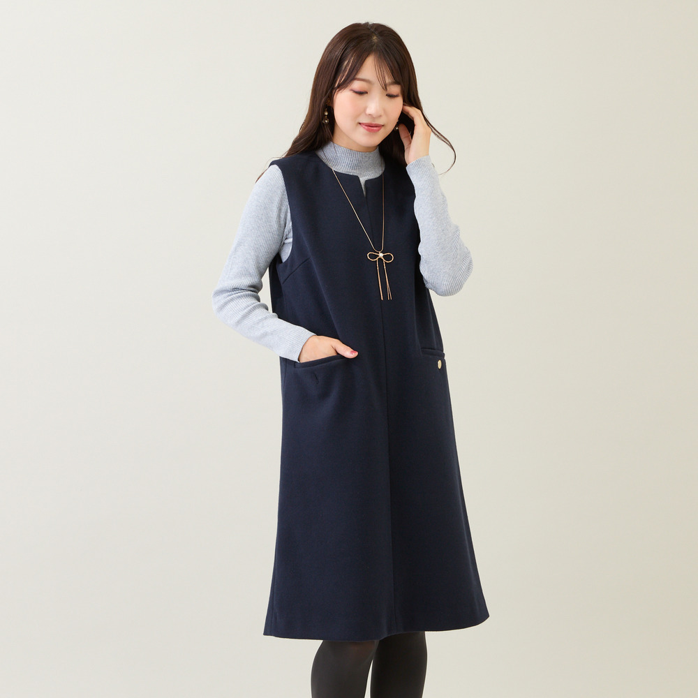 素材 | ジャンパードレス 表地 ポリエステル: 81%, レーヨン: 10%, アクリル: 9% 見返し ポリエステル: 80%, 綿: 20% 裏地 ポリエステル ニット ポリエステル: 51%, ナイロン: 29%, アクリル: 16%, 毛: 4% |