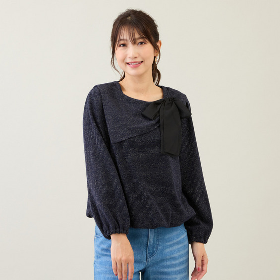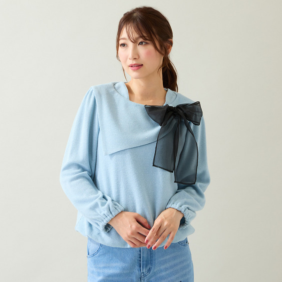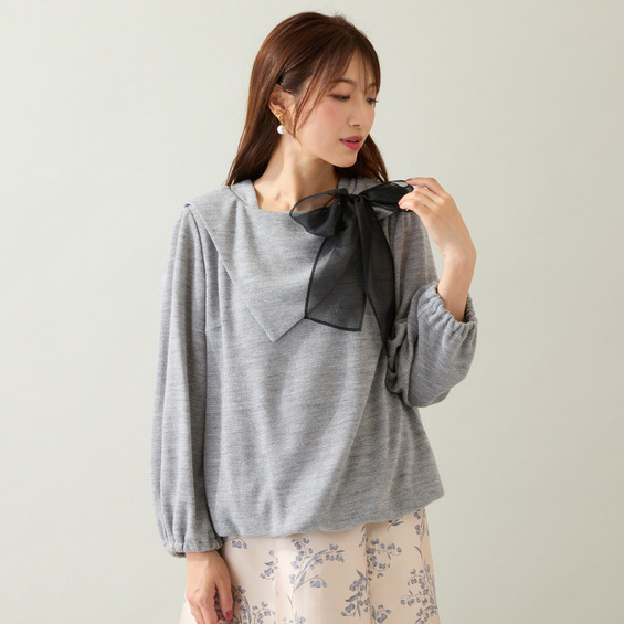 ・大きな襟とリボンが顔周りを華やかにしてくれる、キュートなデザイン