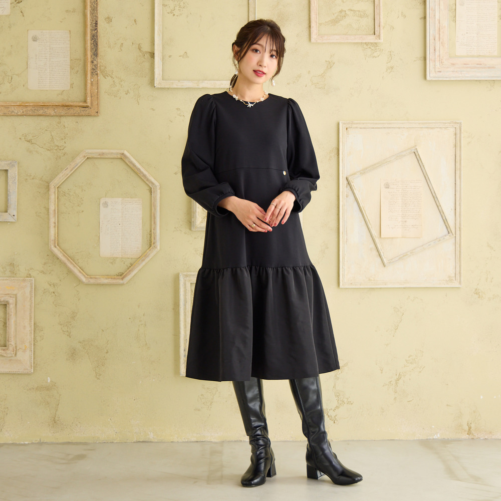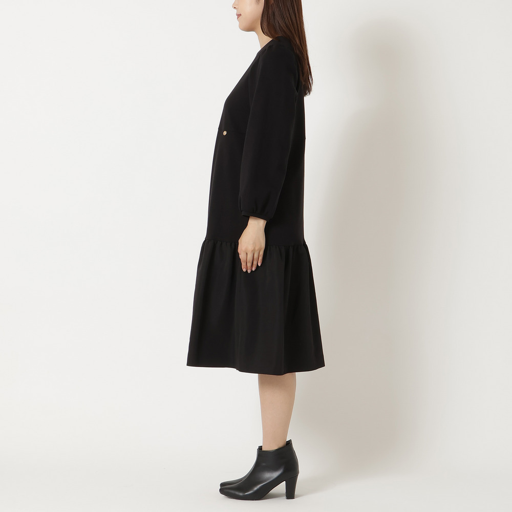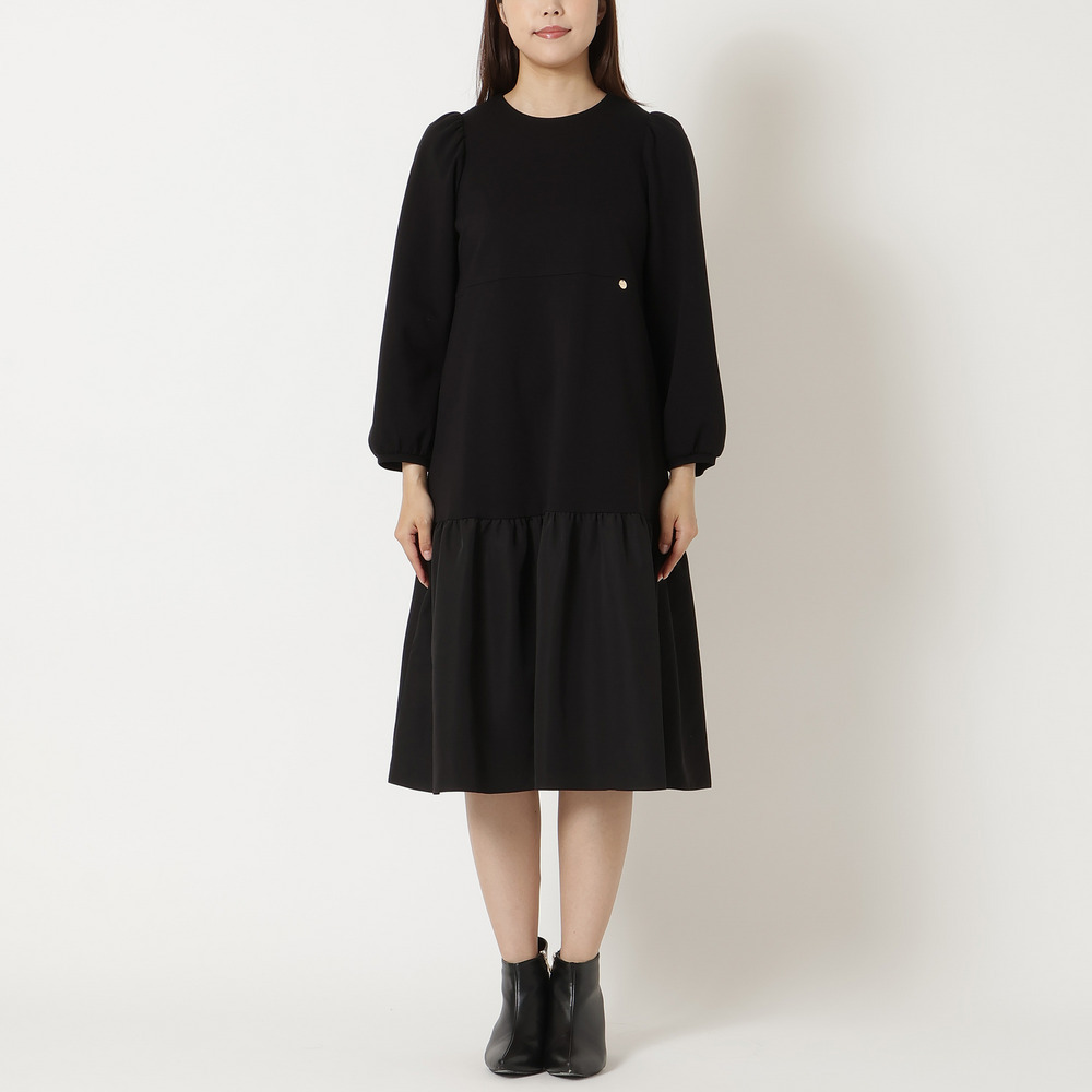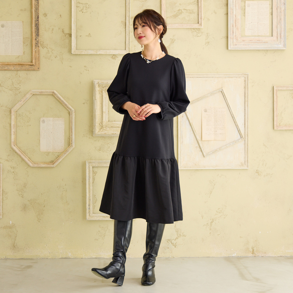 • 【吸湿発熱/保温性】異素材切替ティアードワンピース1