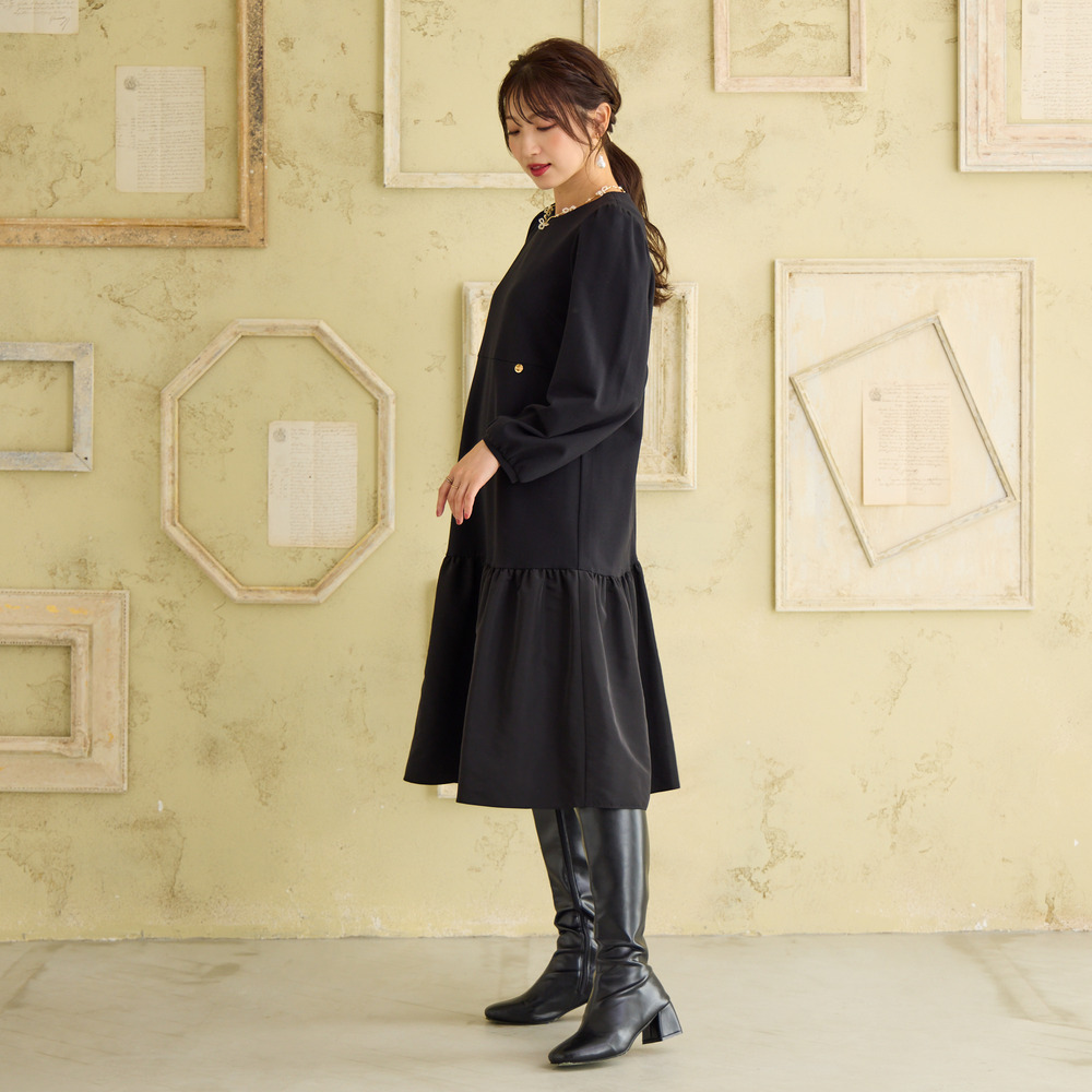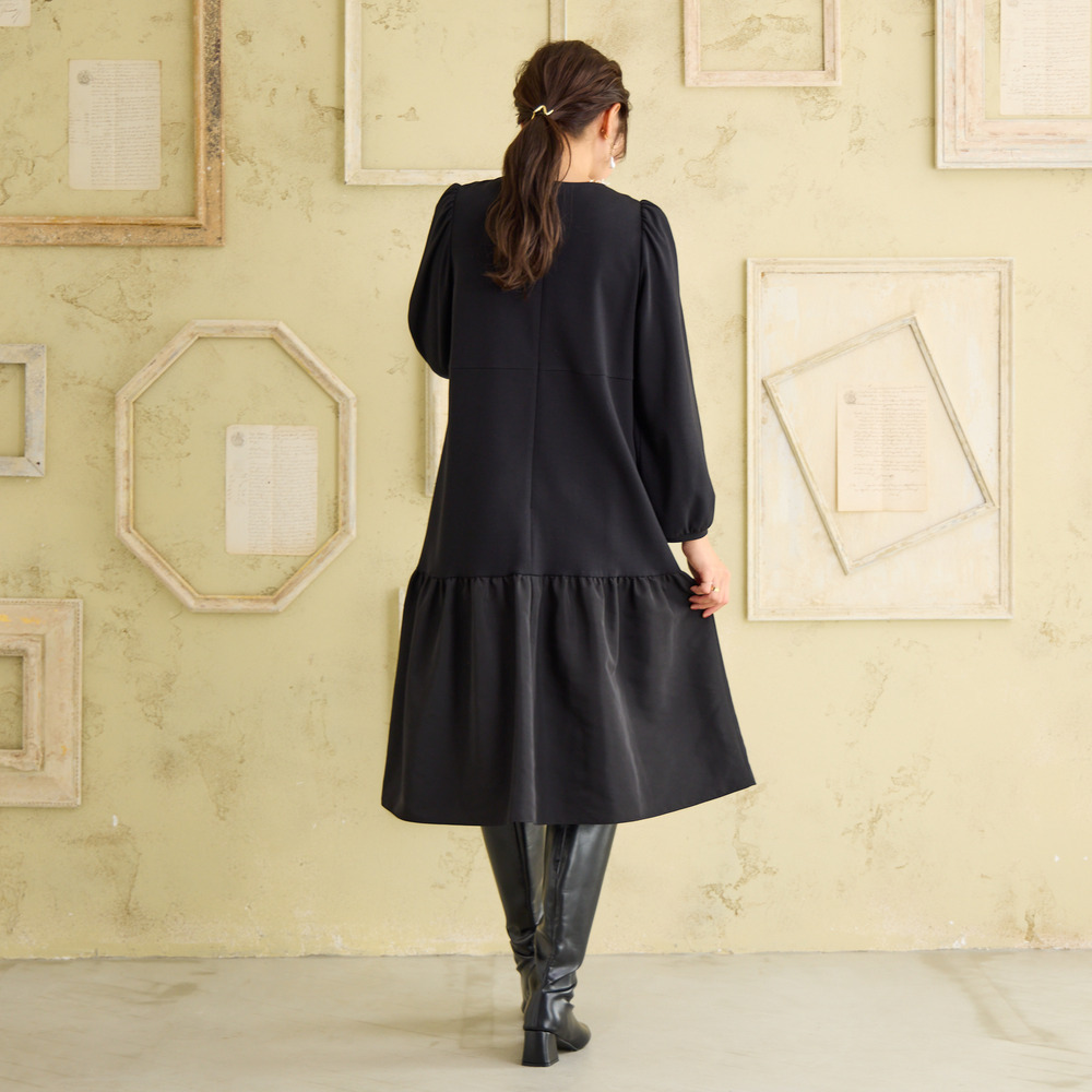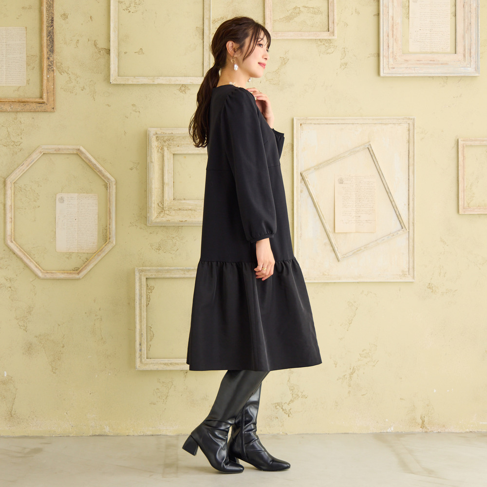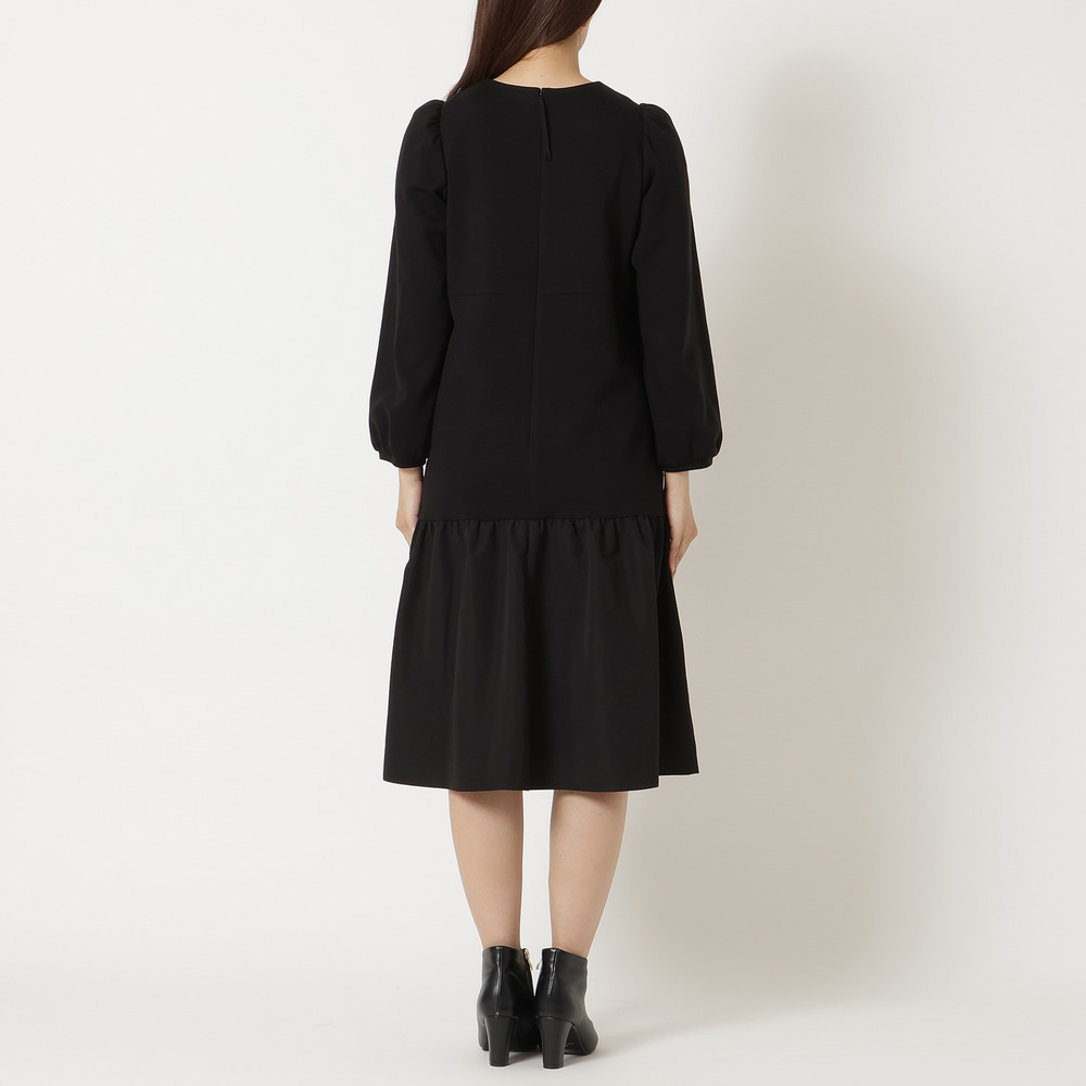 • 【吸湿発熱/保温性】異素材切替ティアードワンピース1