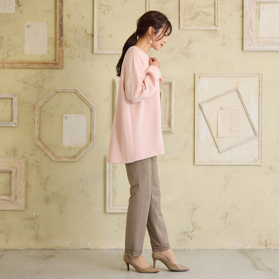 ・裏起毛の温かい素材感と特殊な編み設計により発熱効果を発揮する冬に温かい素材を使用