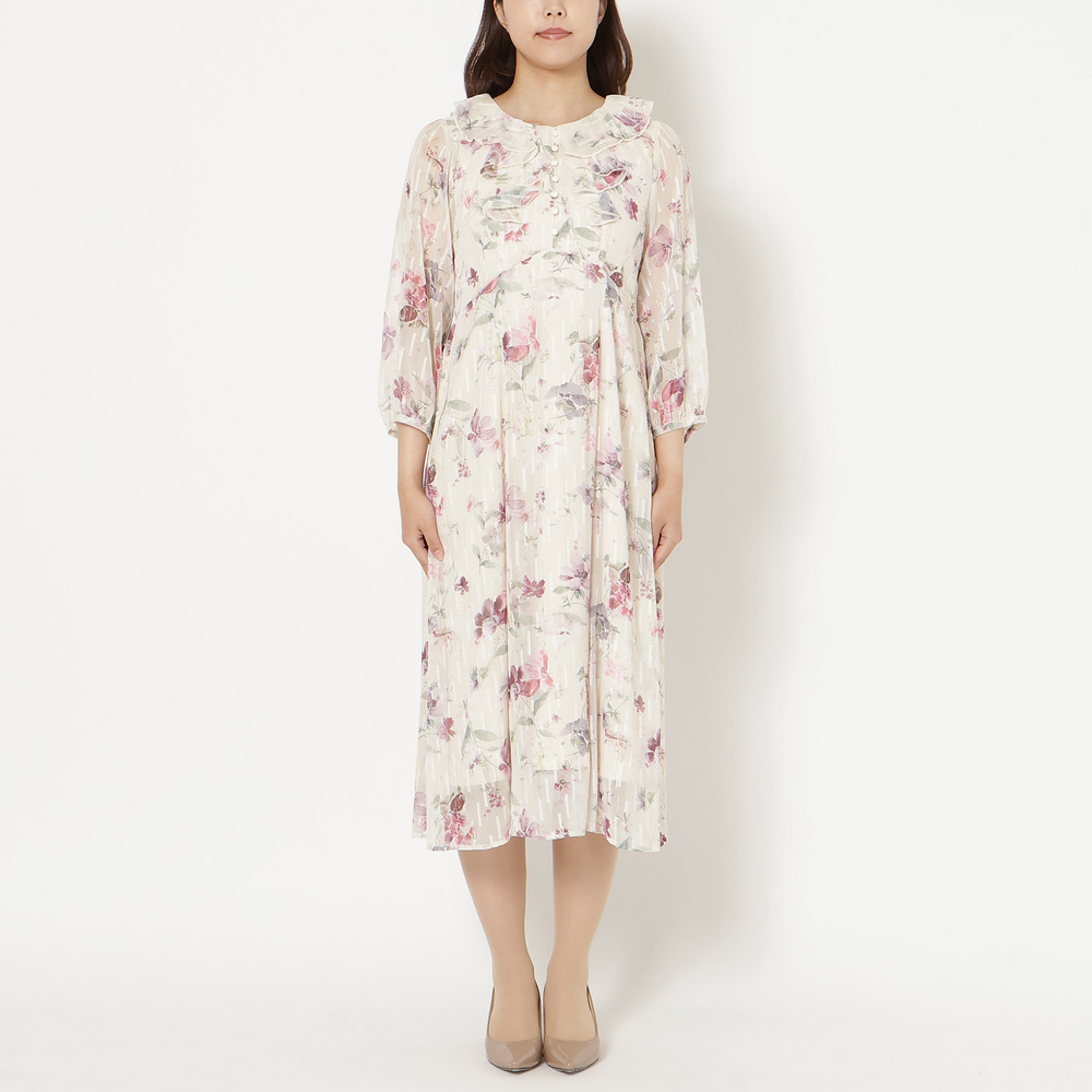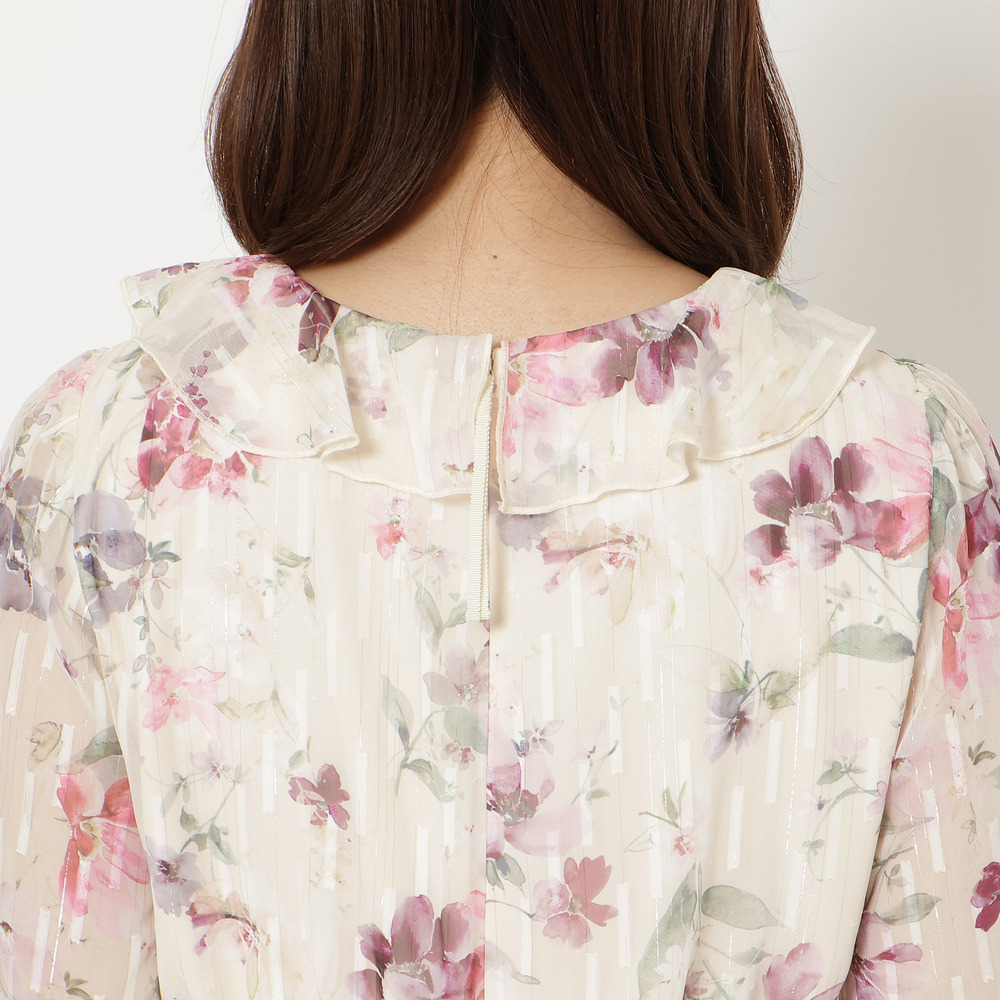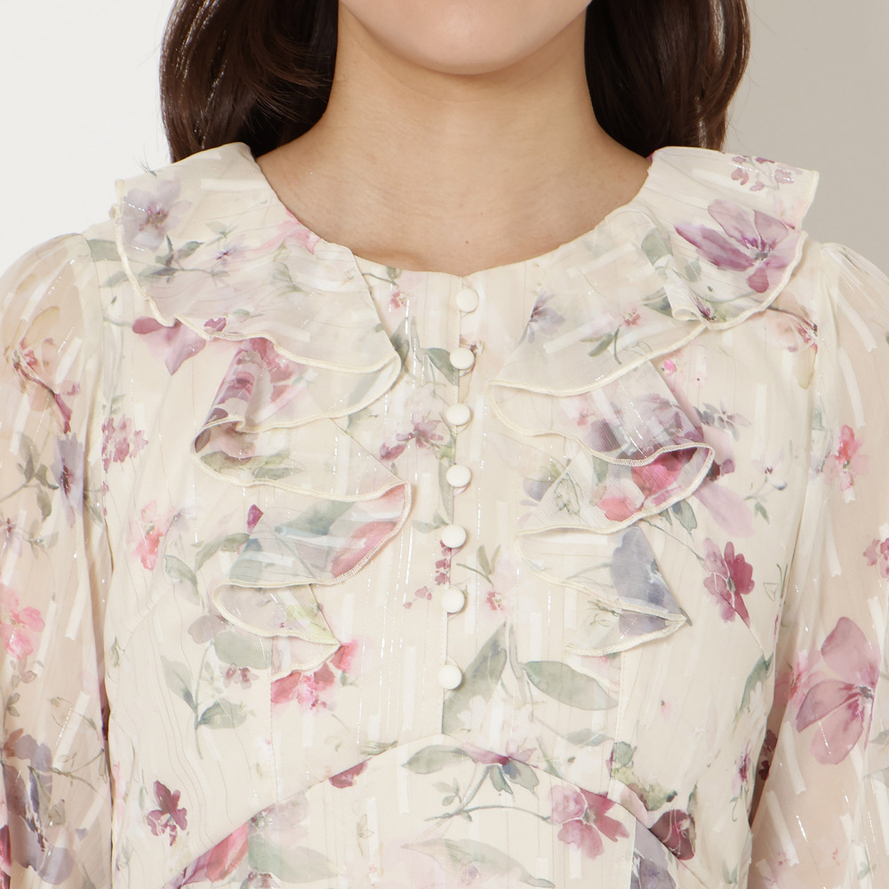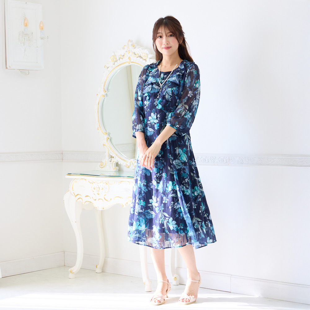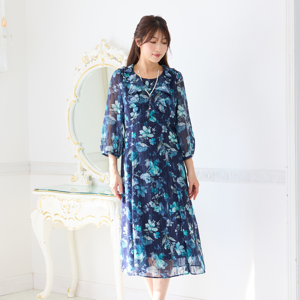 ・顔まわりを華やかに演出するフリル襟とフロントフリルが大人の可愛らしさを引き立てます