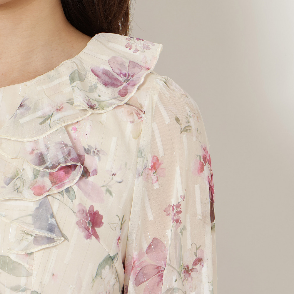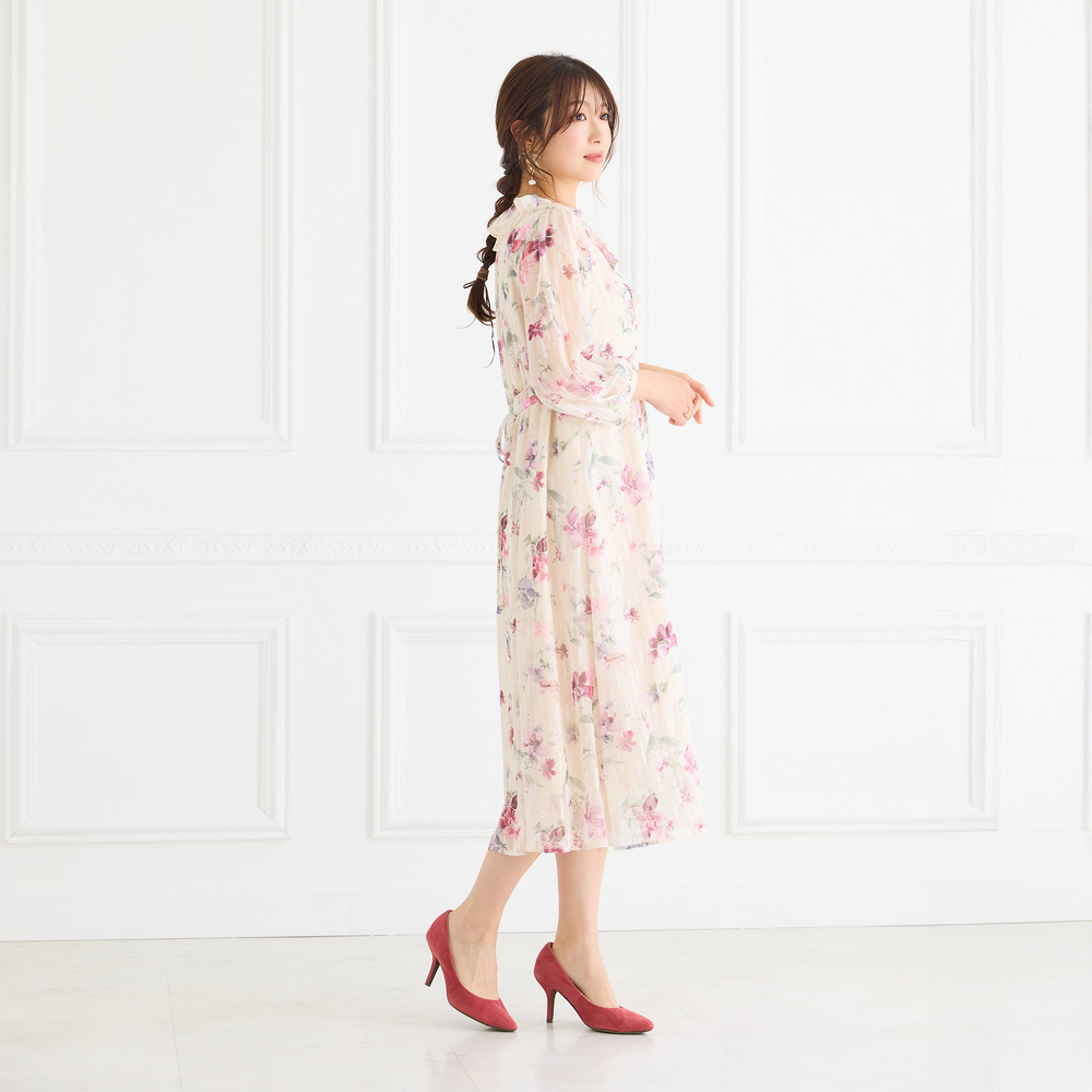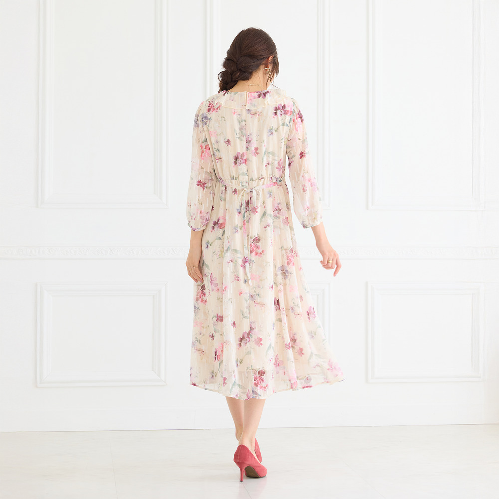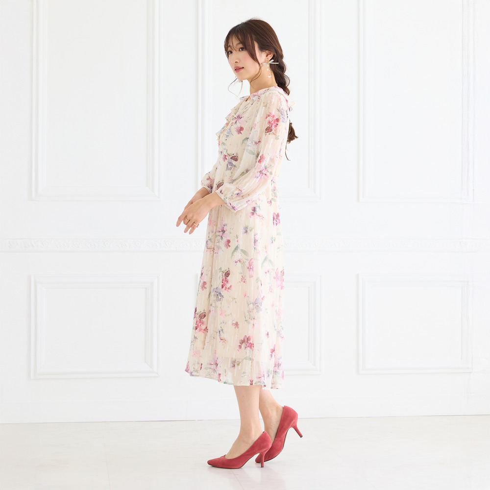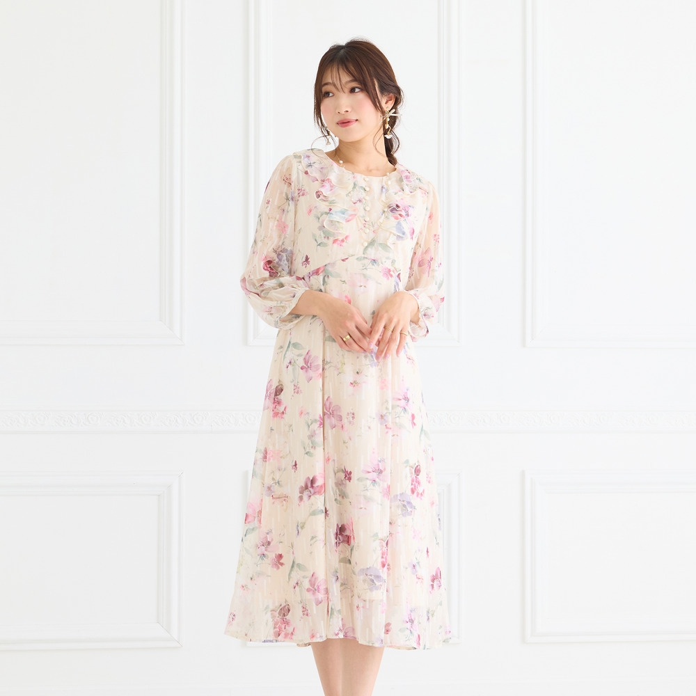・顔まわりを華やかに演出するフリル襟とフロントフリルが大人の可愛らしさを引き立てます