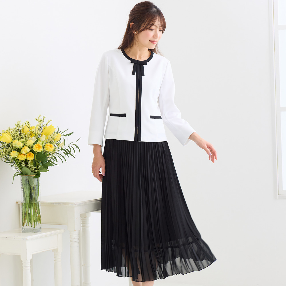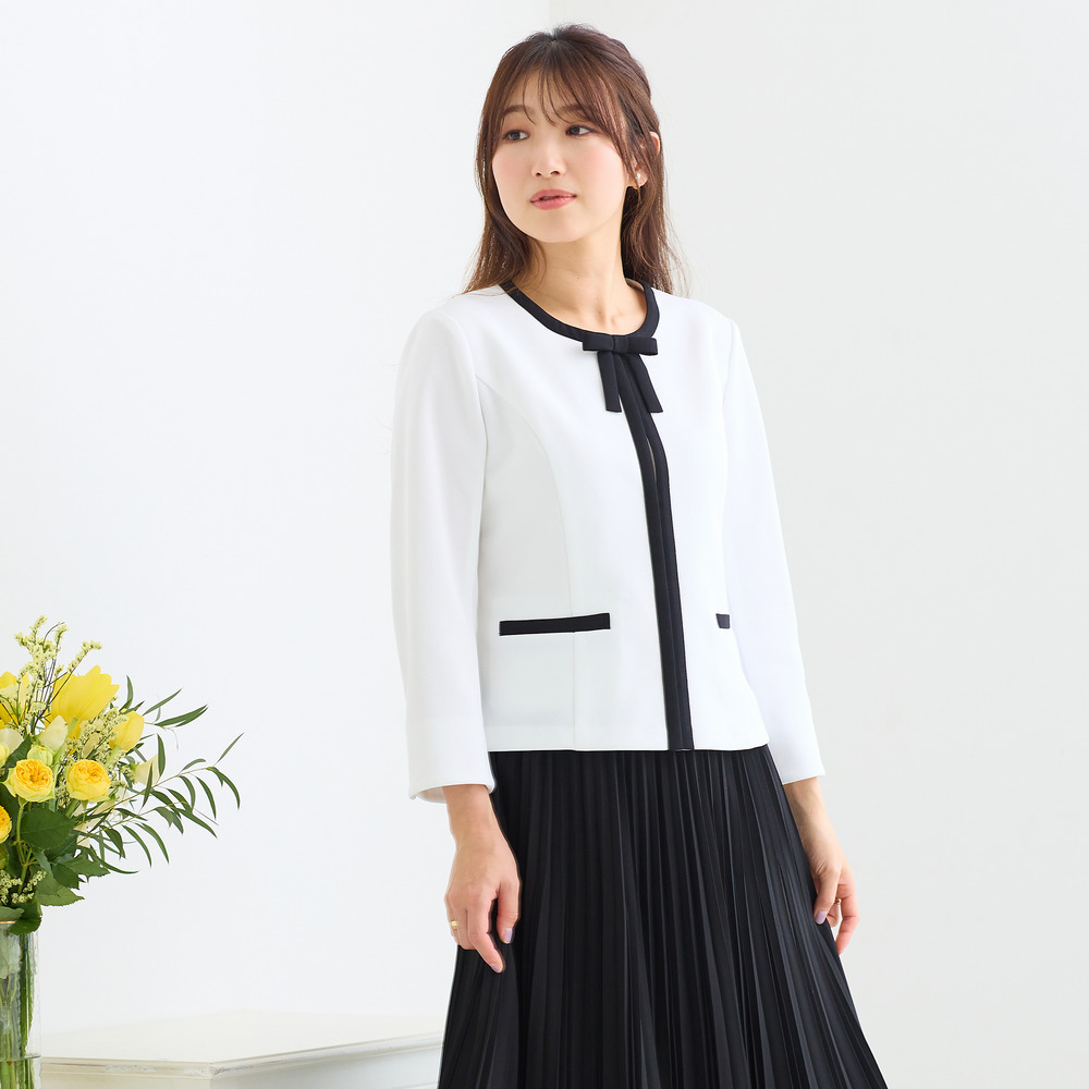 ・立体的なリボンと配色トリミングが上品なアクセント