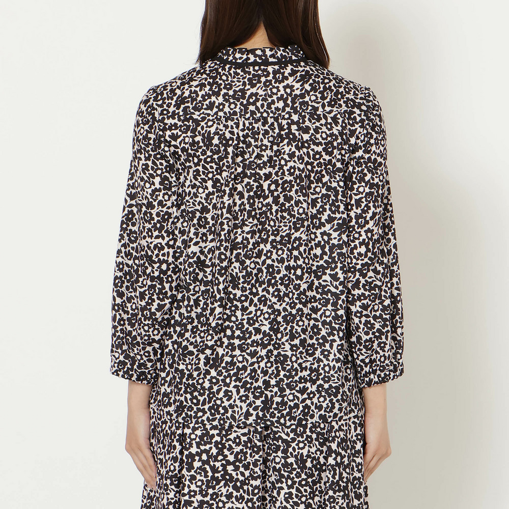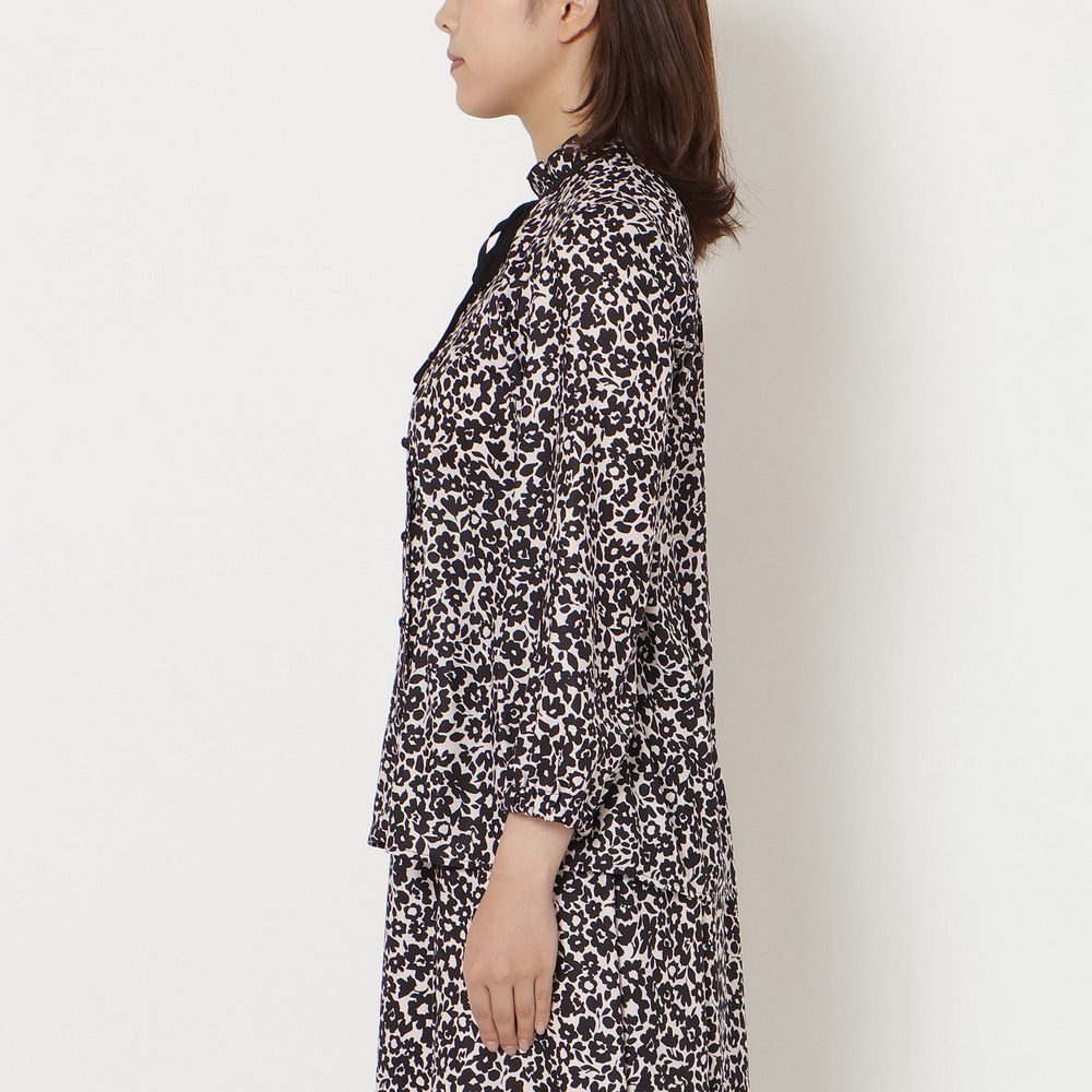 ・モノトーンベースで甘くなりすぎず、大人フェミニンな装いを楽しめる一枚