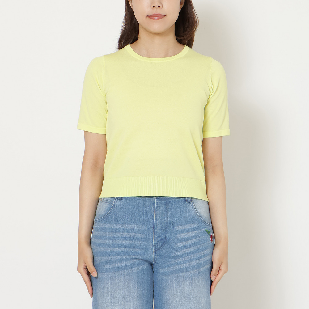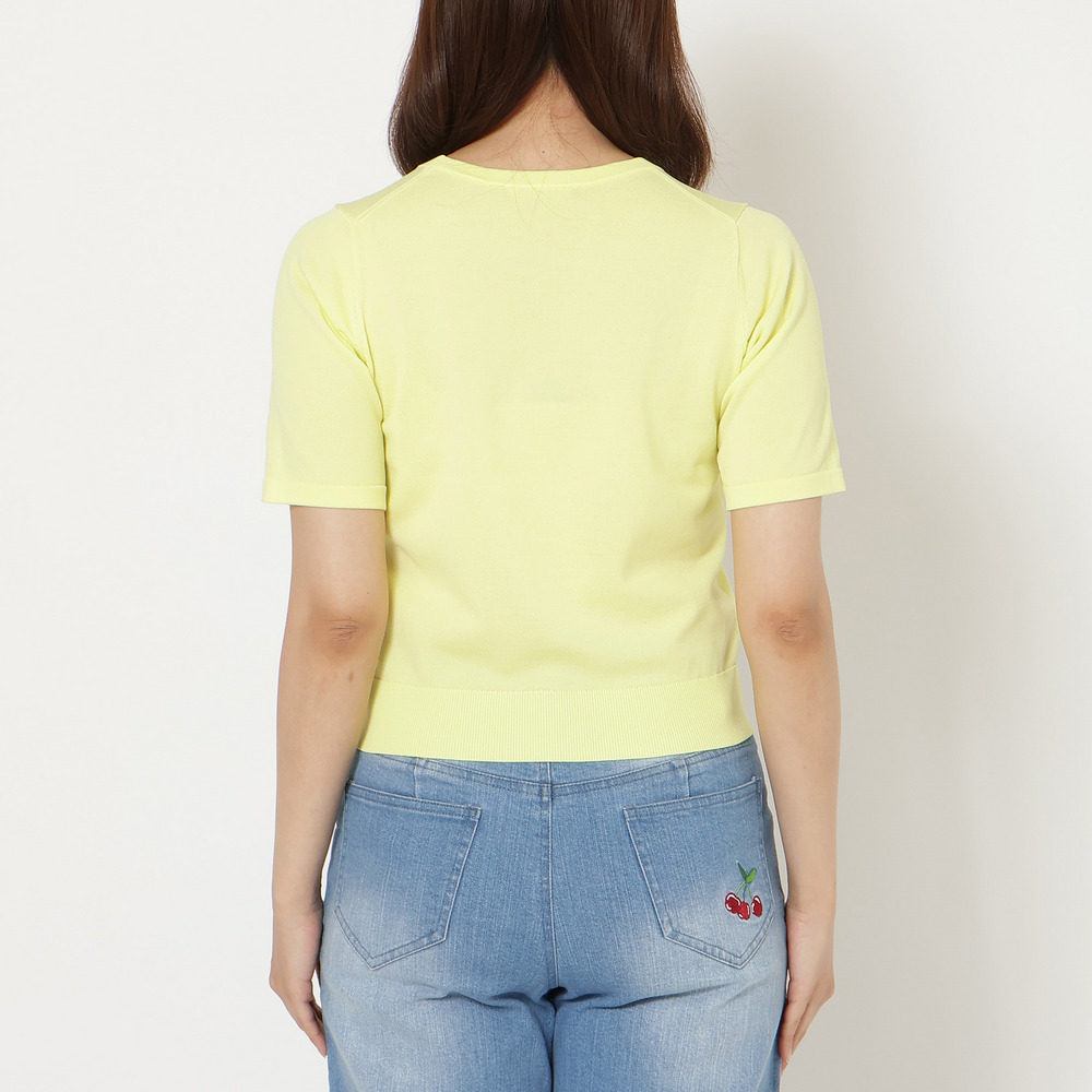 ・ハーフスリーブのプルオーバーと、ポケット付きクルーネックカーディガンの上品なアンサンブルニット