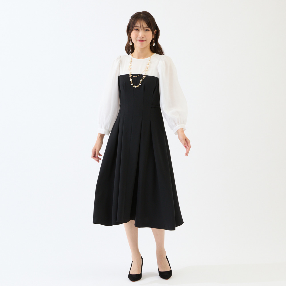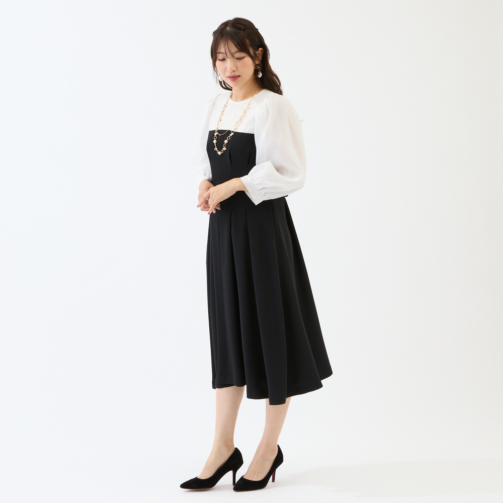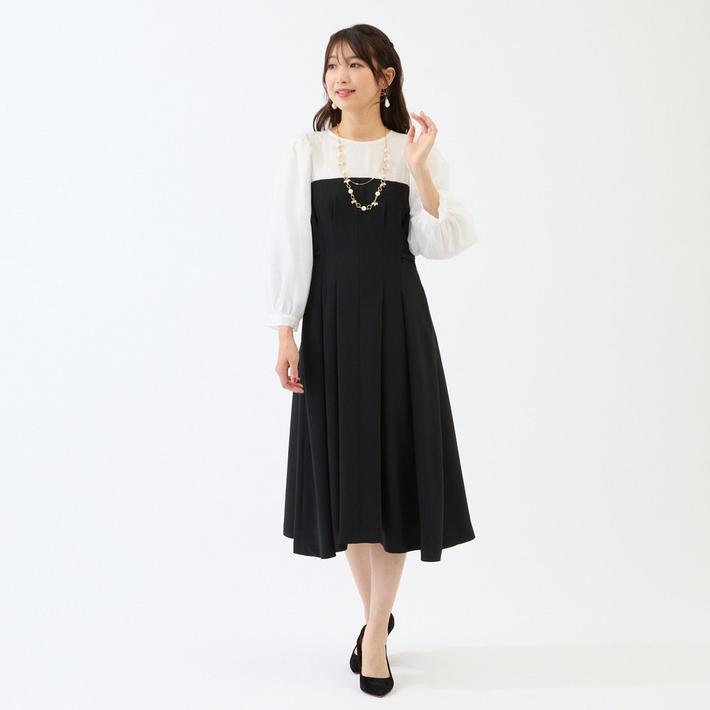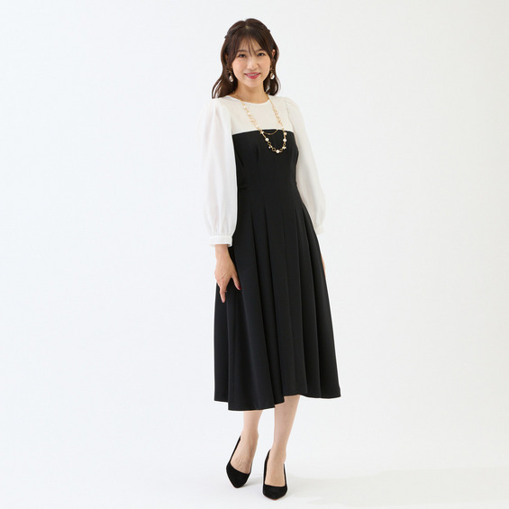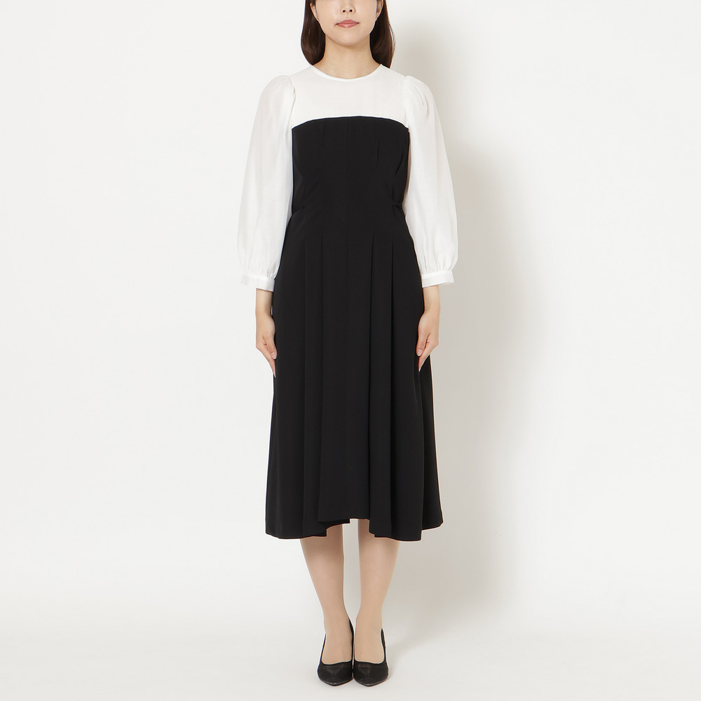 【接触冷感/シワになりにくい】配色切替プリーツワンピース