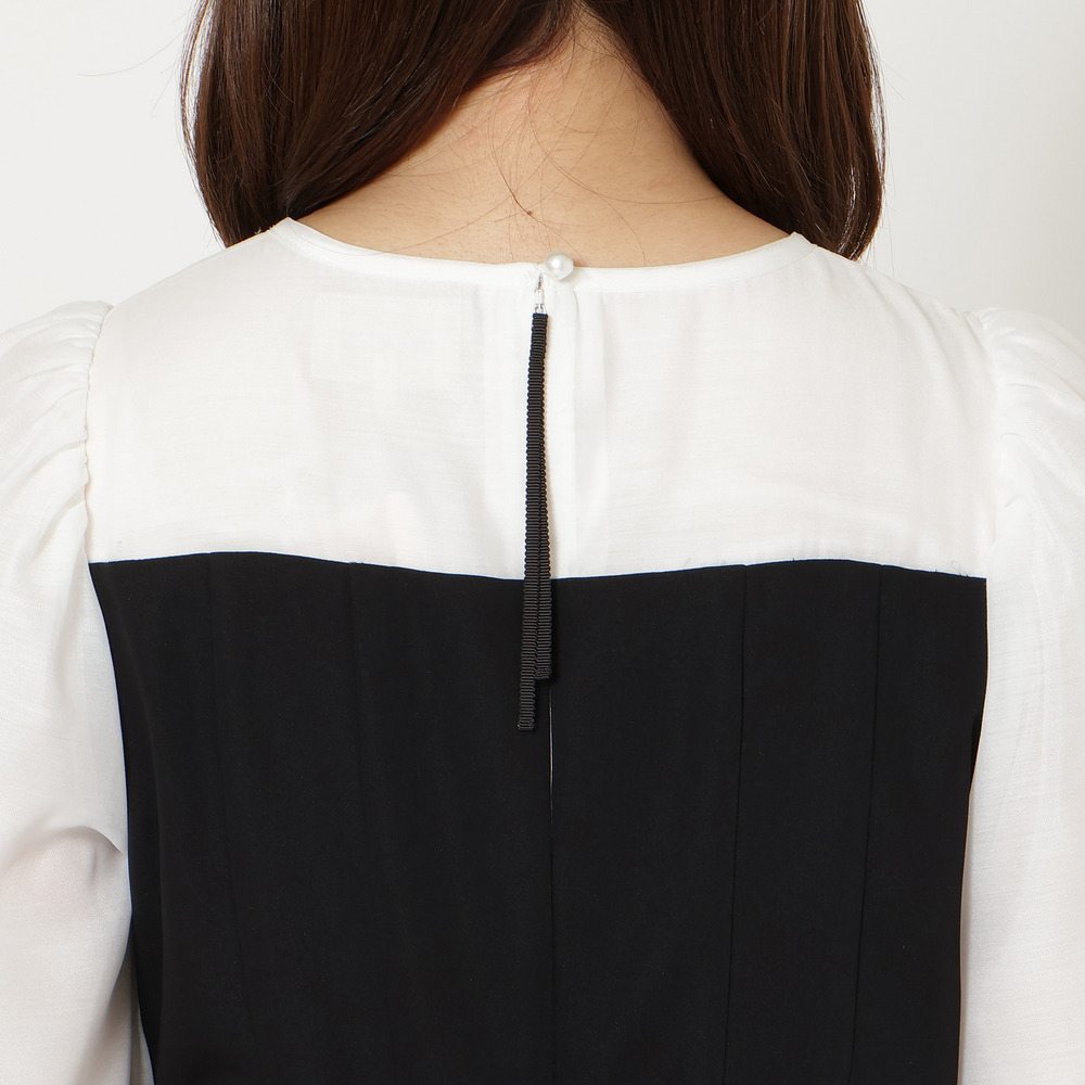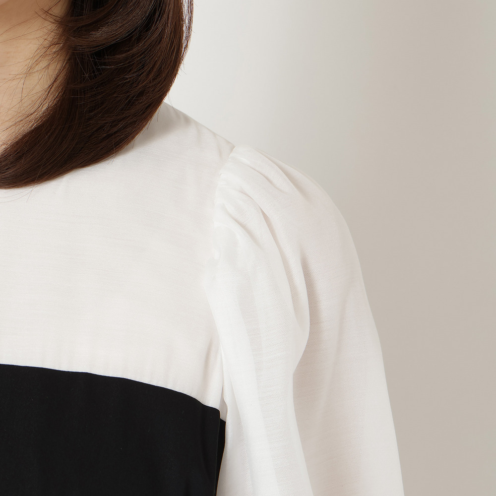 ・トップ部分をオーガンジーで、袖部分はオーガンジーとチュールで切り替えたシンプルながら上品で愛らしいデザイン