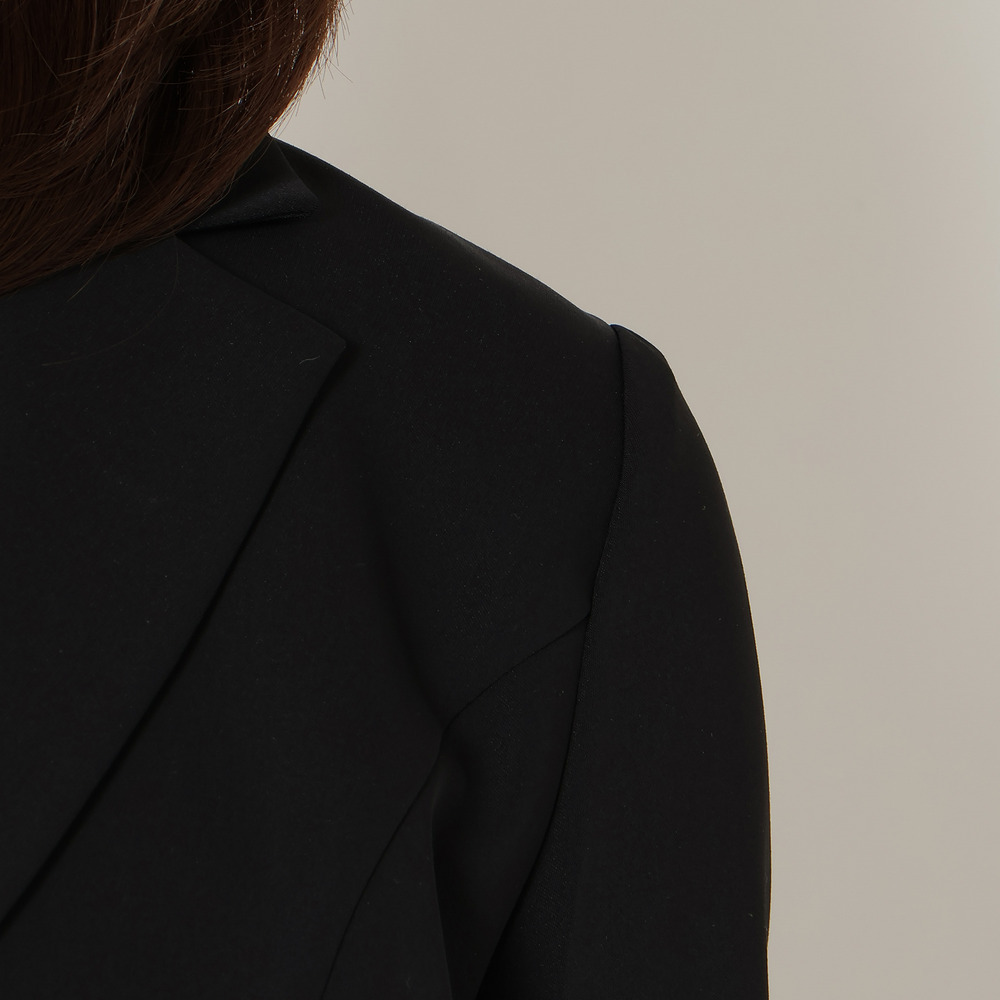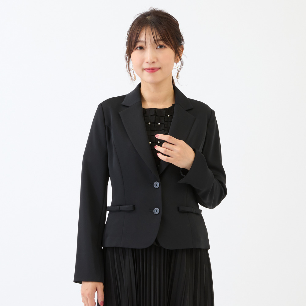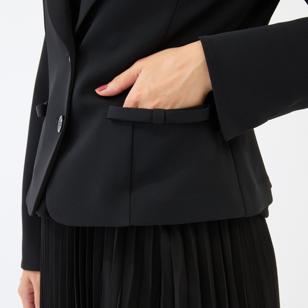 ・ポケット口の立体的なリボンがほんのり可愛さをプラスした大人のテーラードジャケット