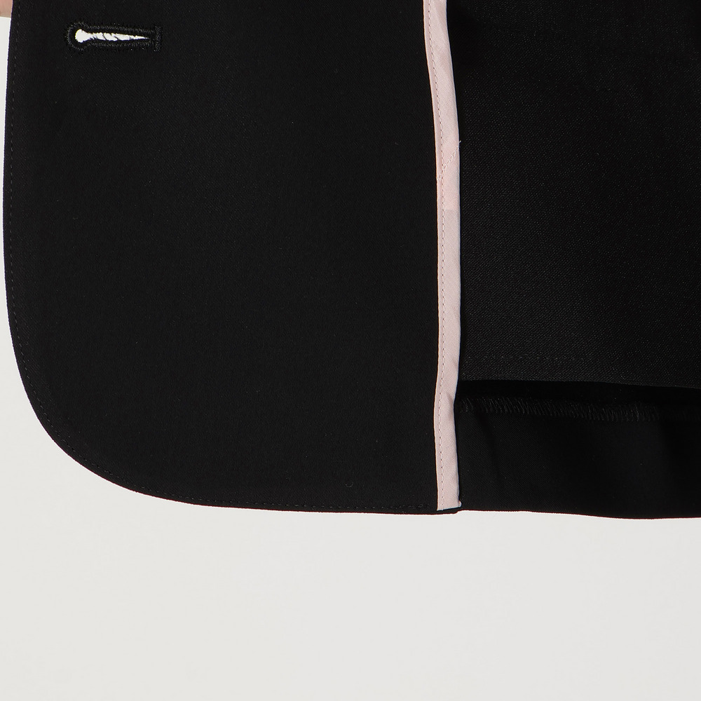 ・裏なしのデザインにピンクのパイピングで軽やかな着心地ながら、きちんと感のある仕立てに