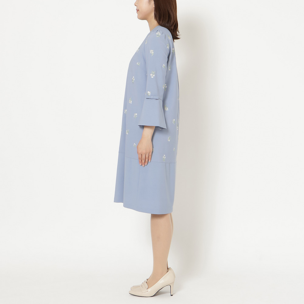素材選びからデザイン、パターンまでを一貫して行い、タックの向きやギャザー分量、フリル位置などを36・38・40号と42・46・50号では調整し、パターンを分けることで美しいシルエットと着心地の良い服を提案します。