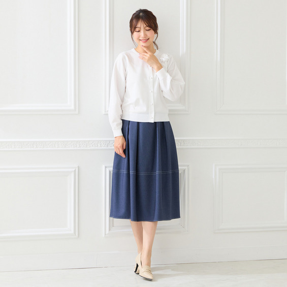 ・切替を入れたコクーンシルエットで上品で愛らしい大人のデニムスタイルに