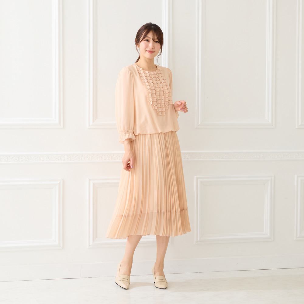 ・ほどよい透け感とふんわりとした軽さを持つ100dシフォン素材で軽やかさを出したデザインに