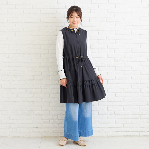 ・イタリア、LIMONTA社の軽量ポリエステル素材を使用したギャザーフレアジレ