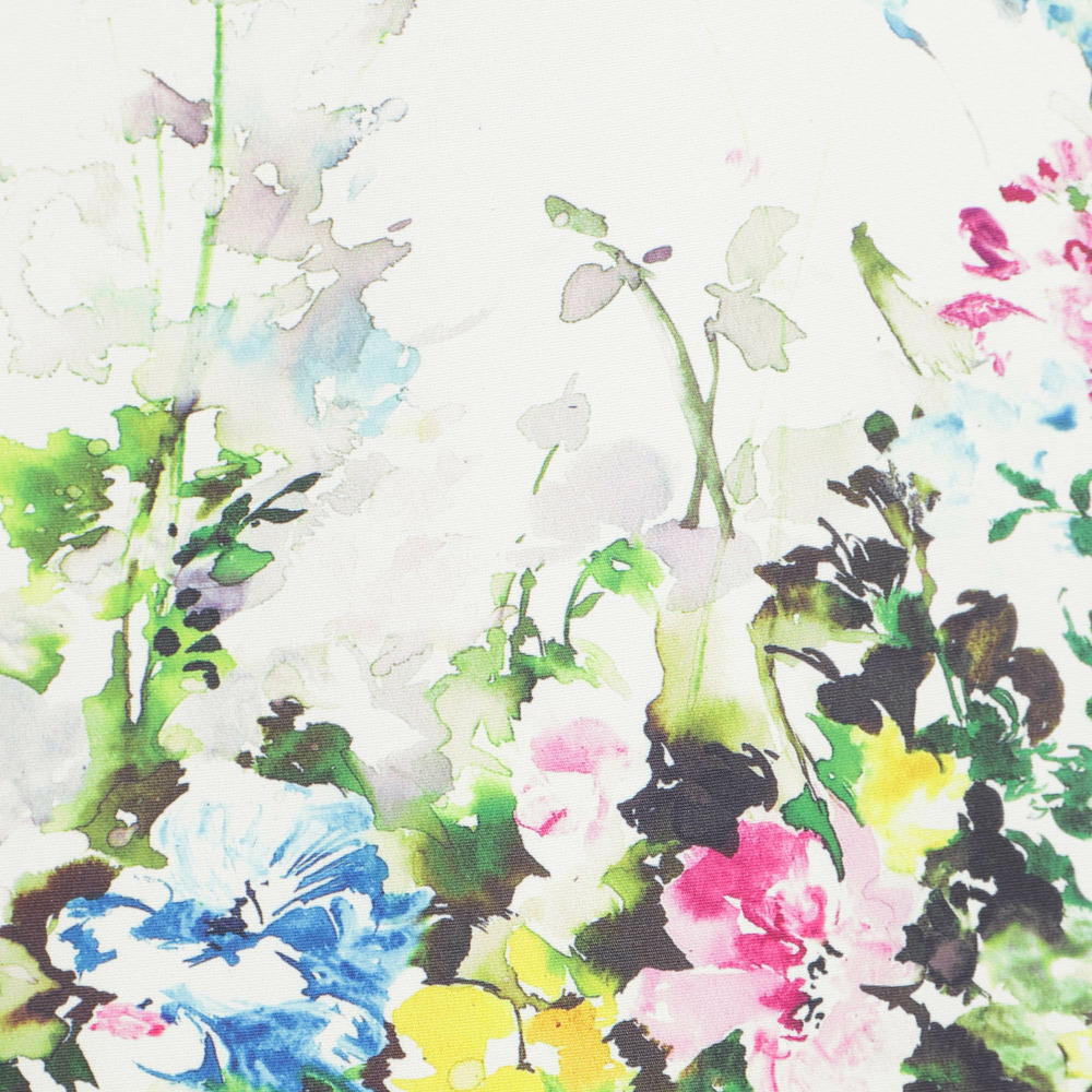 ・色とりどりの花々が咲き誇るプリントはローズティアラオリジナルで、春の装いを明るく彩ります