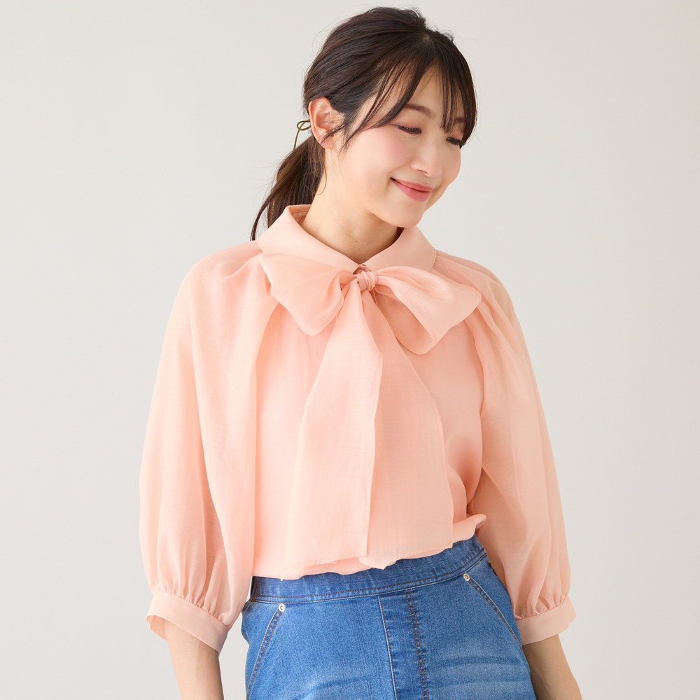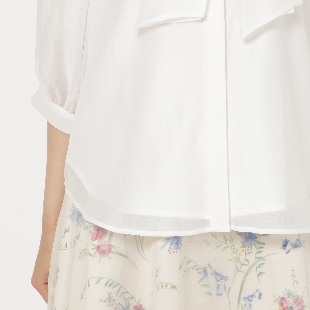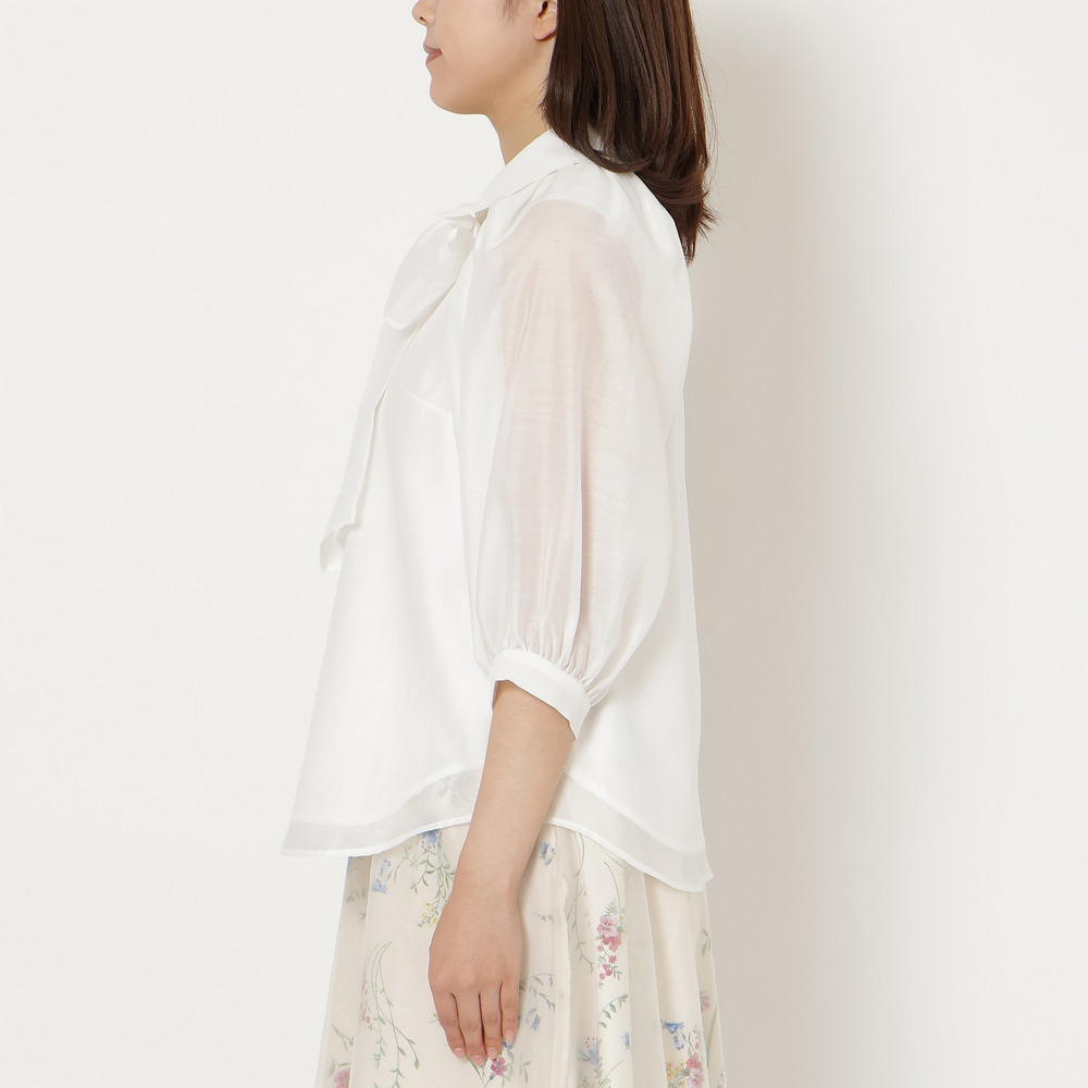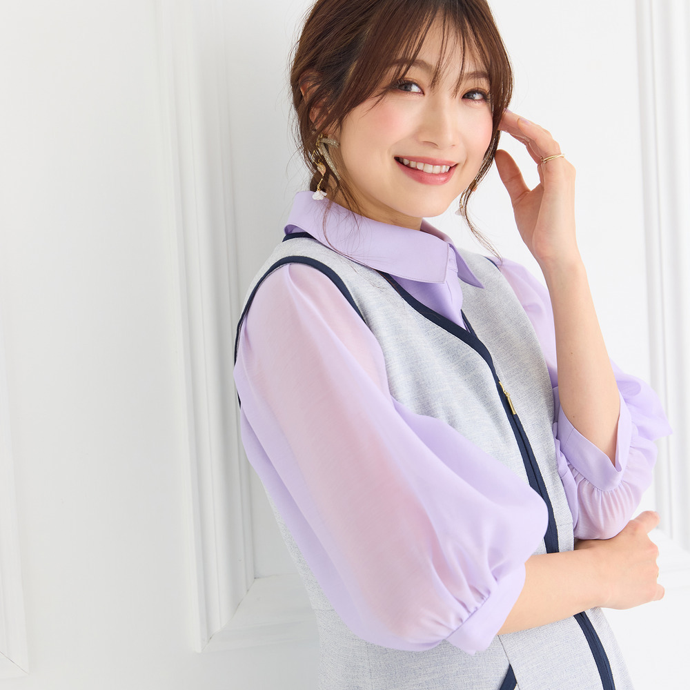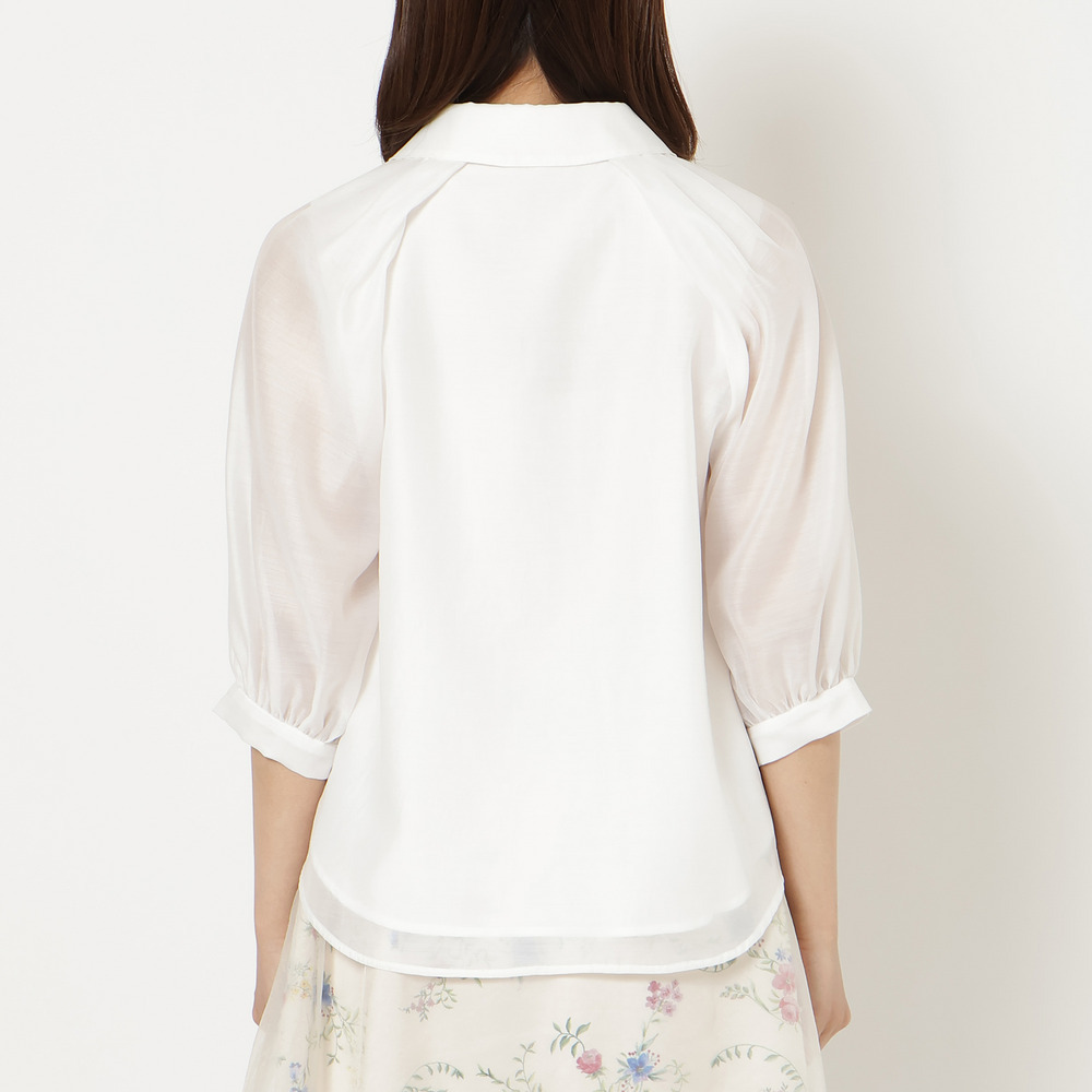 ・立体感のあるボリューム袖が印象的な、フェミニンムード漂う襟付きブラウス