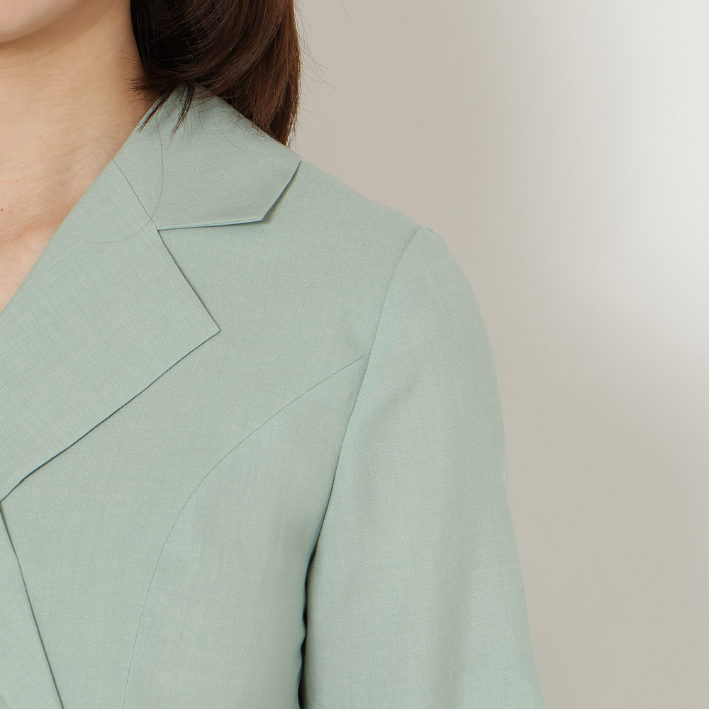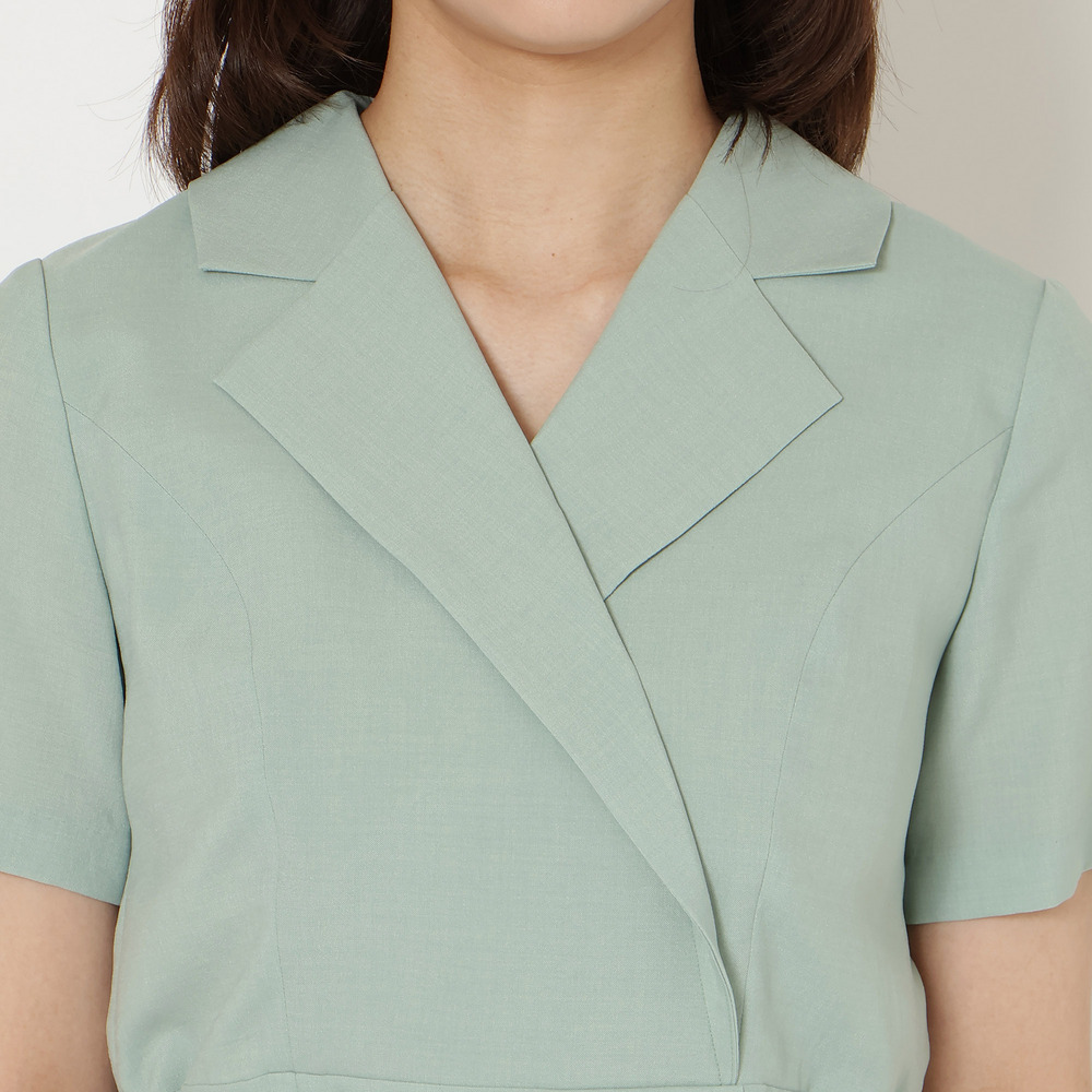 ・ラップ風のシャツデザインは上品かつ女性らしい印象に