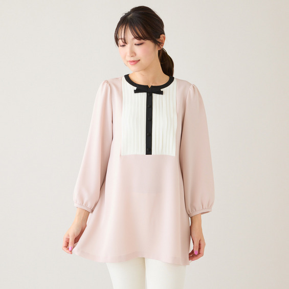 ・繊細なタックデザインと配色切替がクラシカルな印象のフェミニンブラウス