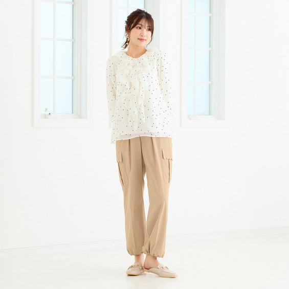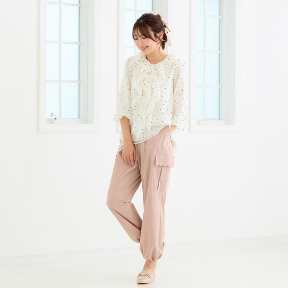 ・裾には調節用のゴム入りで、絞ってシルエットを変えれば雰囲気チェンジも楽しめる