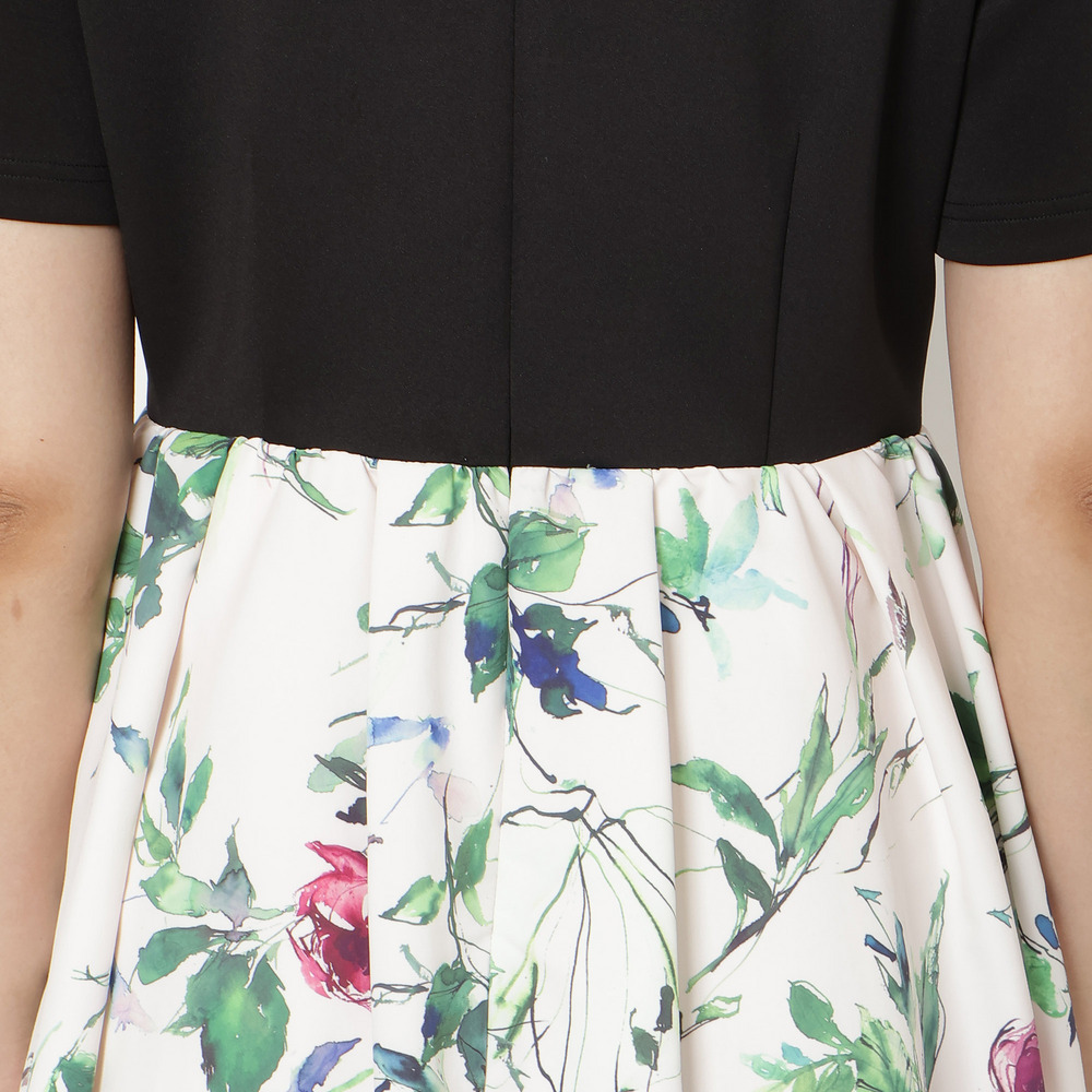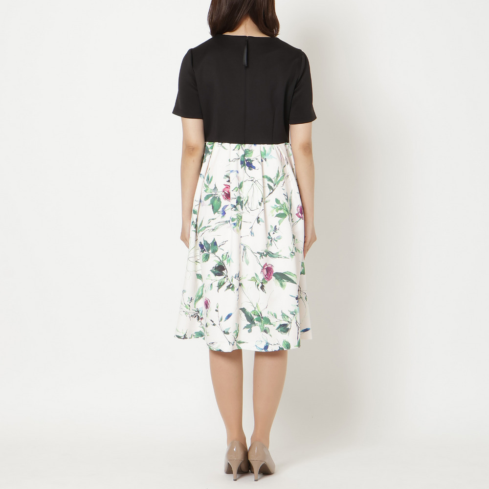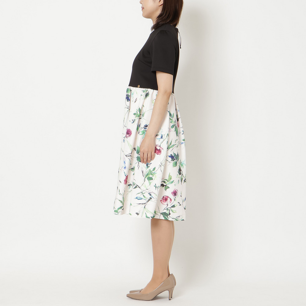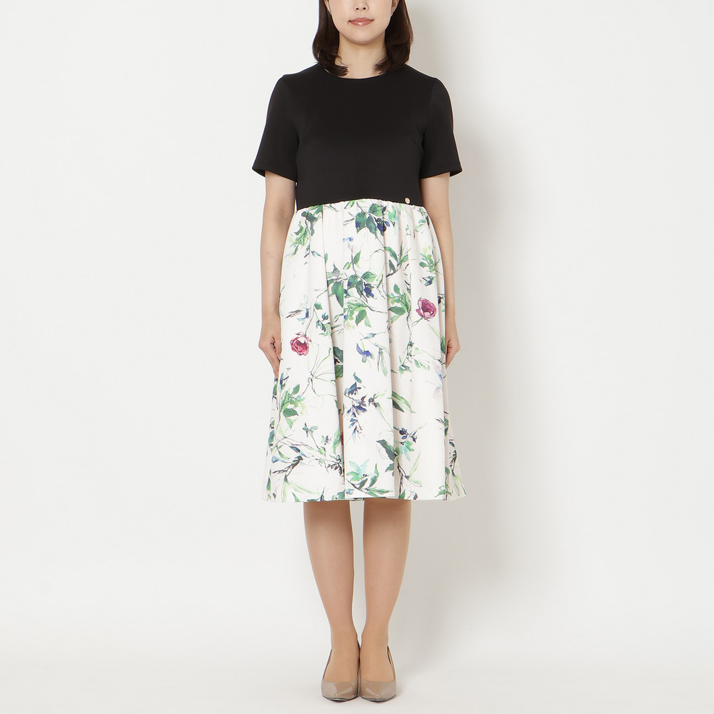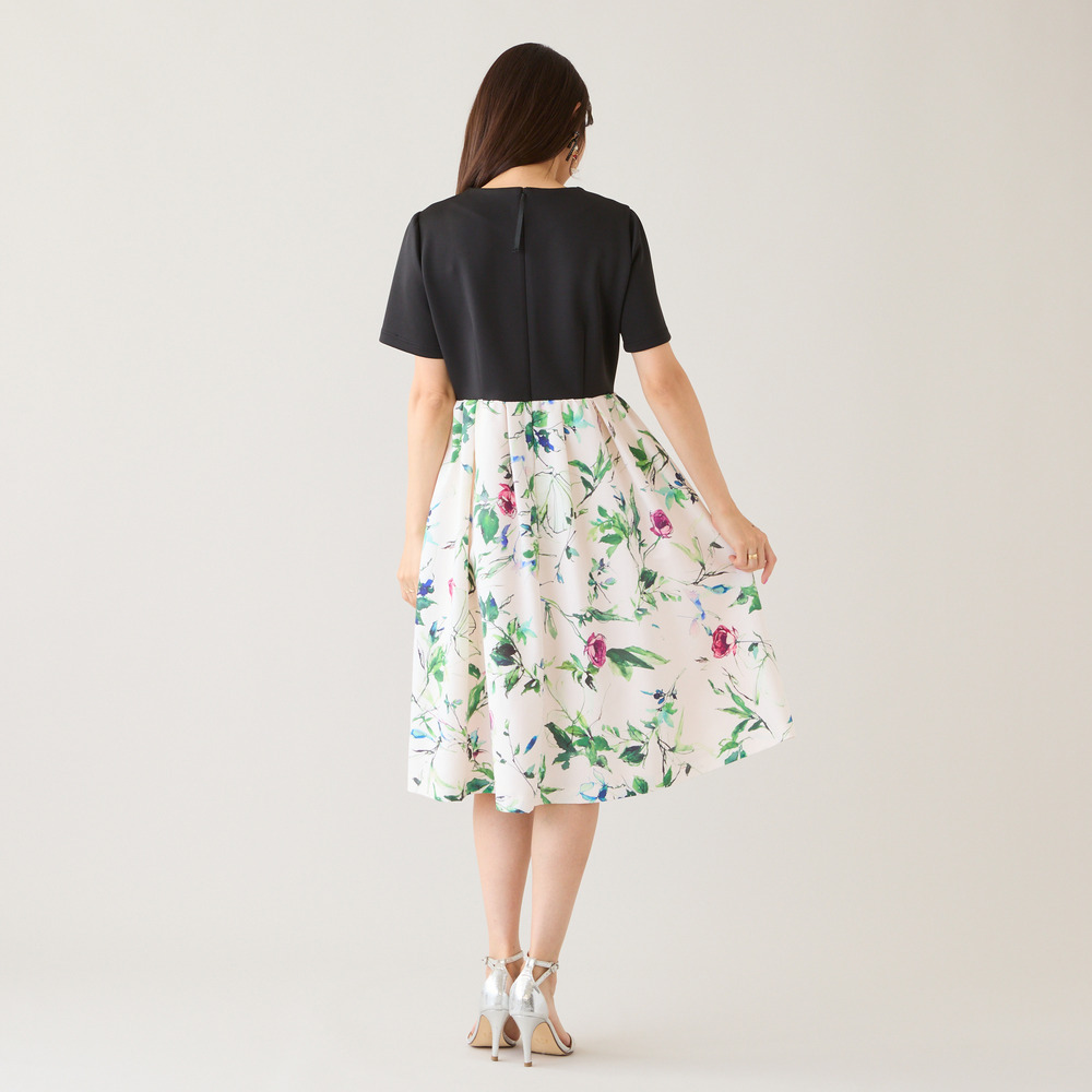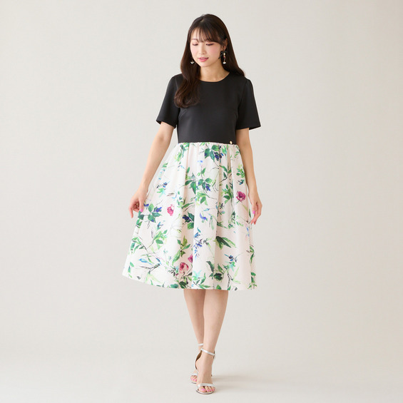 ・一枚で華やぐ上品さと軽やかさを纏うオリジナルプリントのコンビワンピース