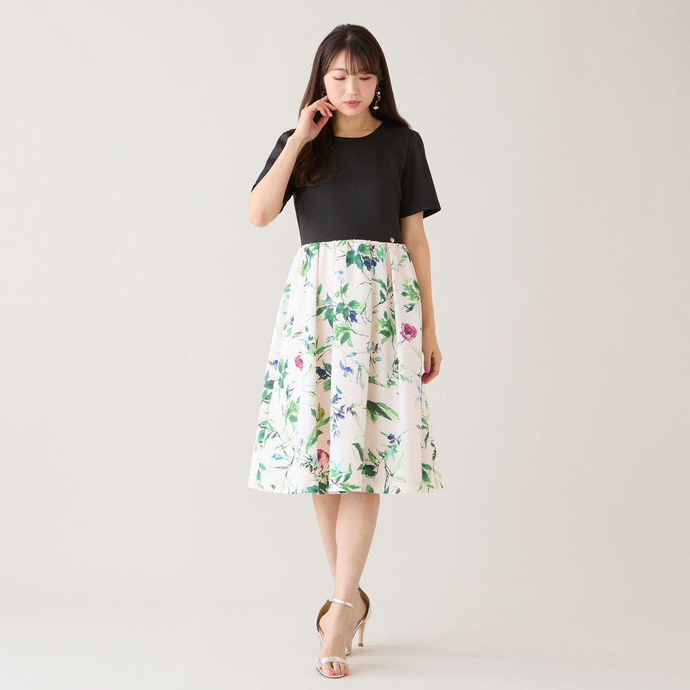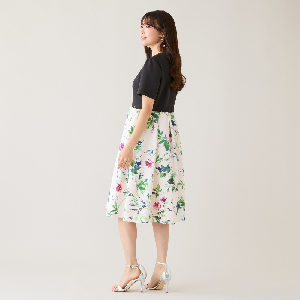 ・オリジナルのパネルプリントをあしらったスカート部分が、フェミニンで華やかな印象に