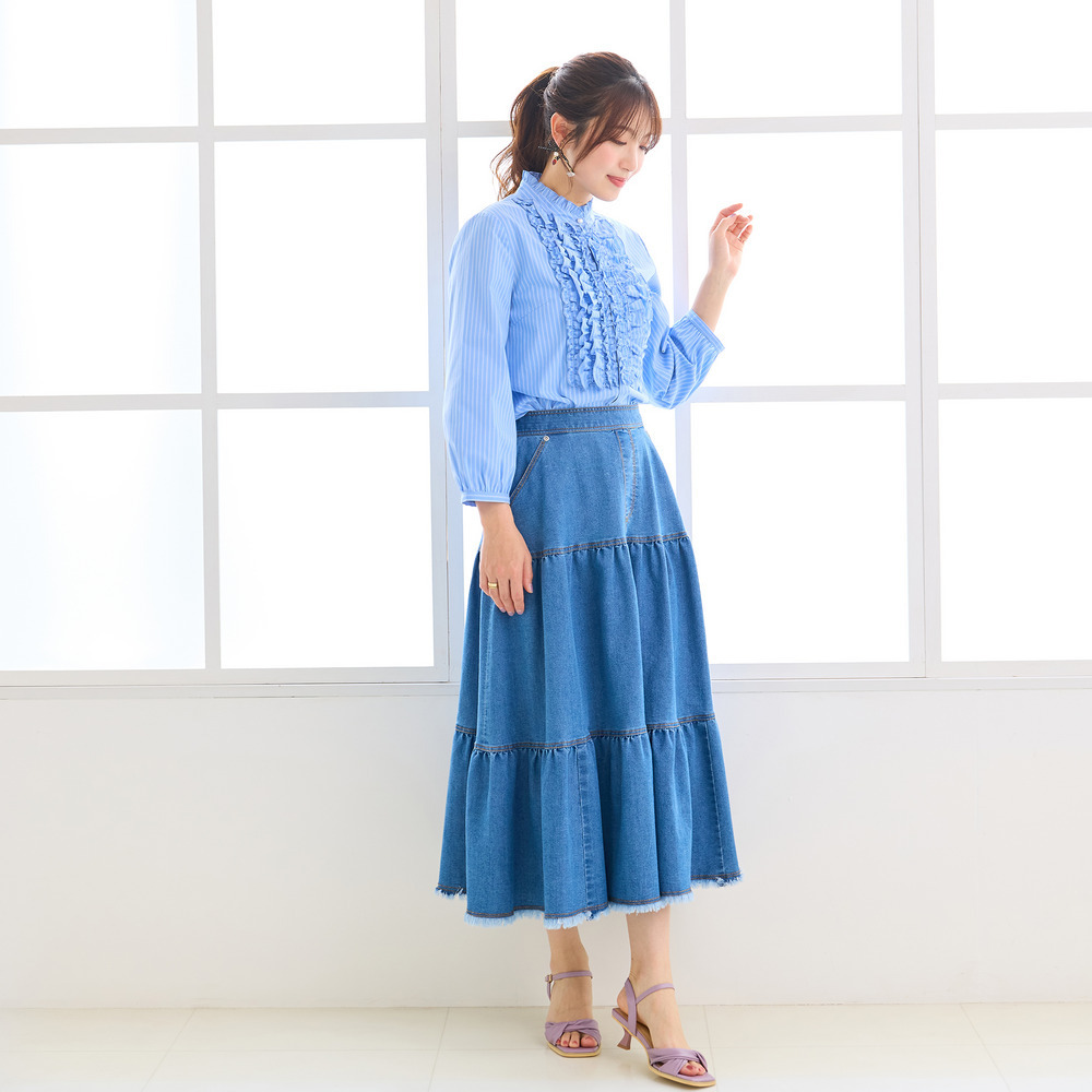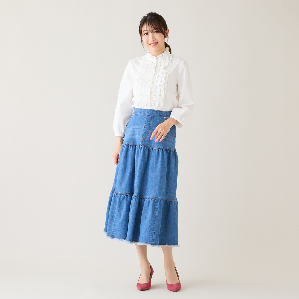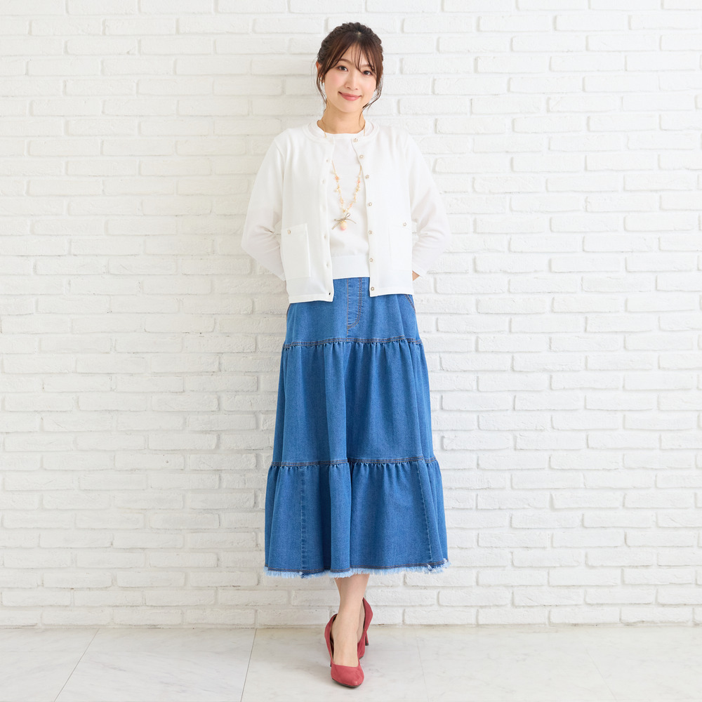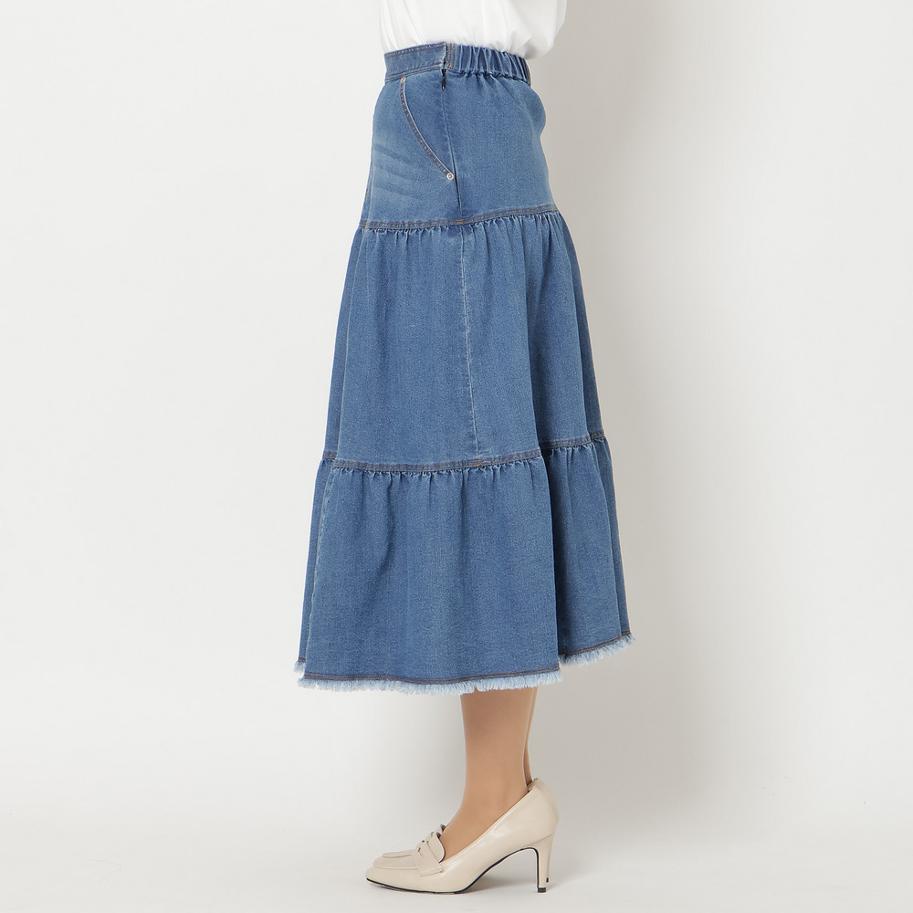 ・ライトデニムが軽やかな甘さと上品さを両立したティアードスカート