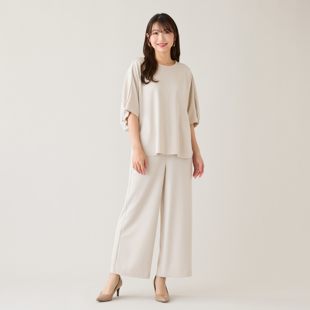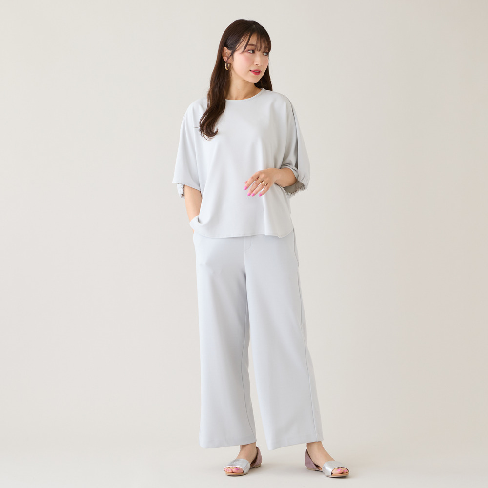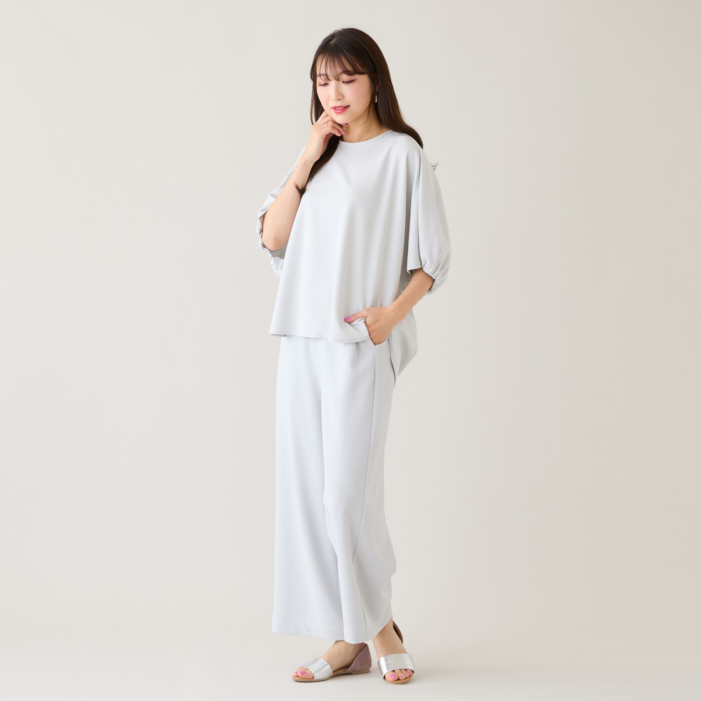 ・カットソー素材ならではの落ち感と、ストレスフリーな穿き心地が魅力のワイドシルエット