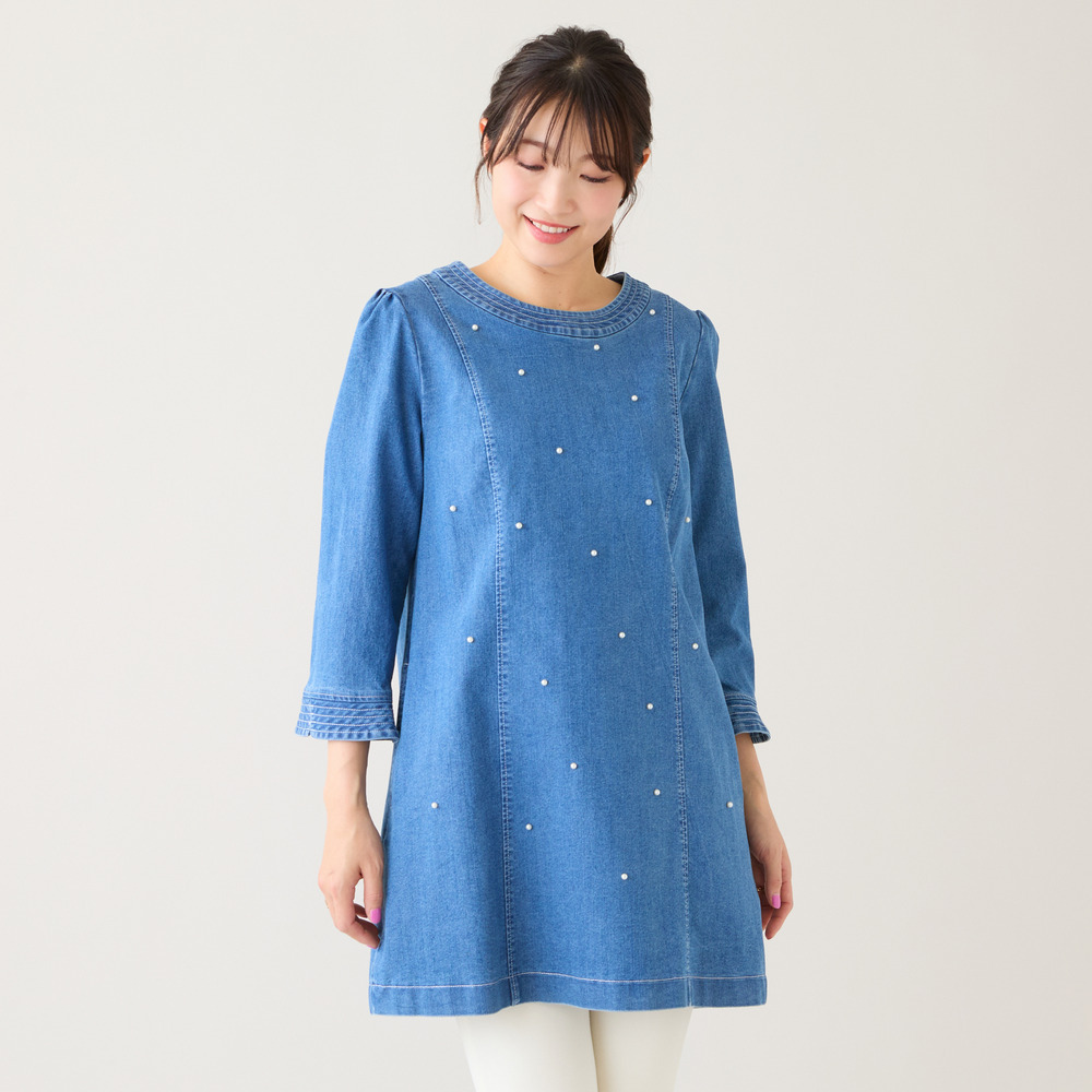 • 【伸縮性◎】パールスタッズデニムチュニック1