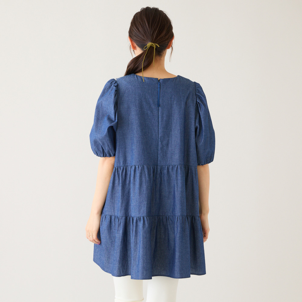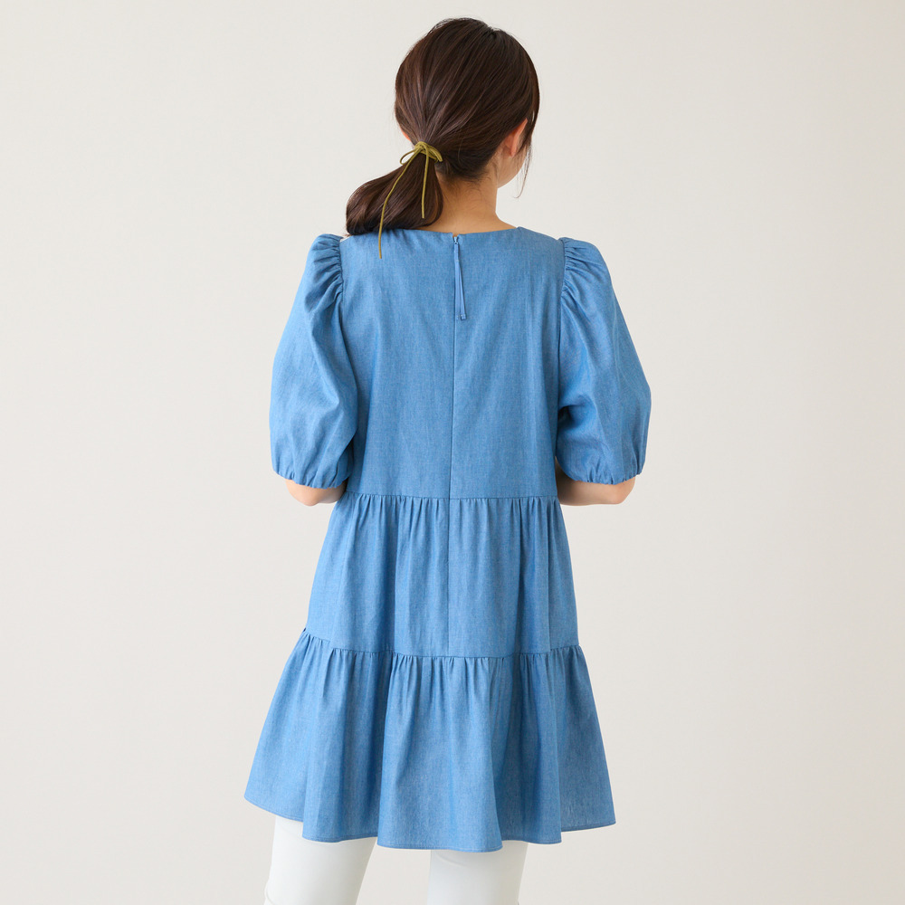 ・後ろをティアード切り替えにすることで、ふんわりと広がるやさしいシルエット