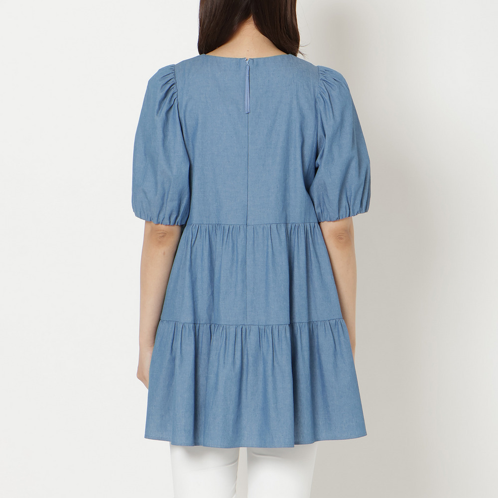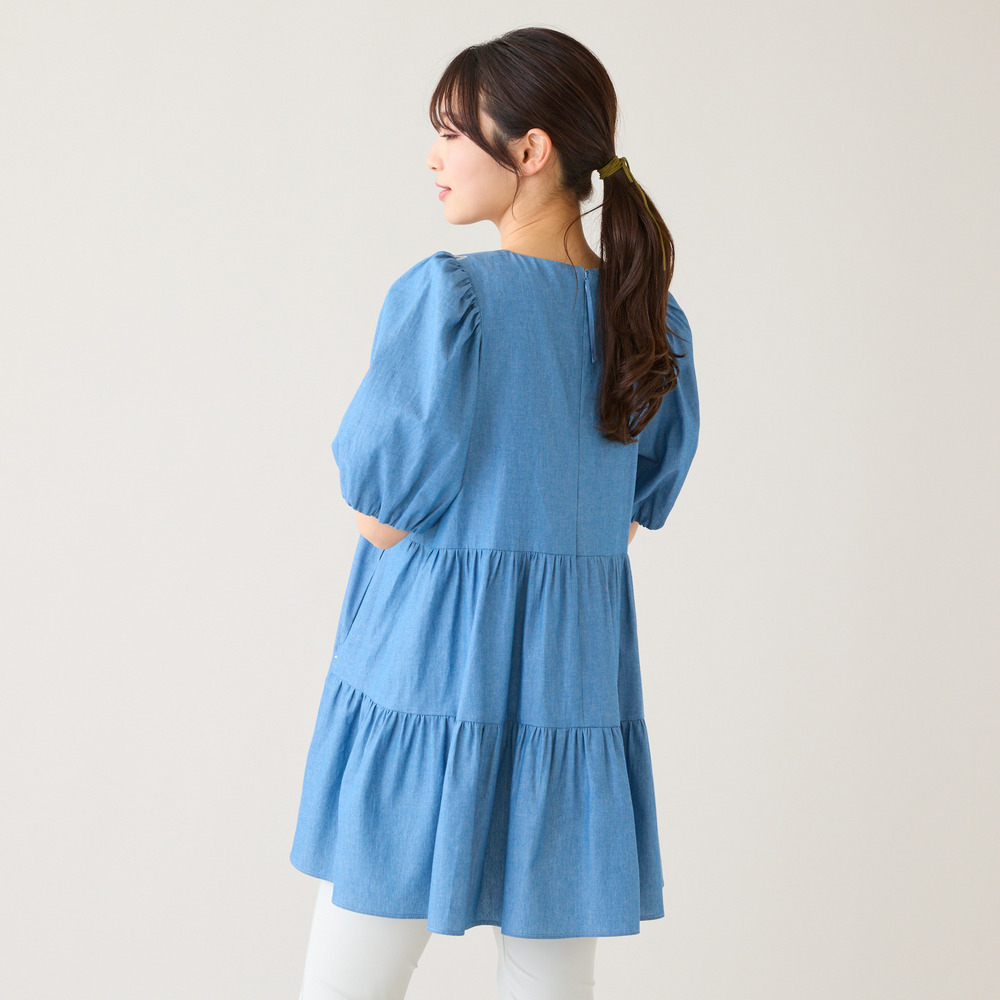 【綿100%】スズラン刺繍バックティアードチュニック