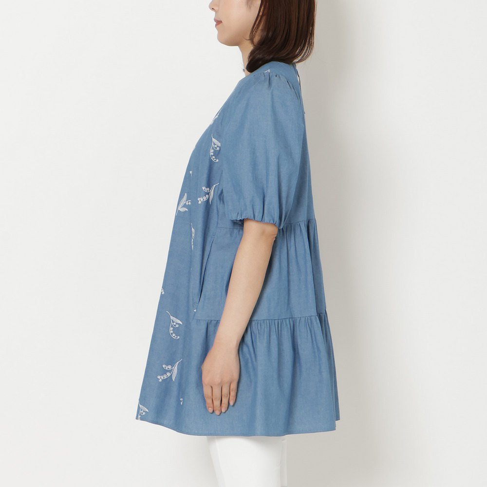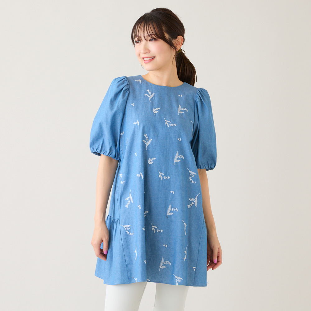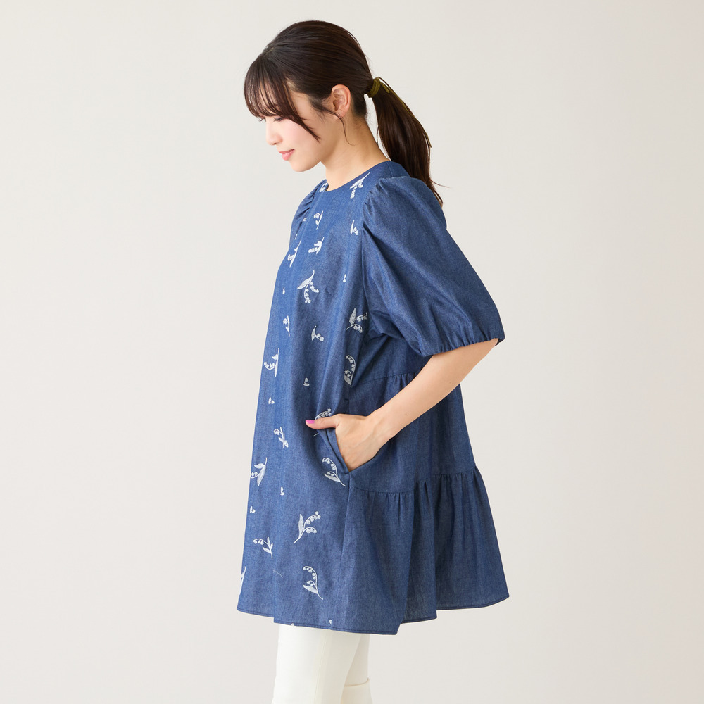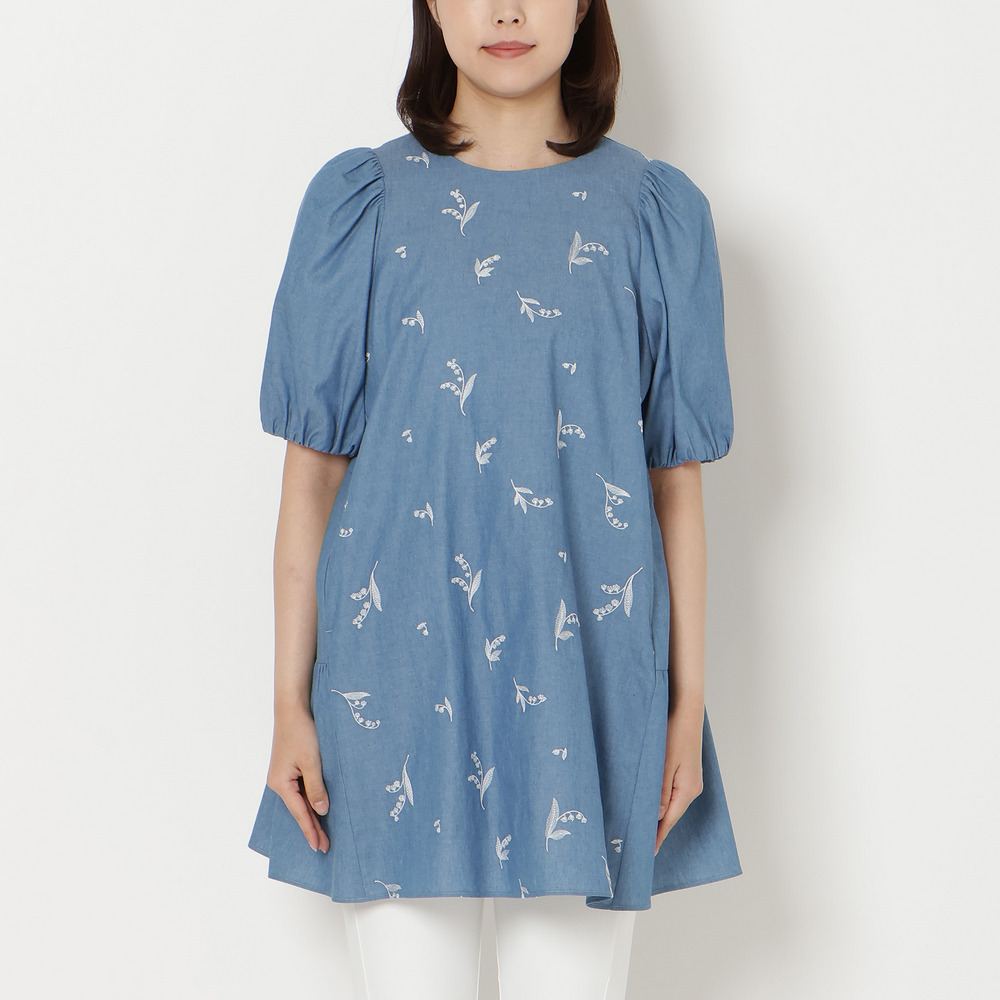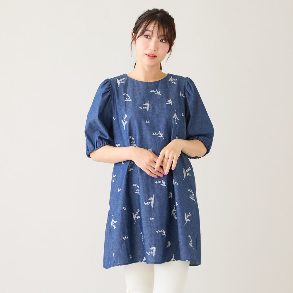 ・可憐な線刺繍のスズランにデニム調素材が軽やかなチュニック
