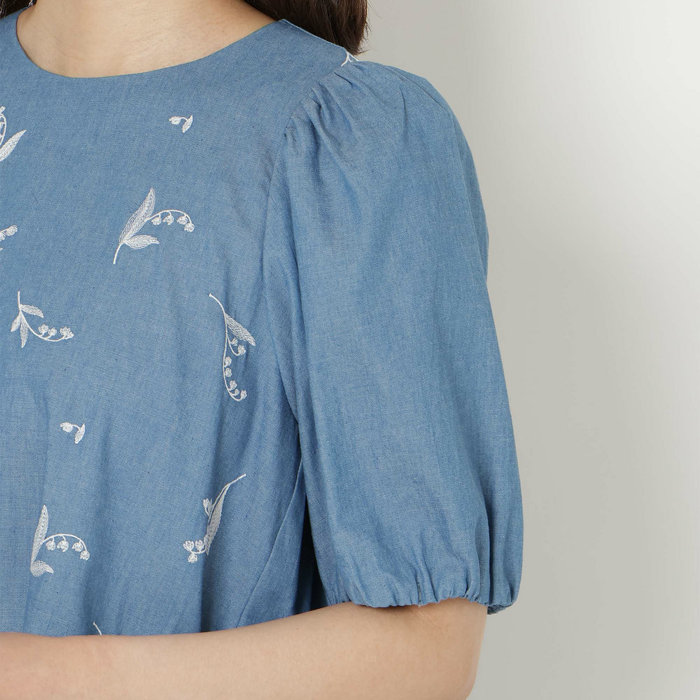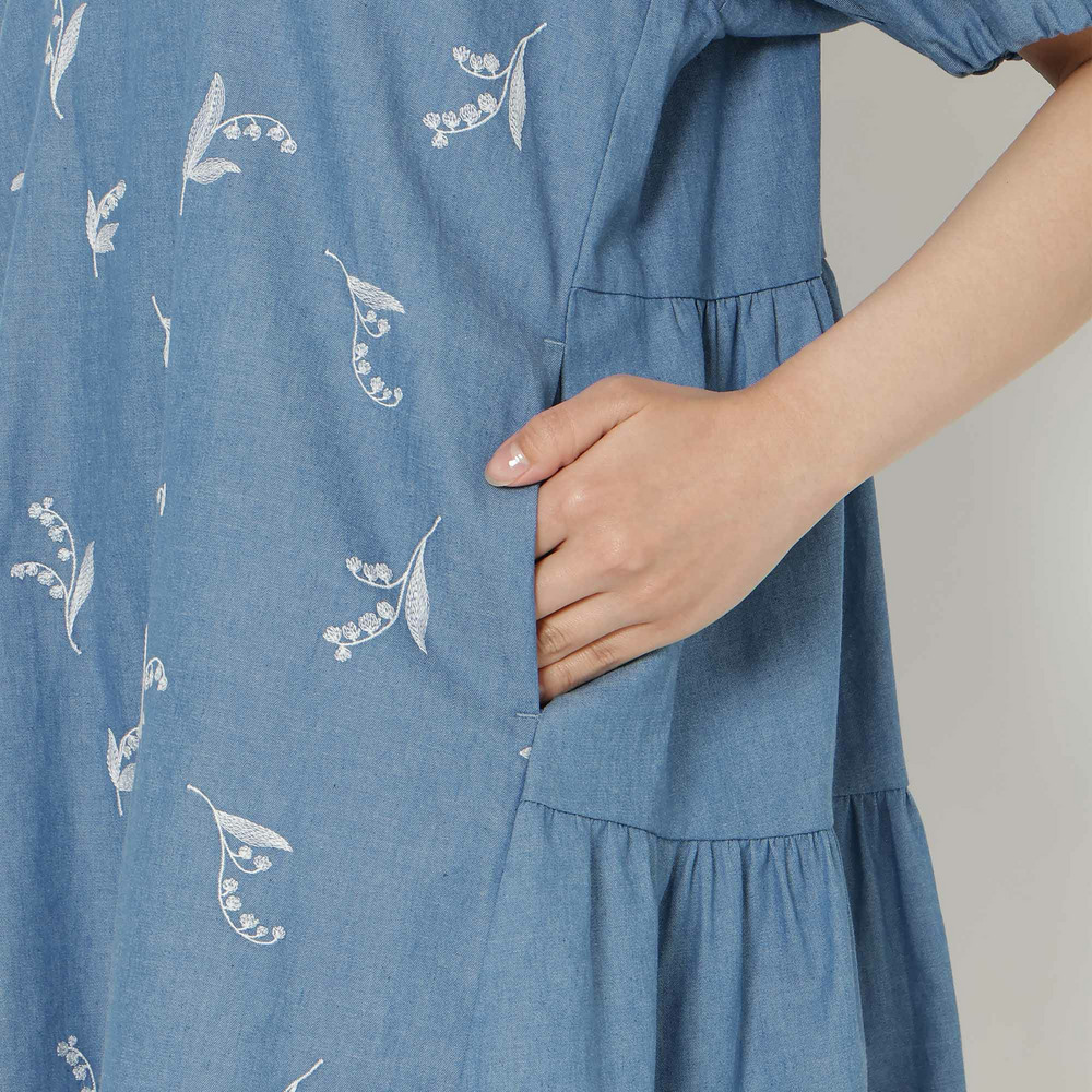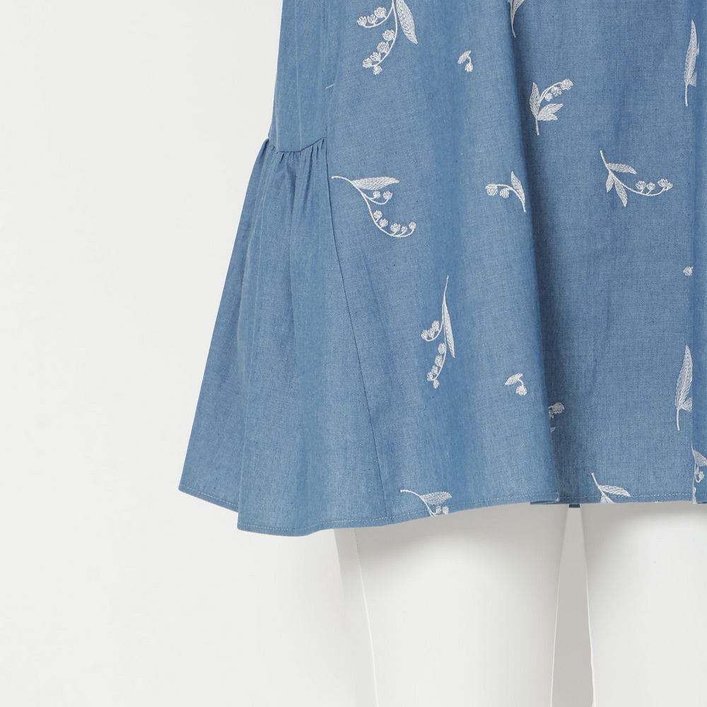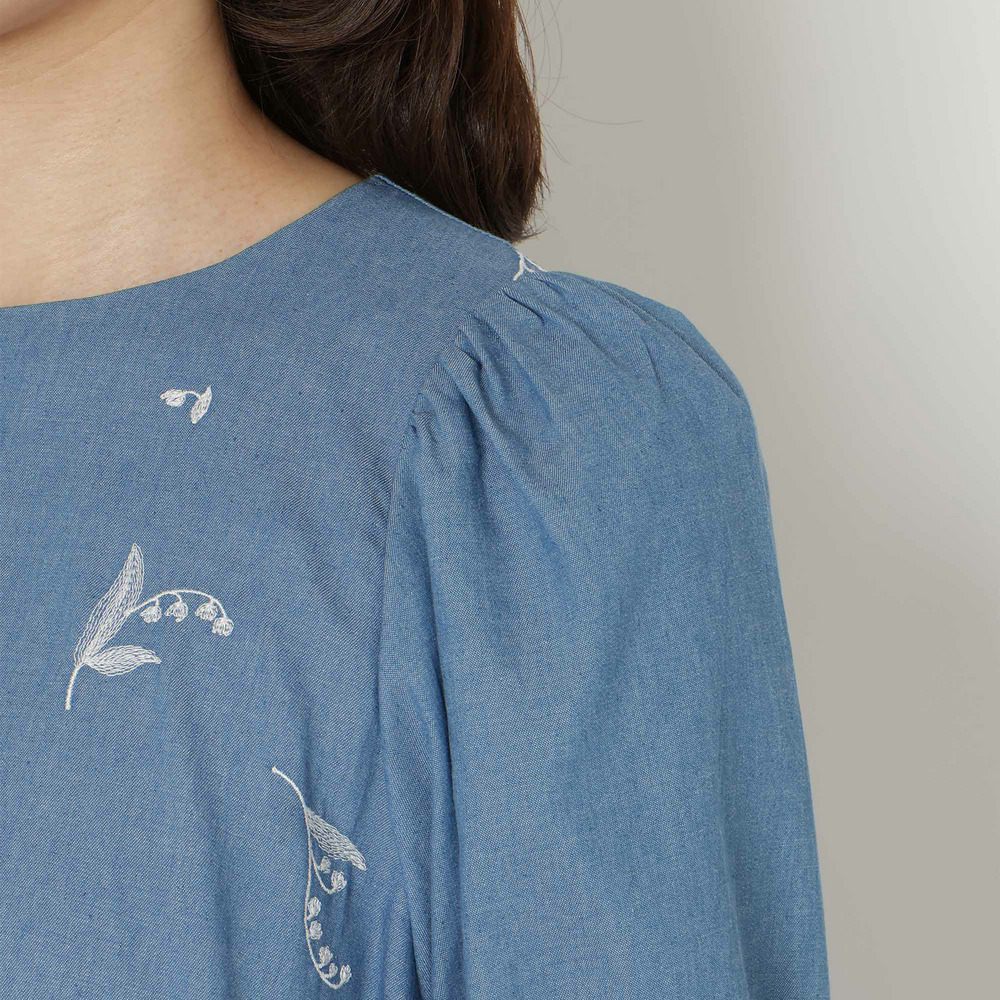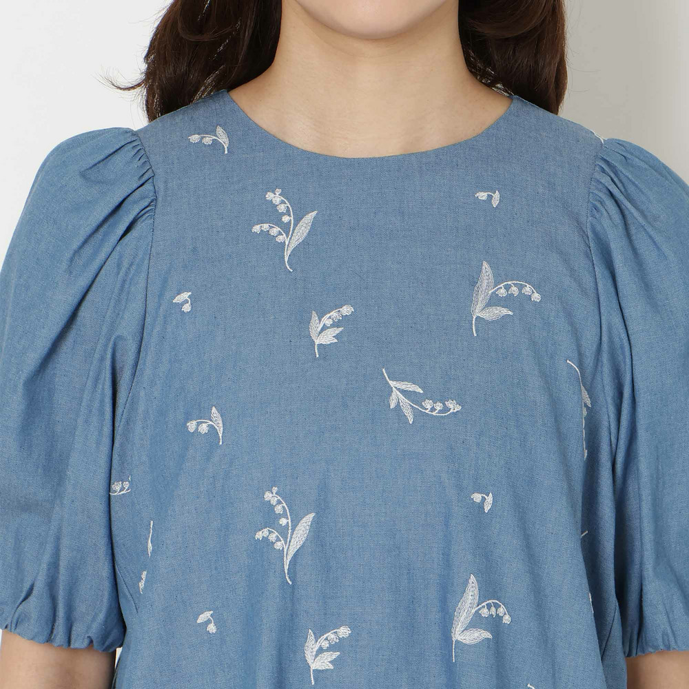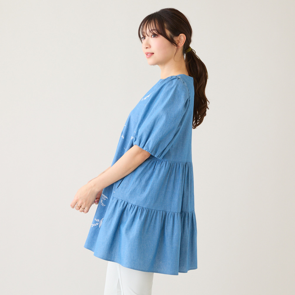 ・可憐な線刺繍のスズランにデニム調素材が軽やかなチュニック
