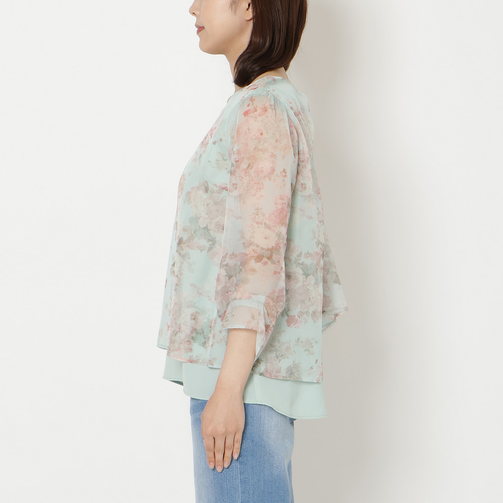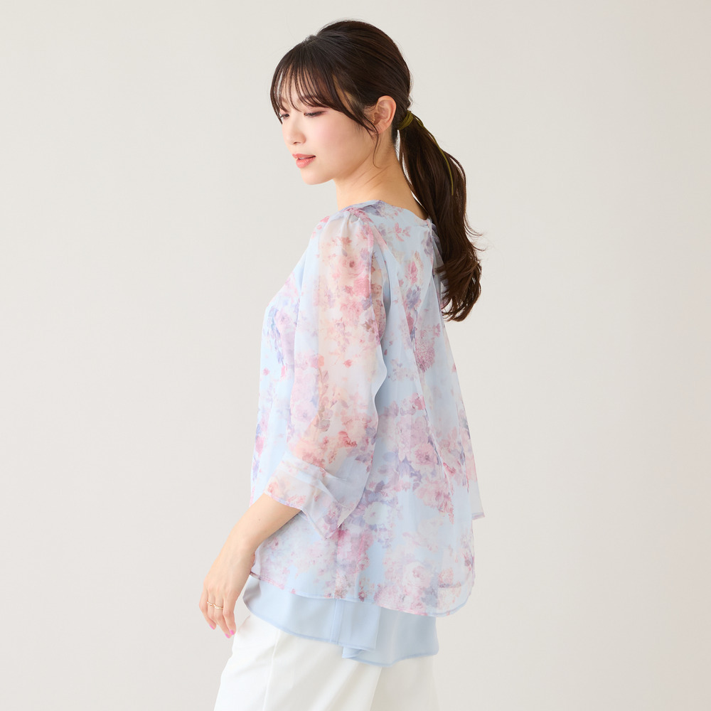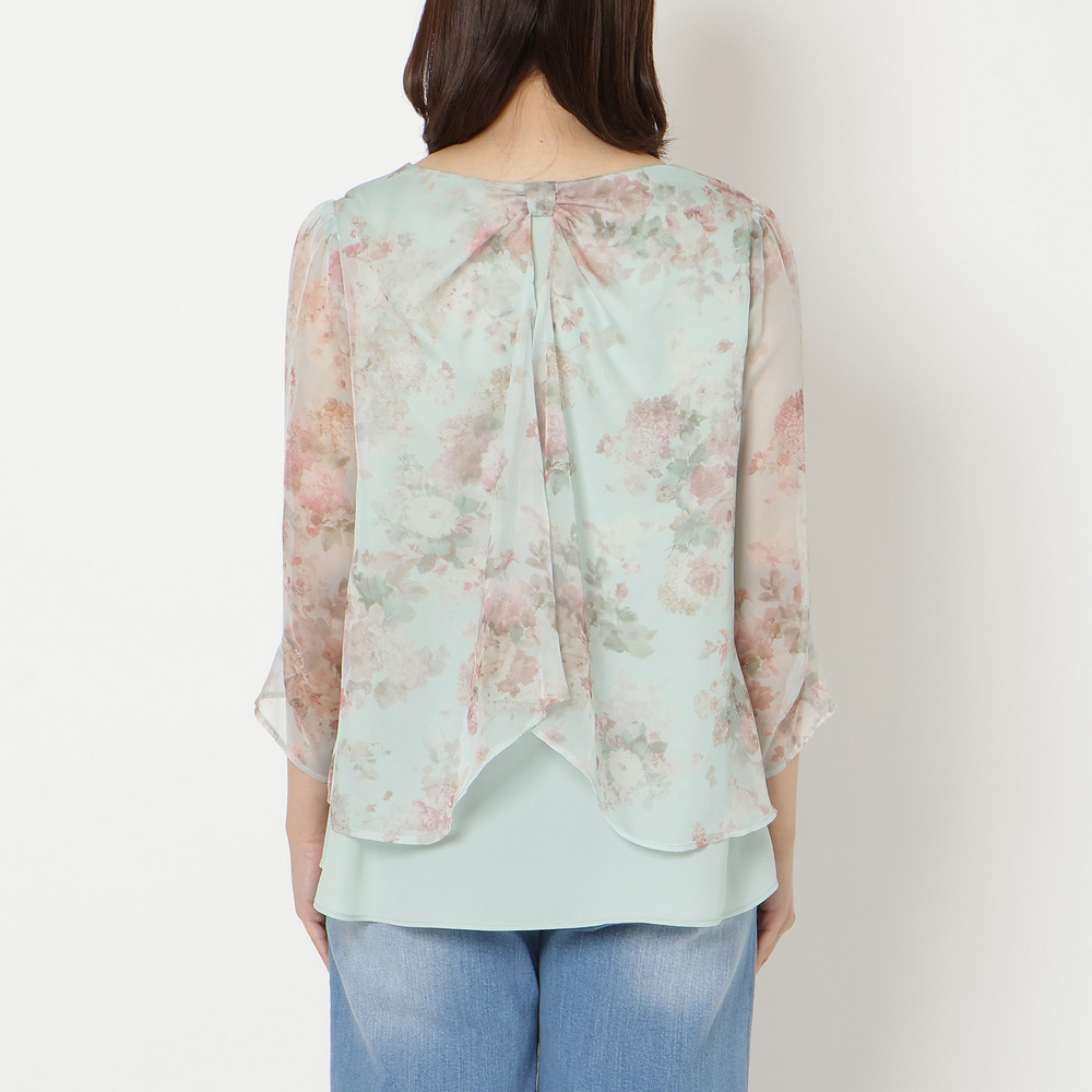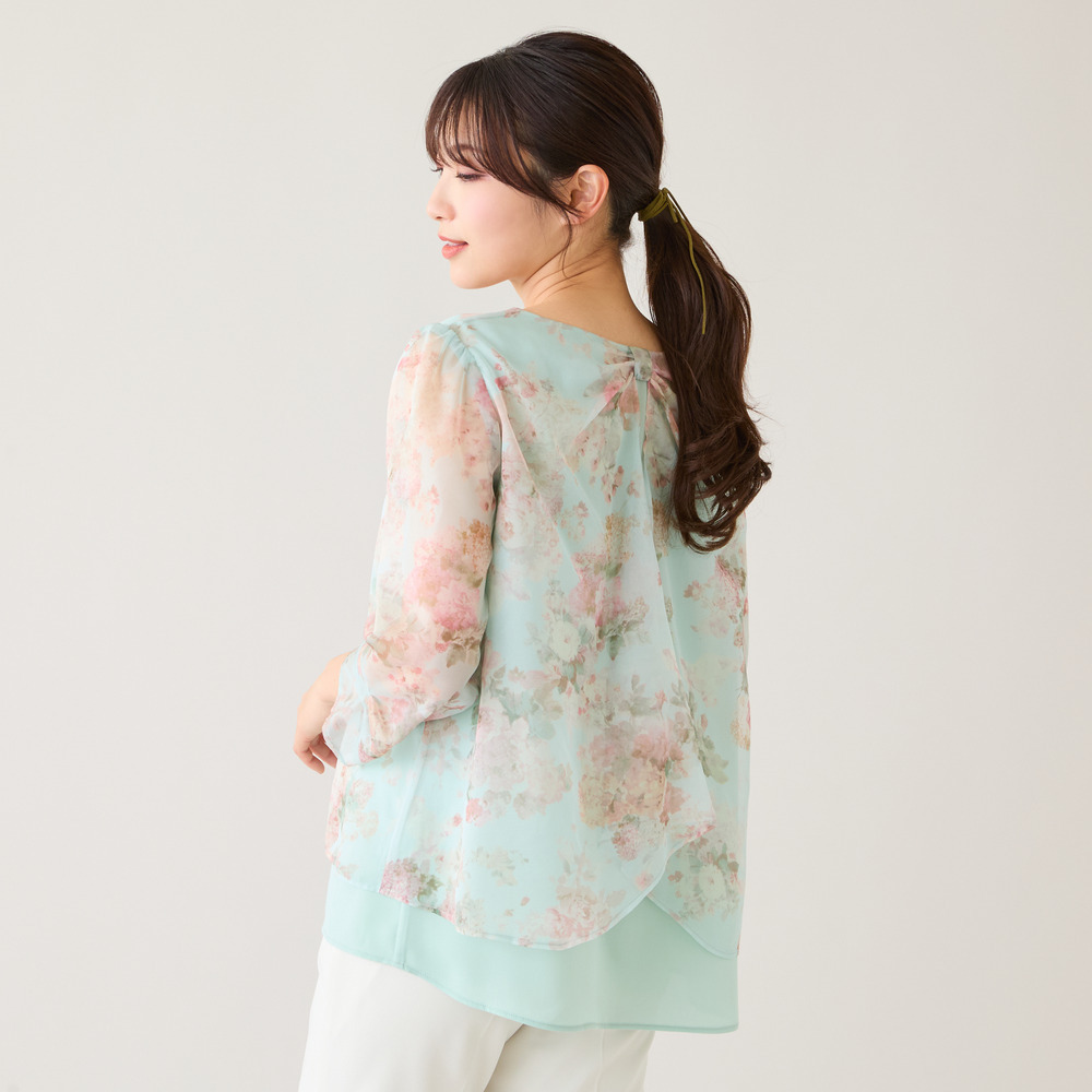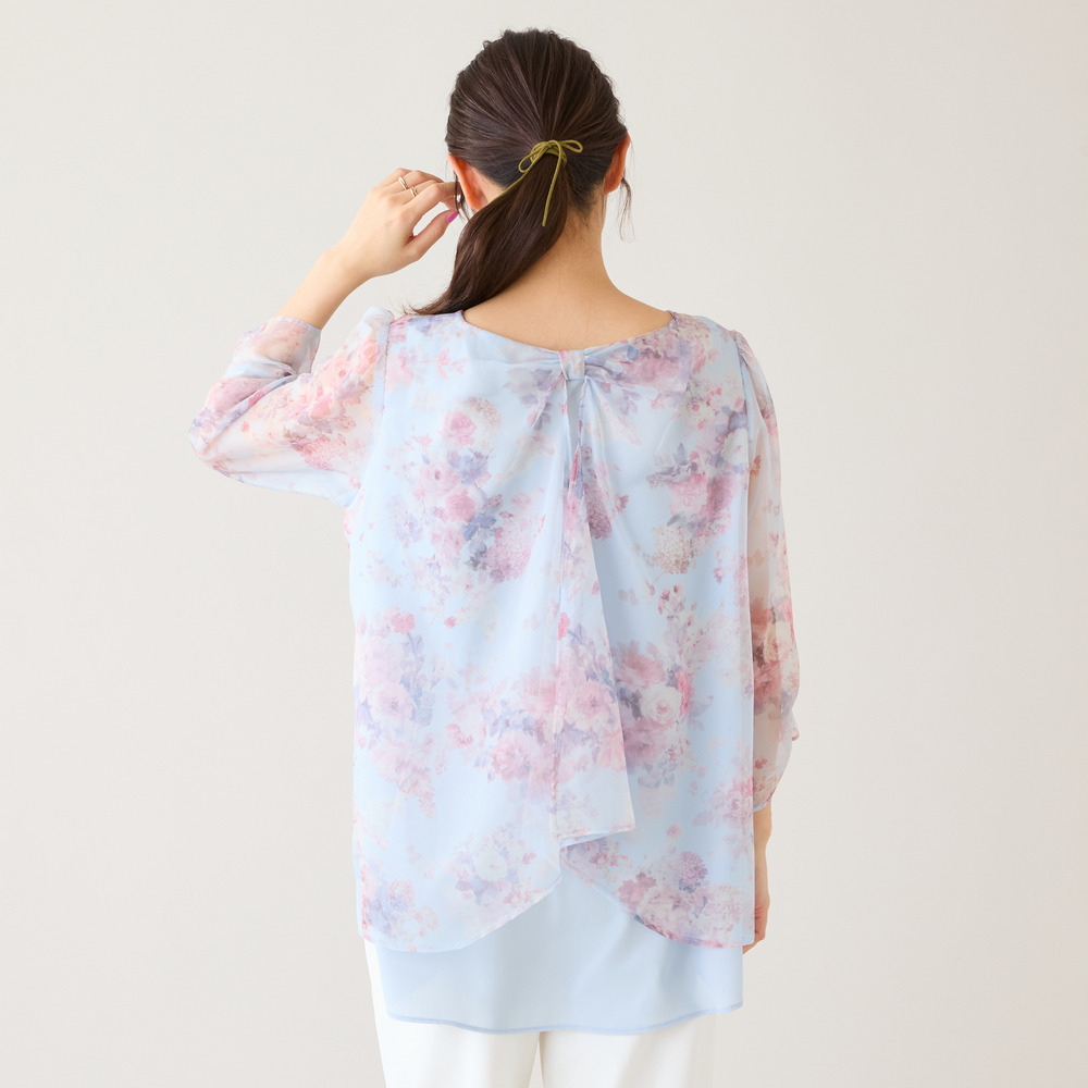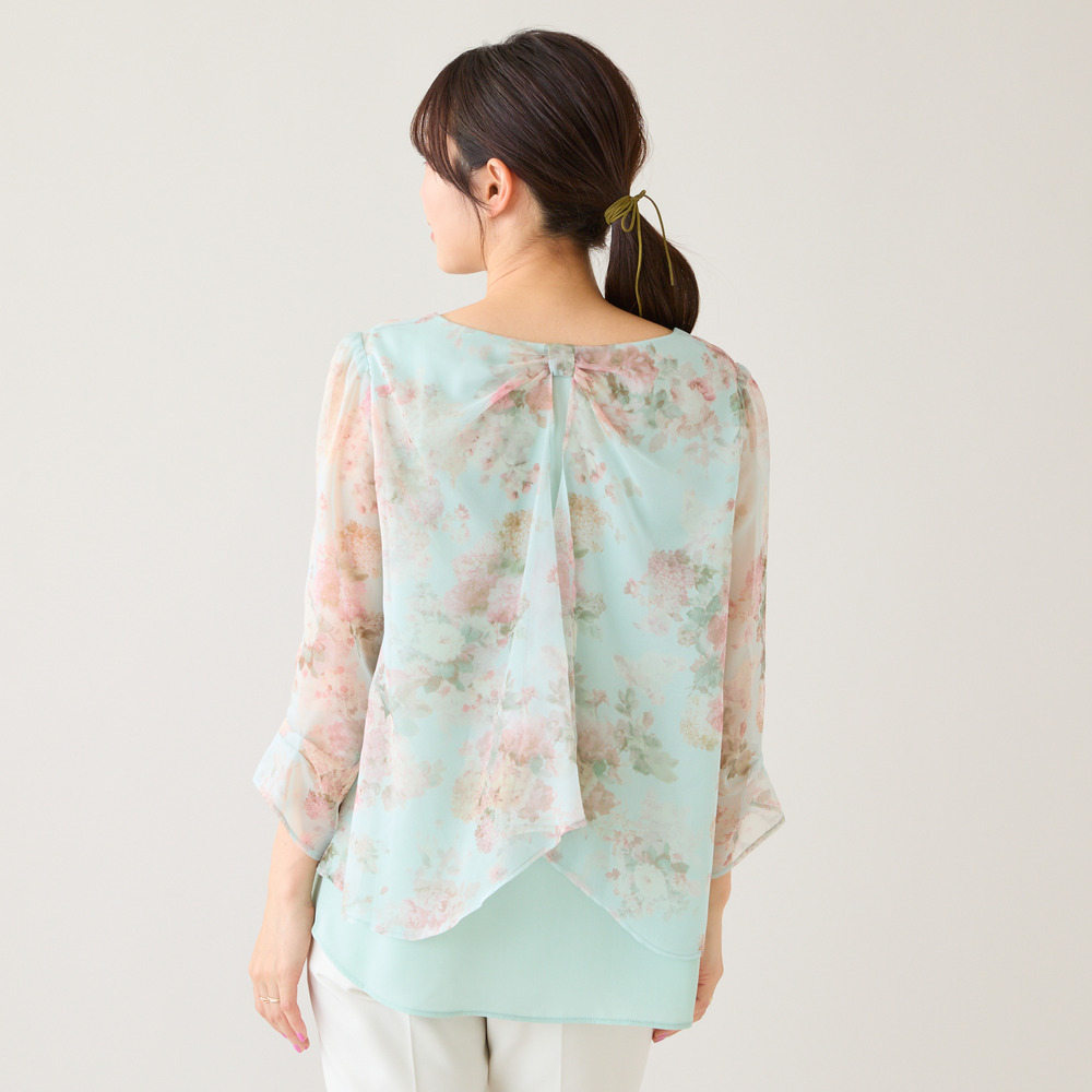 後ろ姿まで、可憐。軽やかに着映えるレイヤード風ブラウス