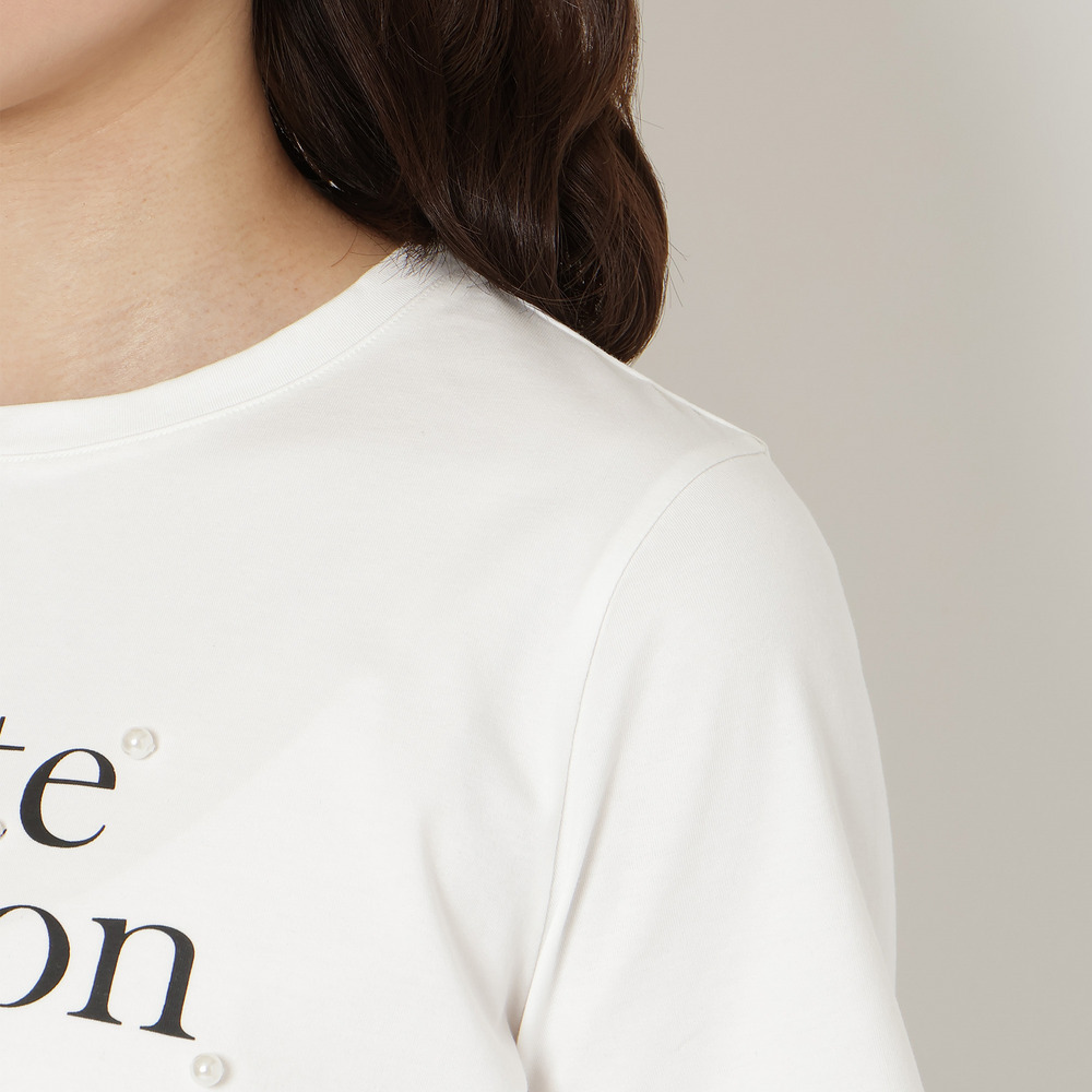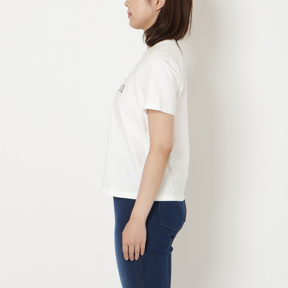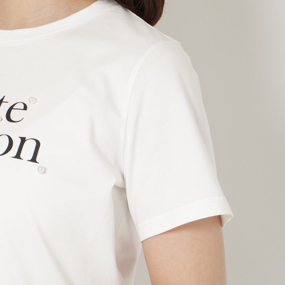 ・ロゴ部分にパールをあしらい、さりげない華やかさをプラス