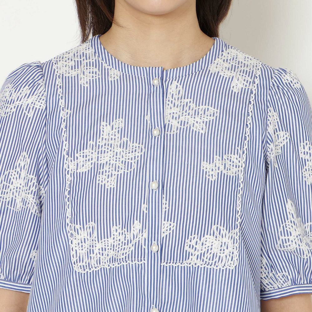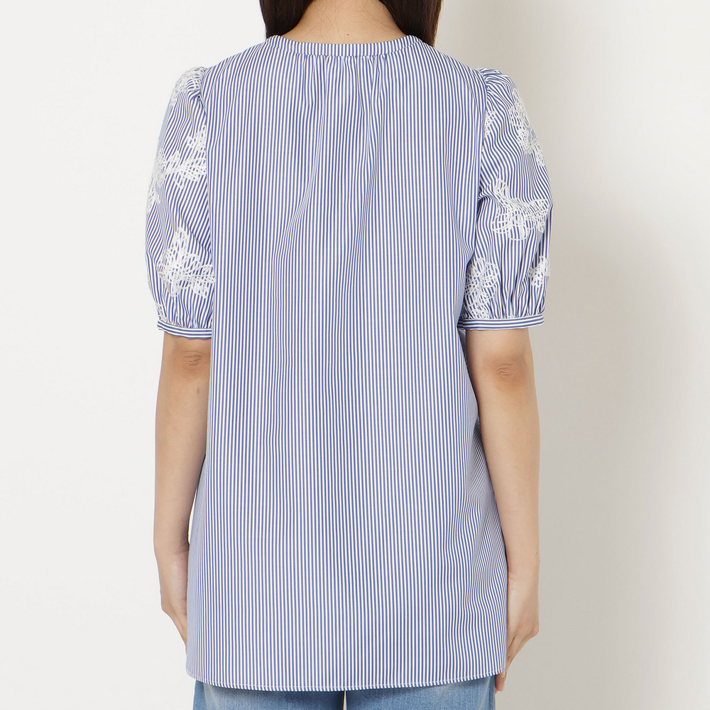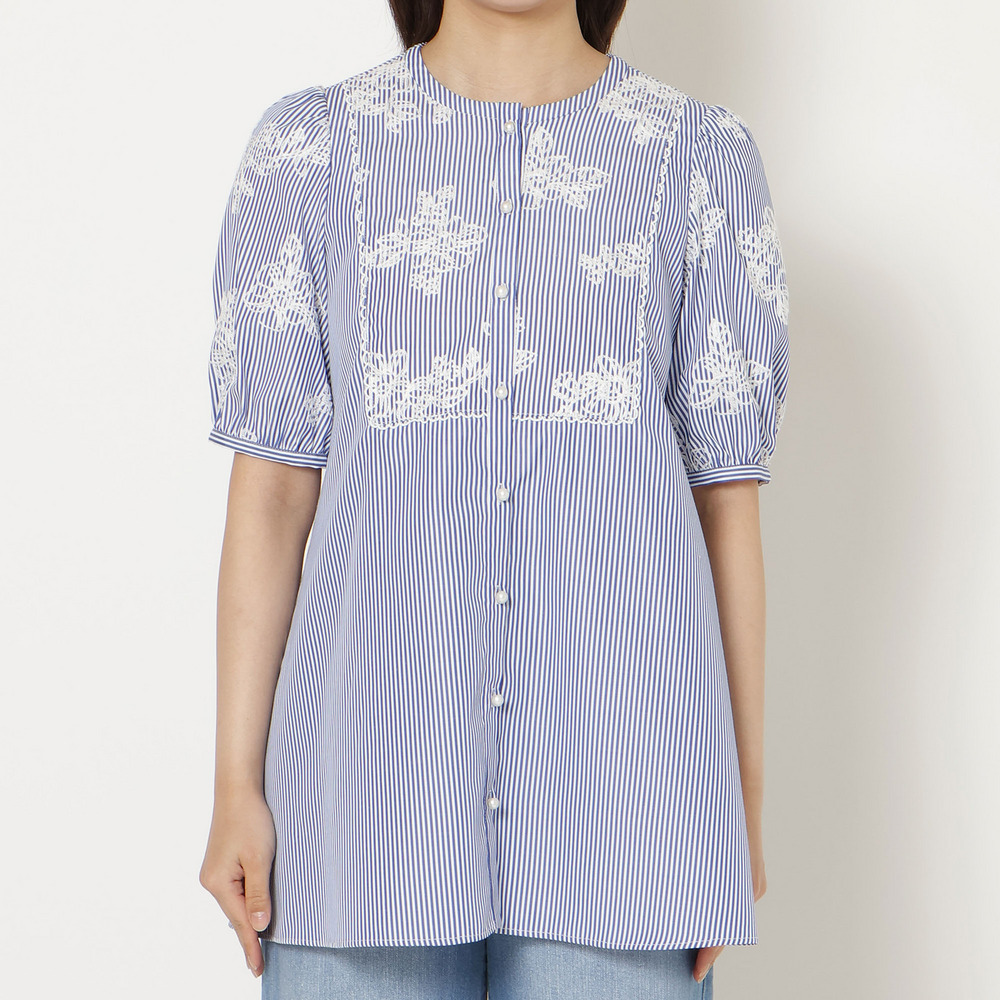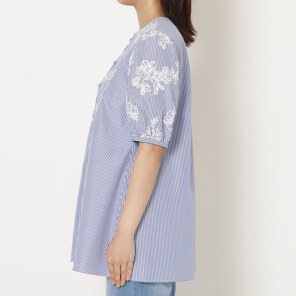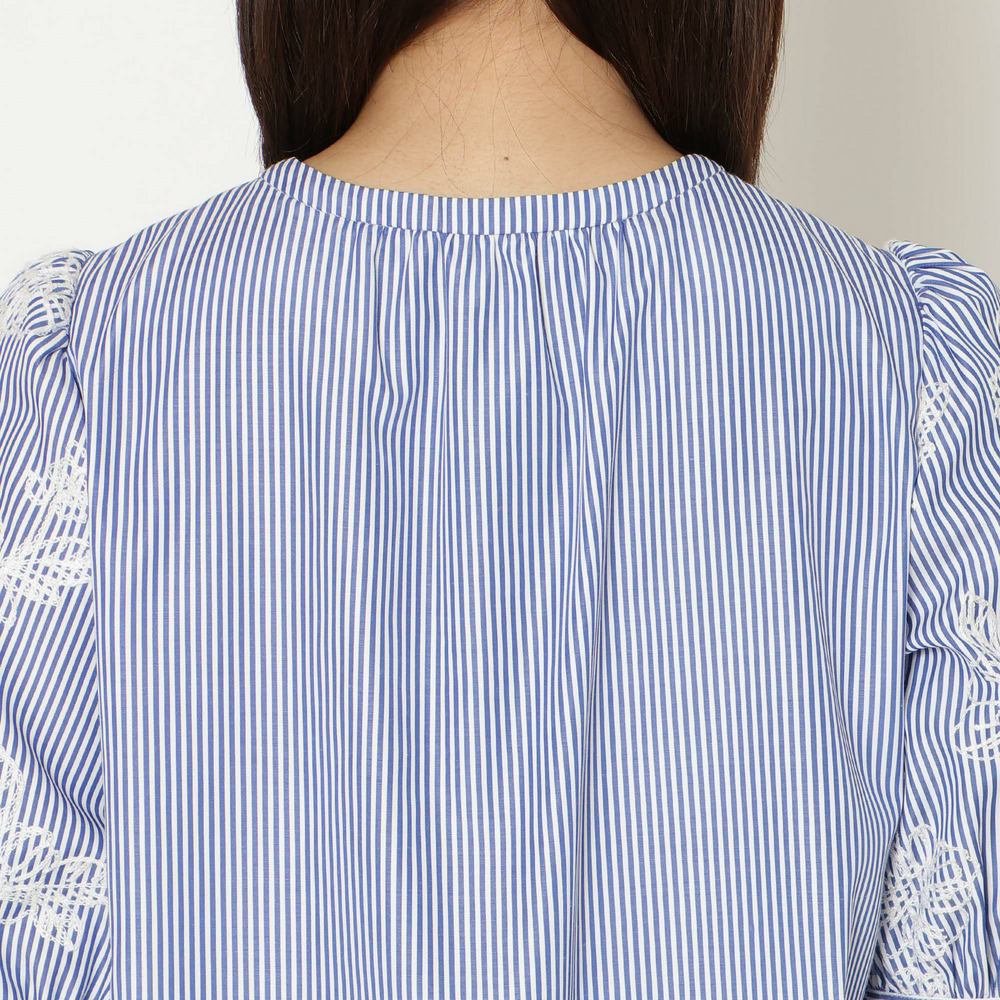 ・ヨーク切替部分と袖にフラワー刺繍を施し、上品なフェミニンさを引き立ててくれます