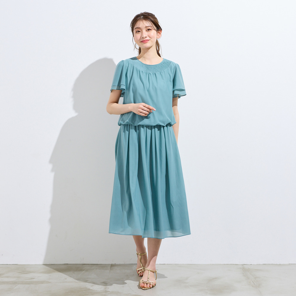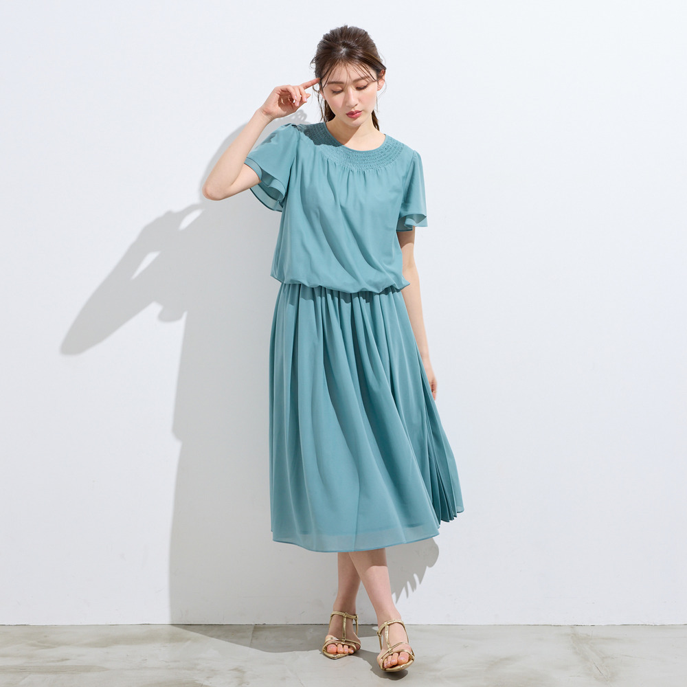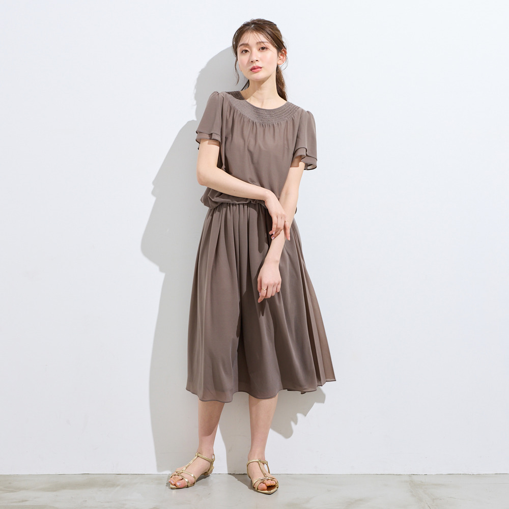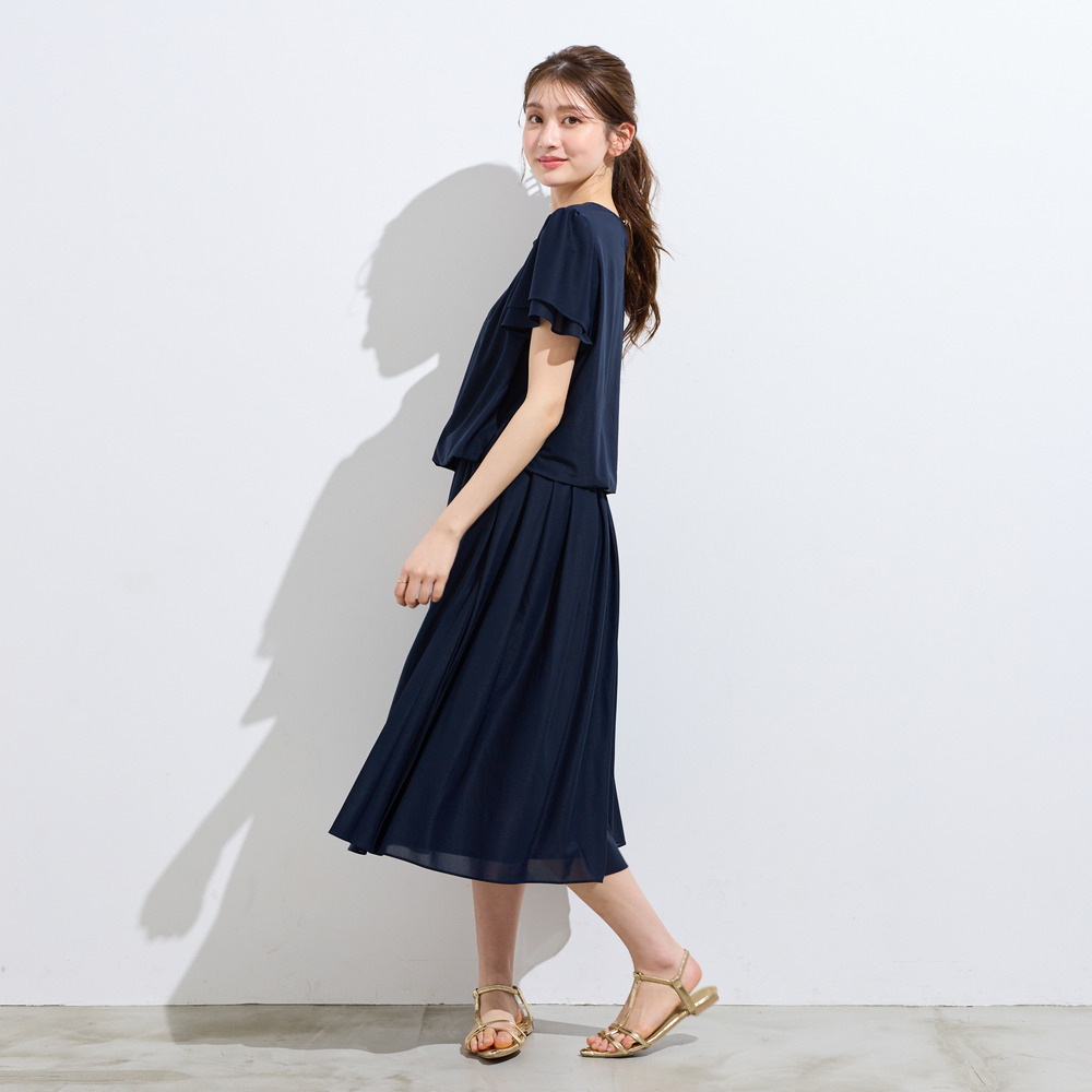 ・同素材を使用したブラウスとセットアップでワンピース風に着るのもおすすめ