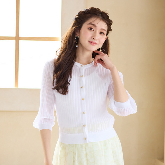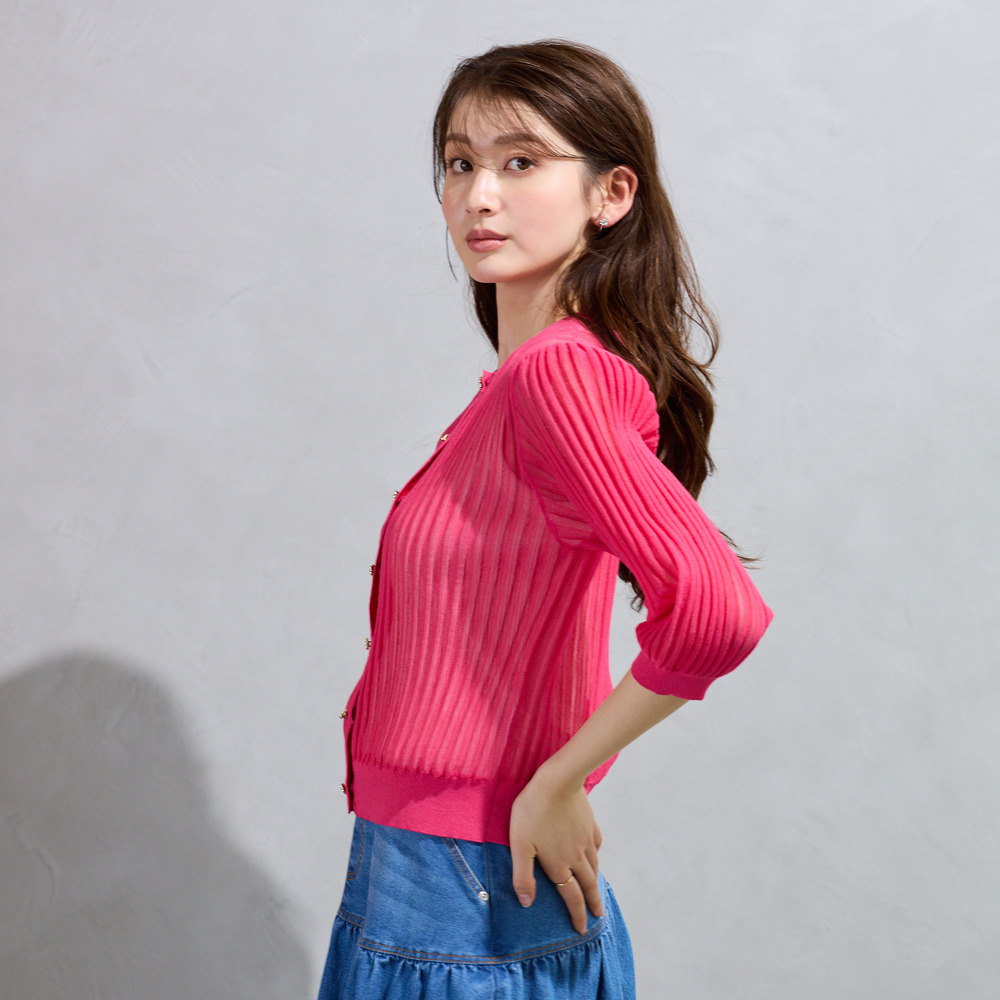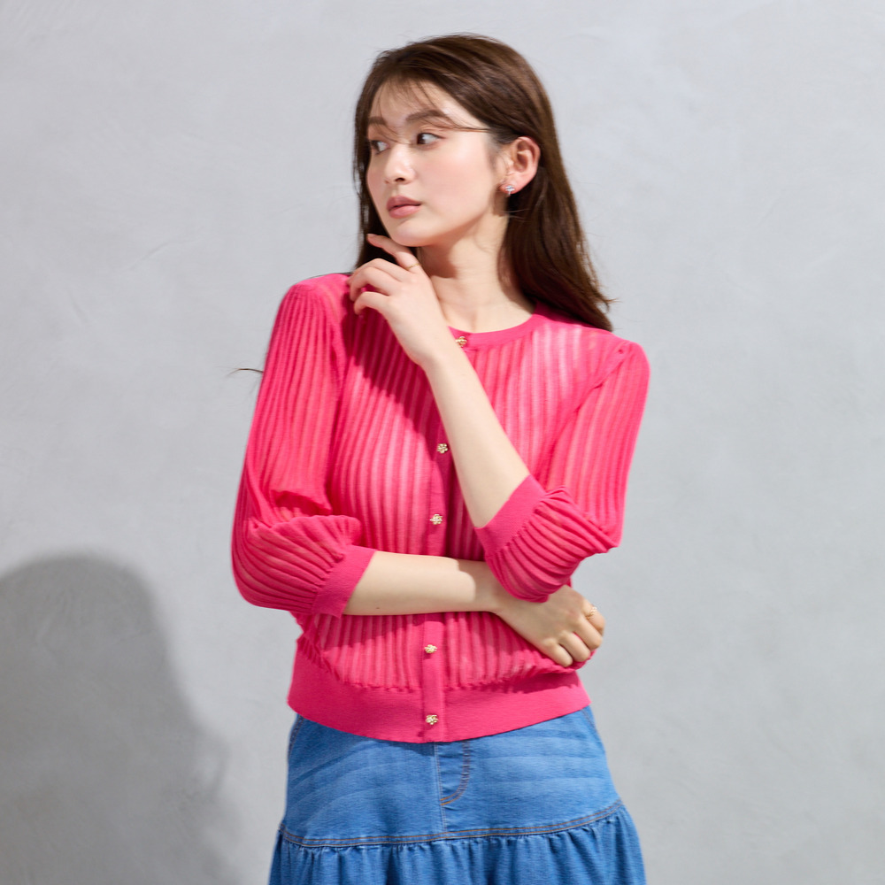 ・シンプルながら、きちんと華やぐきれいめフェミニンなカーディガンです