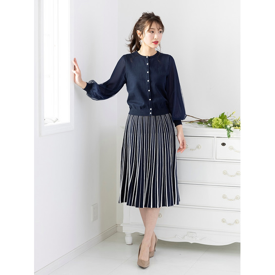 ニットと異素材の切替は一枚で愛らしい印象に。