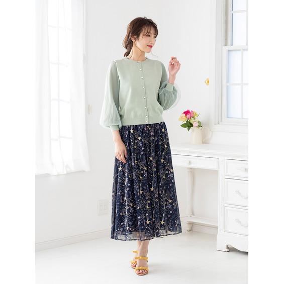 • チュール袖ニットカーディガン/ 大きいサイズ ローズティアラ1