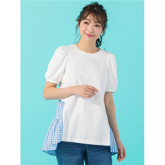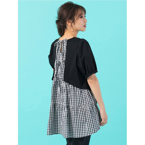 パフスリーブにバックリボン×ギンガムチェックが夏らしくてが可愛いカットソー