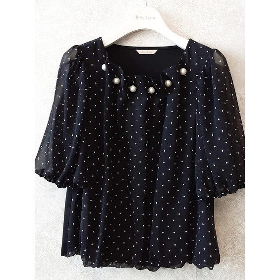 パールネックバルーンヘムブラウス / 大きいサイズ ローズティアラ
